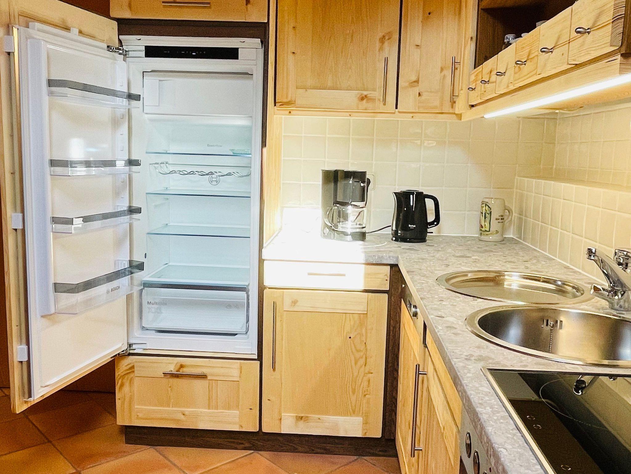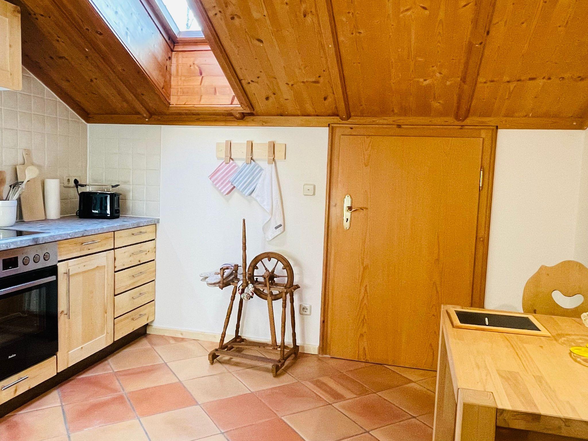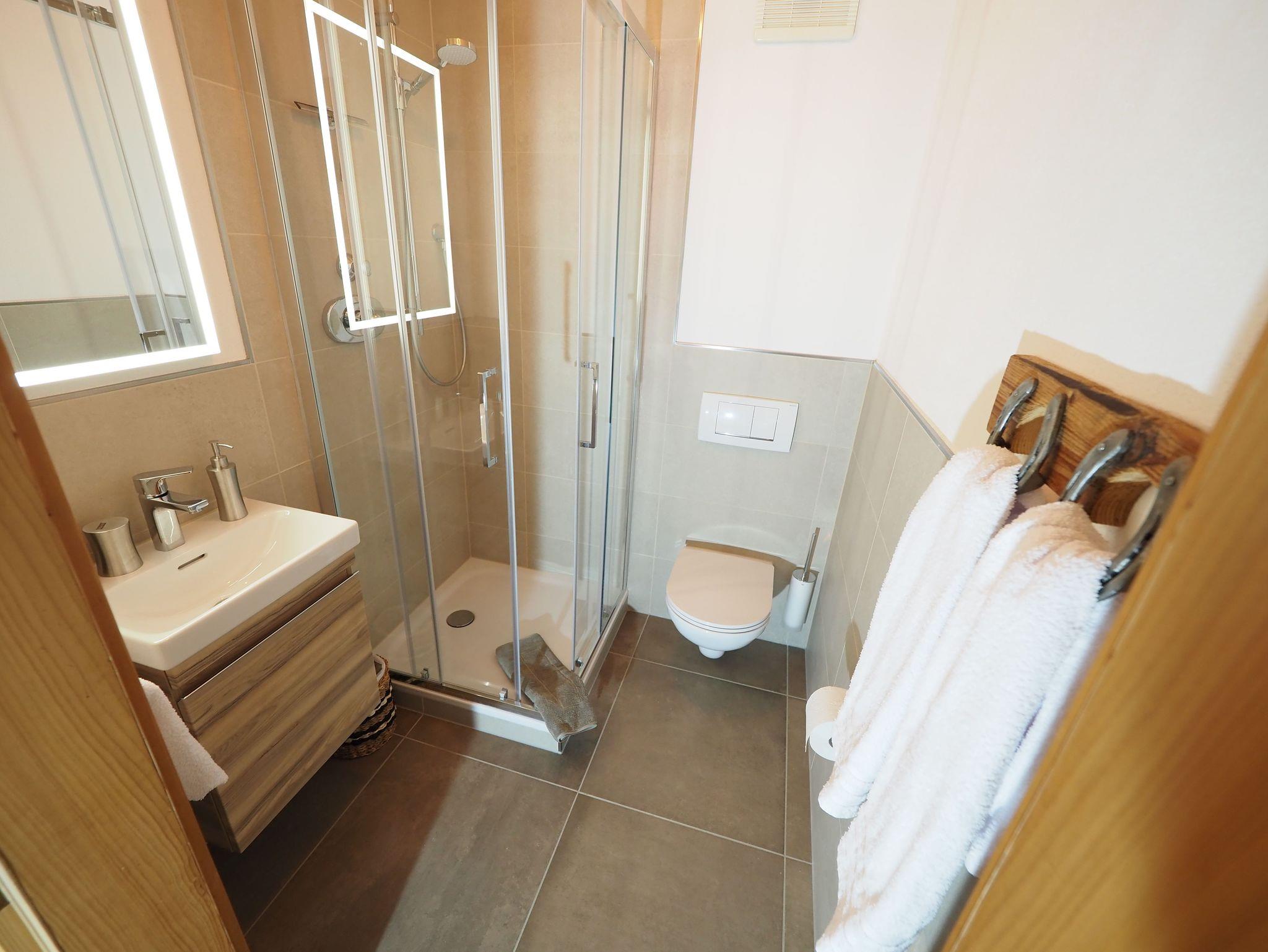 Die Wohnung lässt keine Wünsche offen und eignet sich besonders für Paare, die mal ein paar Tage abschalten und die Zweisamkeit genießen wollen. Sie ist ausgestattet mit einer vollständig eingerichteten Küche incl. Esstisch. Das Wohn-/Schlafzimmer lädt zum Verweilen ein, Internet-TV und W-LAN sind vorhanden. Der Schlafbereich ist mit einem romantischen Bett sowie einem begehbaren Schrank eingerichtet. Viel Holz, viel Licht und eine große Portion Wohlfühlatmosphäre machen diese großzügige Ferienwohnung zu einem echten Lieblingsplatzerl. Das Badezimmer mit Echtglas-Dusche und Thermostatbrause vervollständigt das luxuriöse Ambiente.
