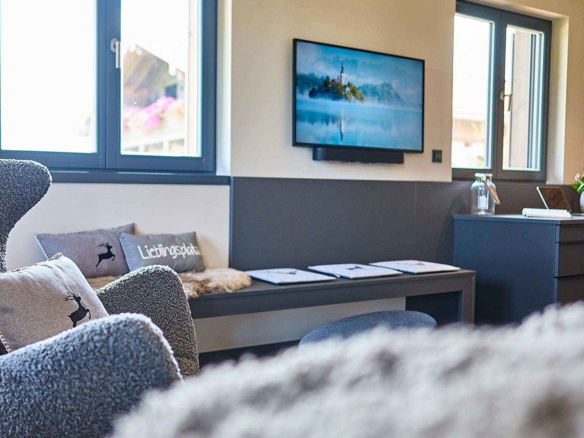 Unsere Apartments sind bestens ausgestattet: mit Flachbild-TV, Sonos, Schreibtisch (außer Apartments Hofidyll und Auszeit), Boxspringbetten, vollausgestatteter Küche, Kuscheldecken (auch für nette Stunden im Garten) sowie einem Safe. Alles komplett. Für Deinen komplett gelungenen Urlaub.