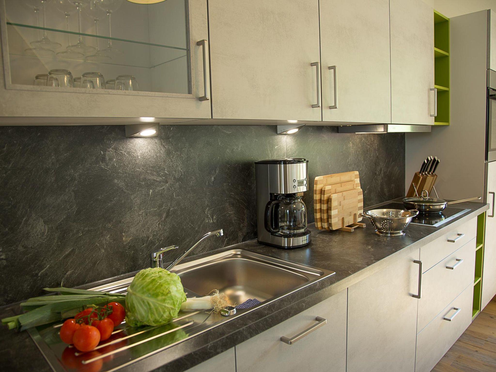 Großzügiger Wohn-Essbereich mit offener komplett eingerichteten Küche mit Cerankochfeld, Backofen, Spülmaschine und und und. Esstisch, Sofa, Flachbildfernseher, WLAN, Terrasse. Ein Schlafzimmer(EG) mit 2m langen Betten, offenen Fußteil, Bandscheibenmatratzen, verstellbare Lattenroste, Querschläfer und TV das zweite Schlafzimmer (UG) identisch ausgestattet. Kinderzimmer mit Stockbett und rausfallgitter. Ein Badezimmer (EG) mit Dusche/WC, Toilettenartikel, Hand und Duschtücher, zweites Bad (UG) idenisch ausgestattet.