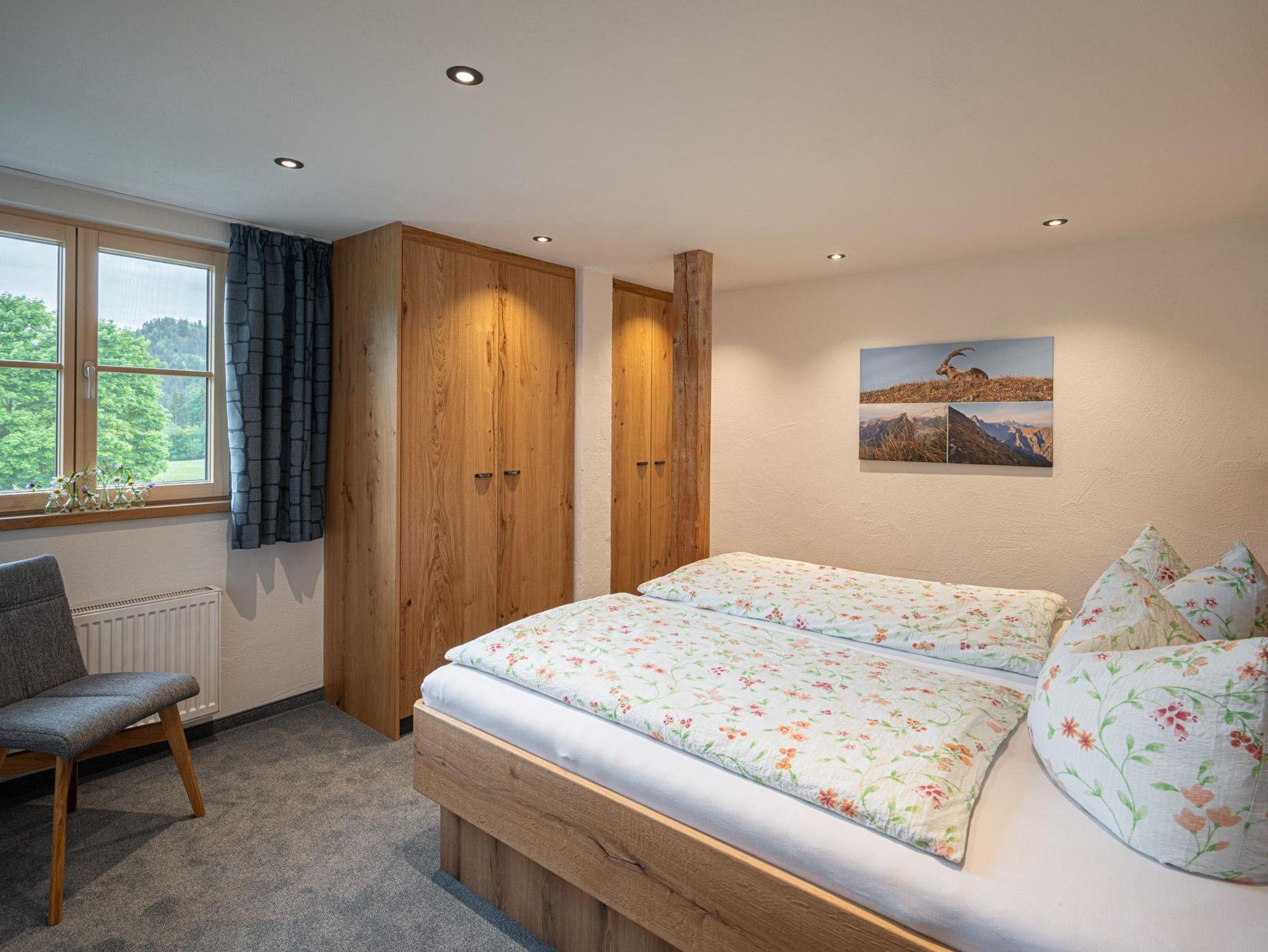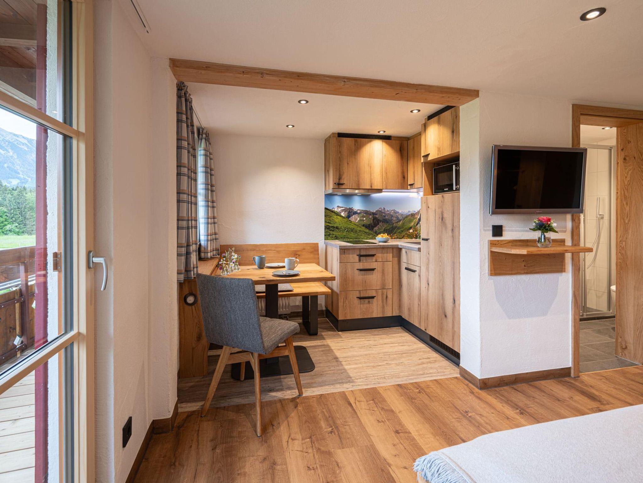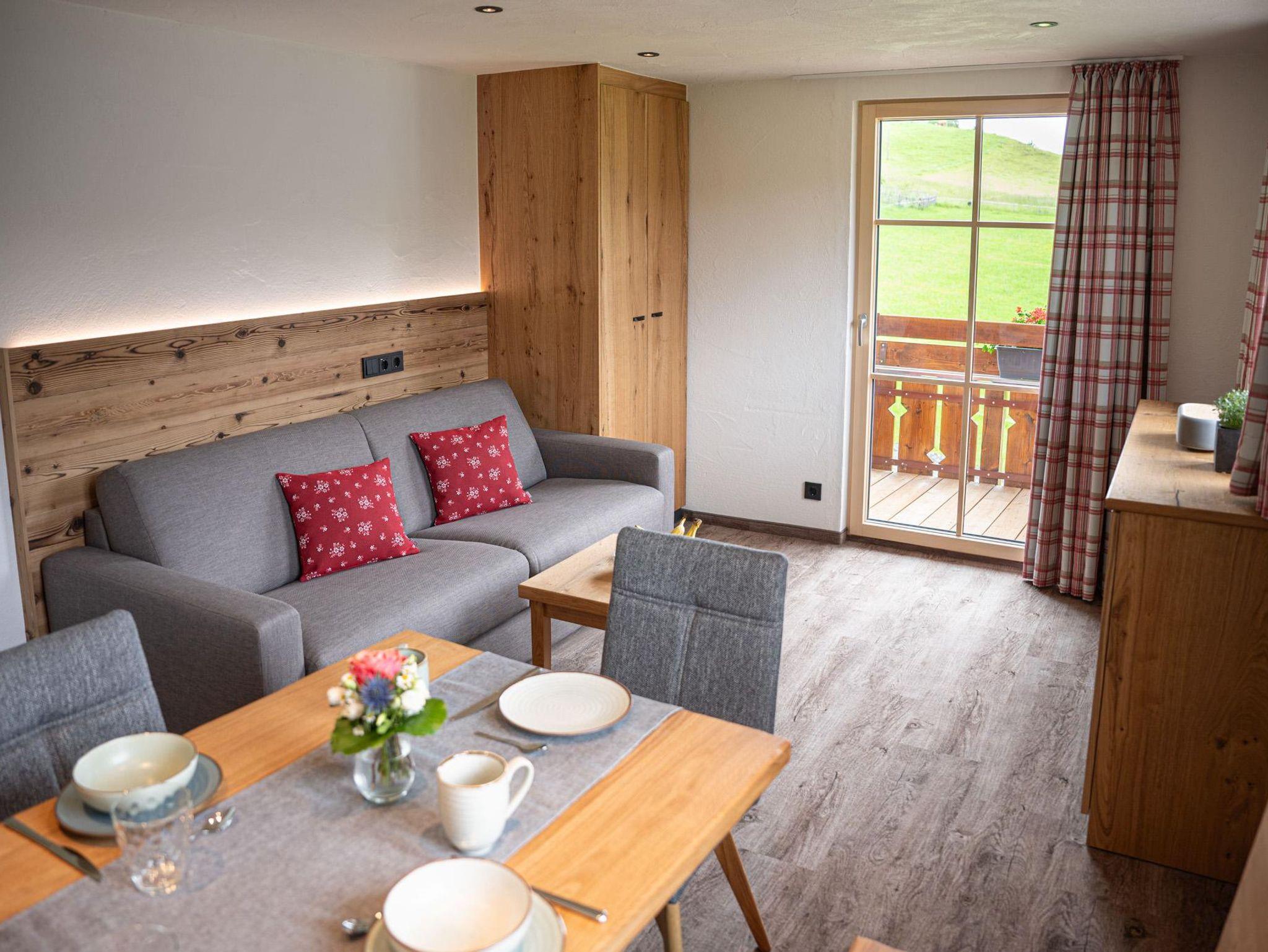 Ferienwohnung Rubihorn eignet sich ideal für Familien mit bis zu 2 Kindern oder Ruhesuchenden, die gerne ein wenig mehr Platz möchten. Das getrennte Schlafzimmer und die großzügig, ausklappbare Schlafouch im Wohnbereich bieten eine Heimat für 1-4 Personen. Balkon mit Morgensonne inklusive