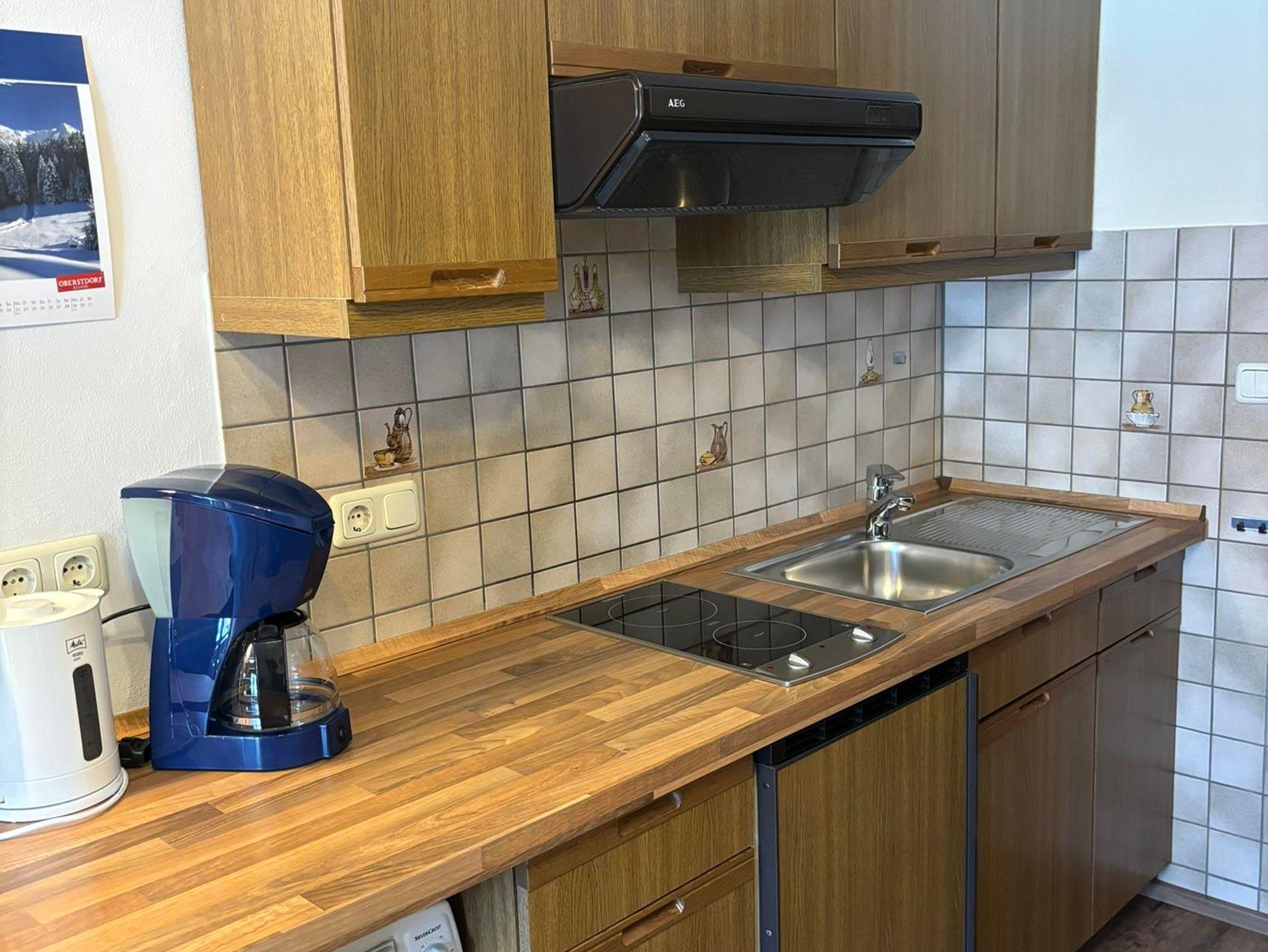 40 qm für 1 - 2 Personen Wohnraum mit komplett eingerichteter Küchenzeile, Herd und kleinem Backofen, Couchgarnitur und Essecke, Sat-TV. 1 Schlafzimmer mit Doppelbett. Bad mit Dusche und Badewanne. Separates WC. Ostbalkon mit traumhafter Bergsicht.