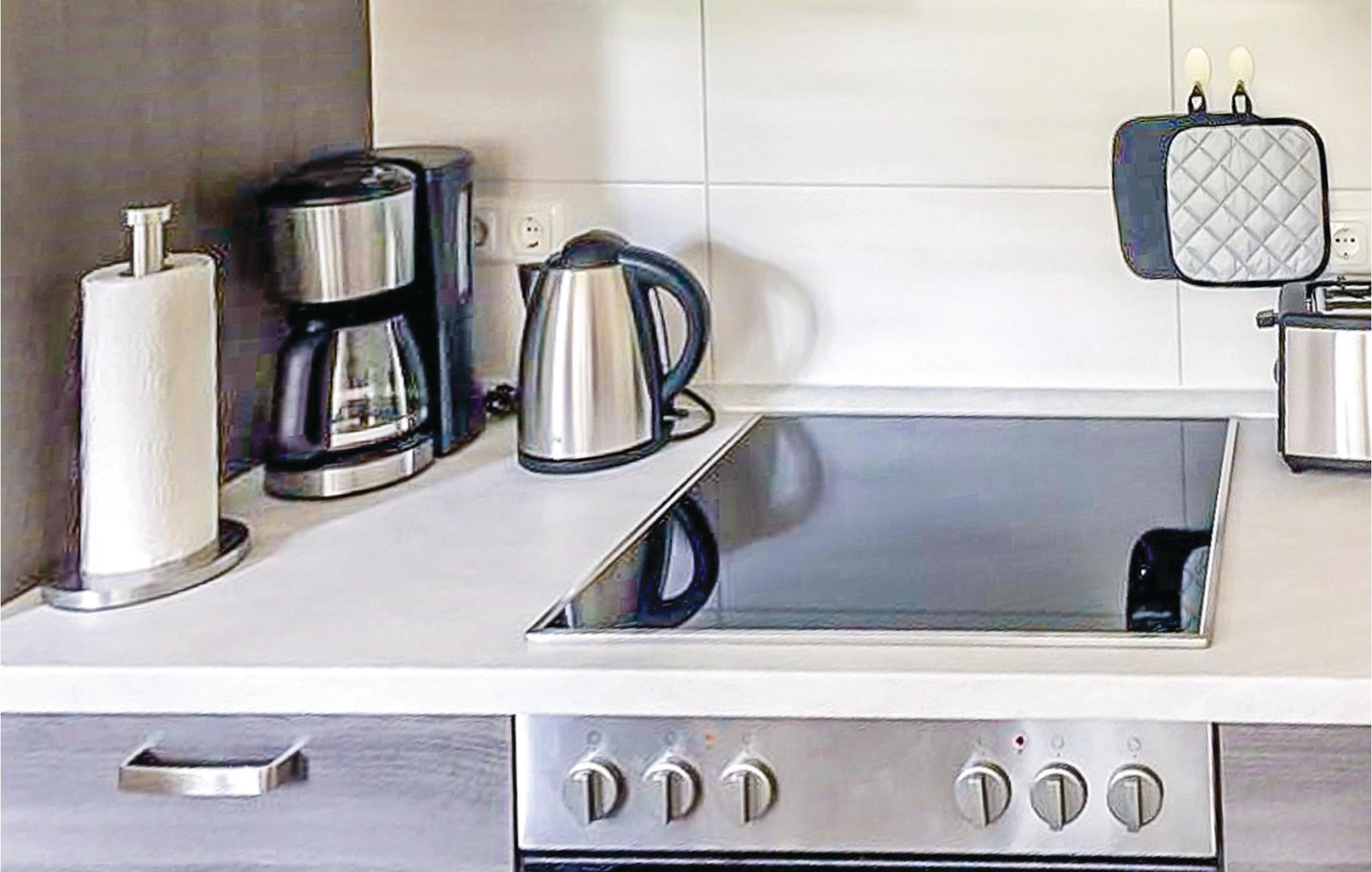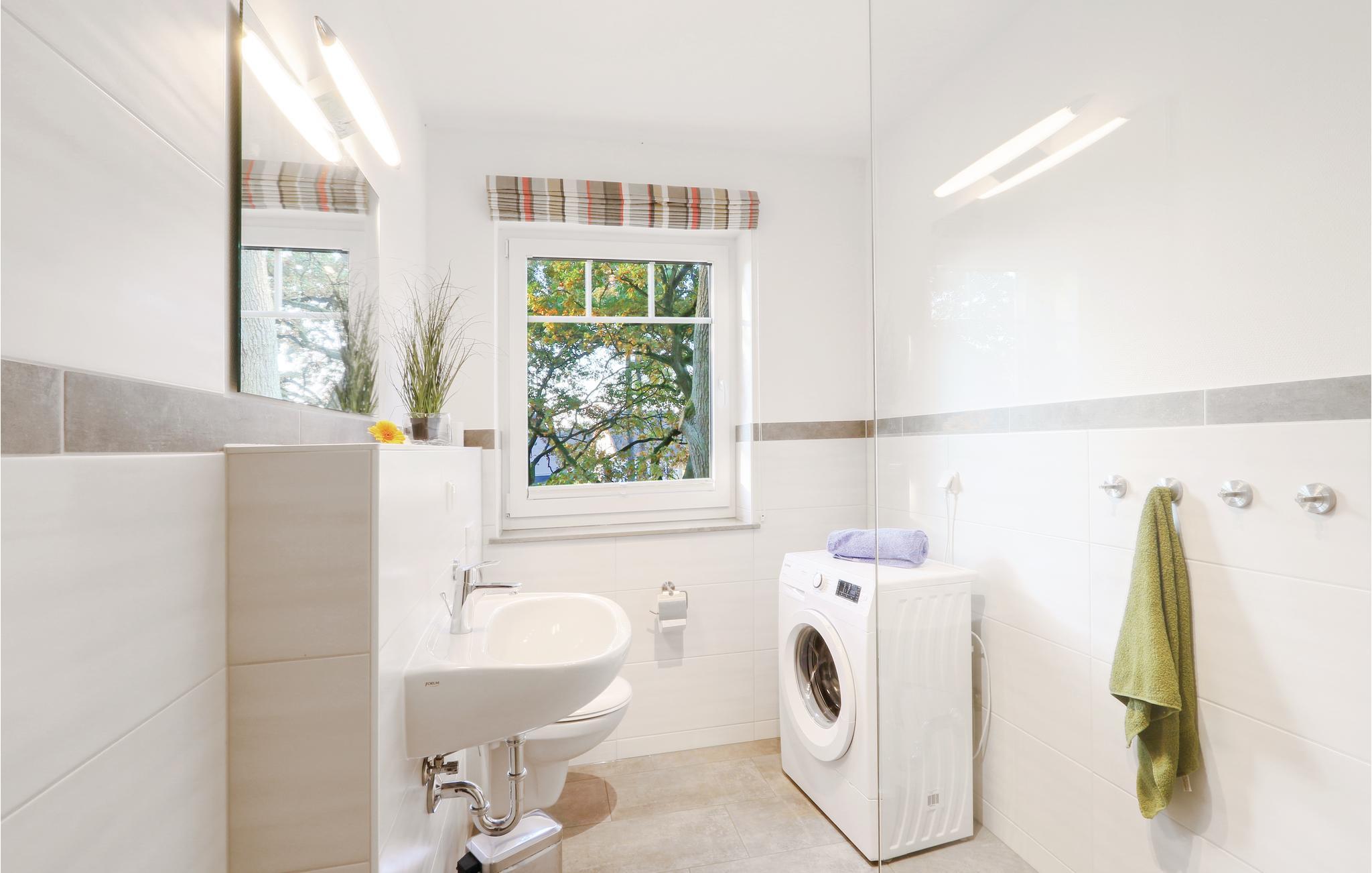 Begge soveværelser har hver to enkeltsenge. Komfort i ferien giver en vaskemaskine med tørretumbler samt et tørrestativ.