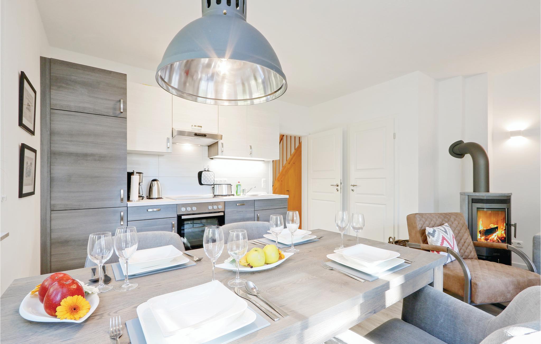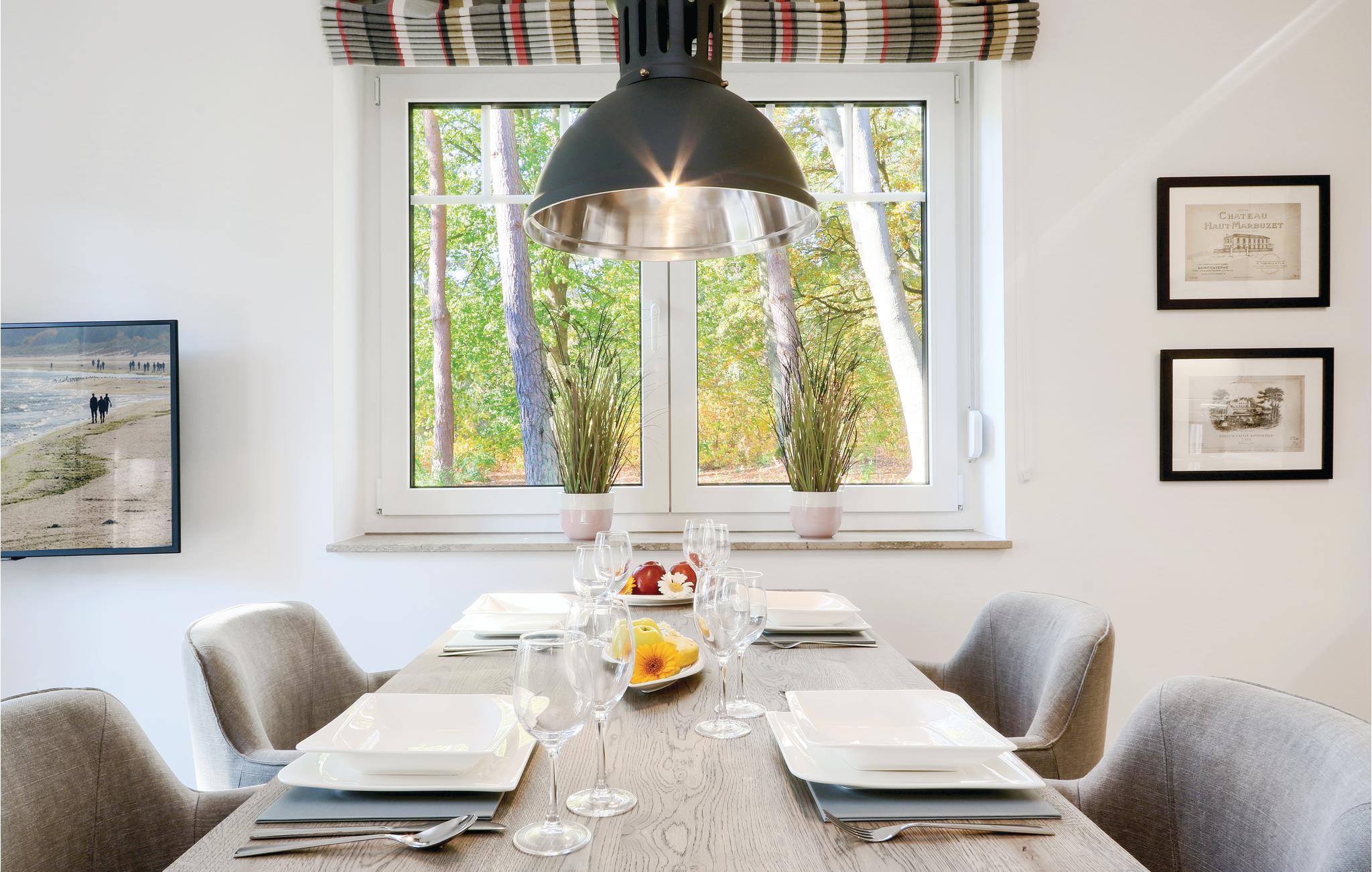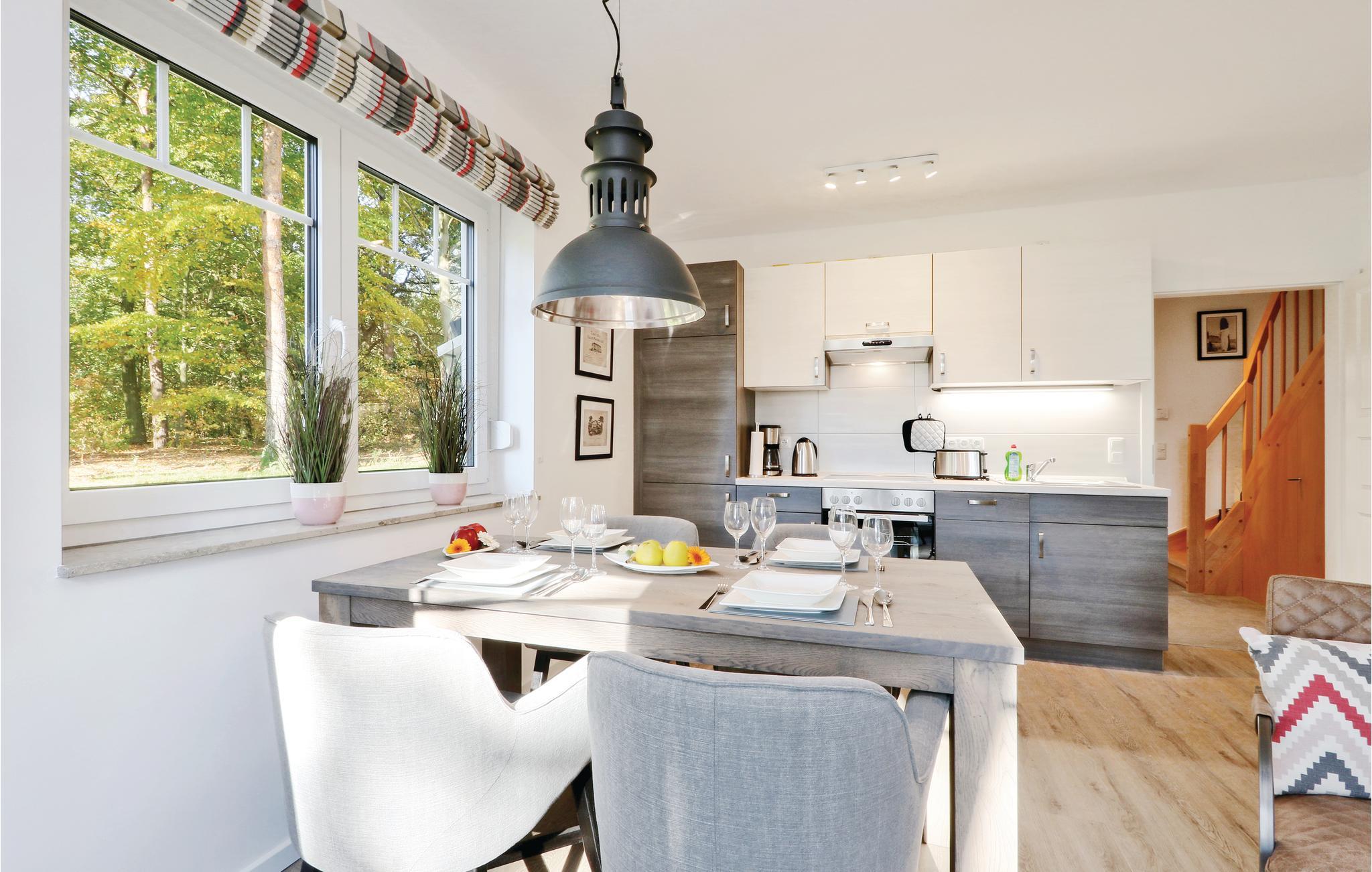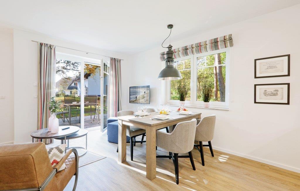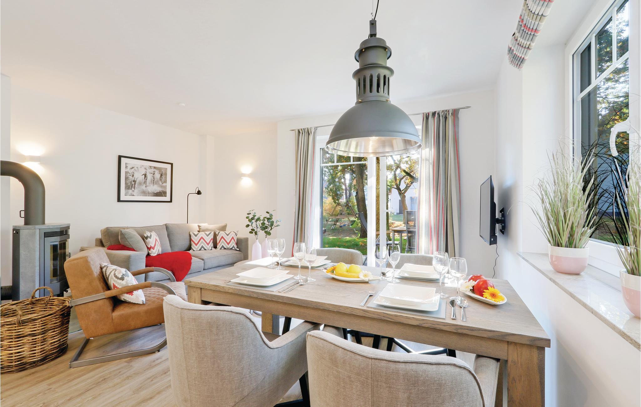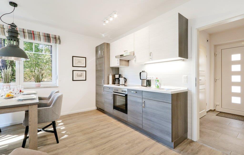 I denne halvdel af et dobbelthus af høj kvalitet bor I på to etager I udkanten af ferieparken. Værelserne er moderne og lyst indrettet.