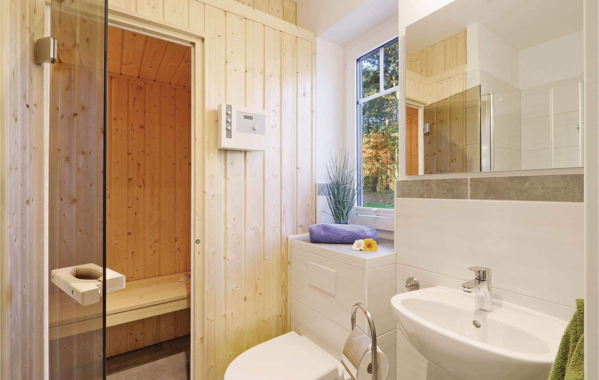 Fra køkkenalrummet kommer I til terrassen, hvor der kan nydes de mange solskinstimer. Havemøbler står til rådighed. På de koldere dage kan I finde varmen og nydelse i saunaen. Takket være de to separate badeværelser kan I sagtens holde ferie her med to par og opretholde en vis form for privatsfære. Badekarret i det store badeværelse er yderligere udstyret med en regnvandsbruser.