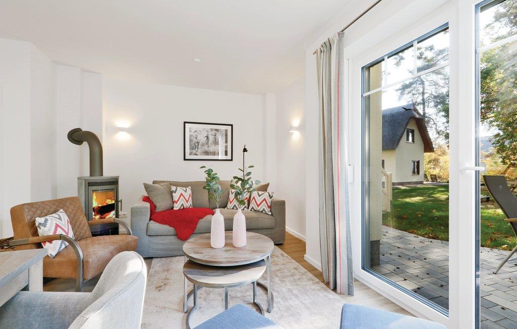 Den lille, idylliske havneby Zirchow ligger på solskinsøen Usedom, hvor disse stråtækte feriehuse står. Ferieparken ved Stettiner nor byder på gode huse til hele familien, med hygge under stråtag.
