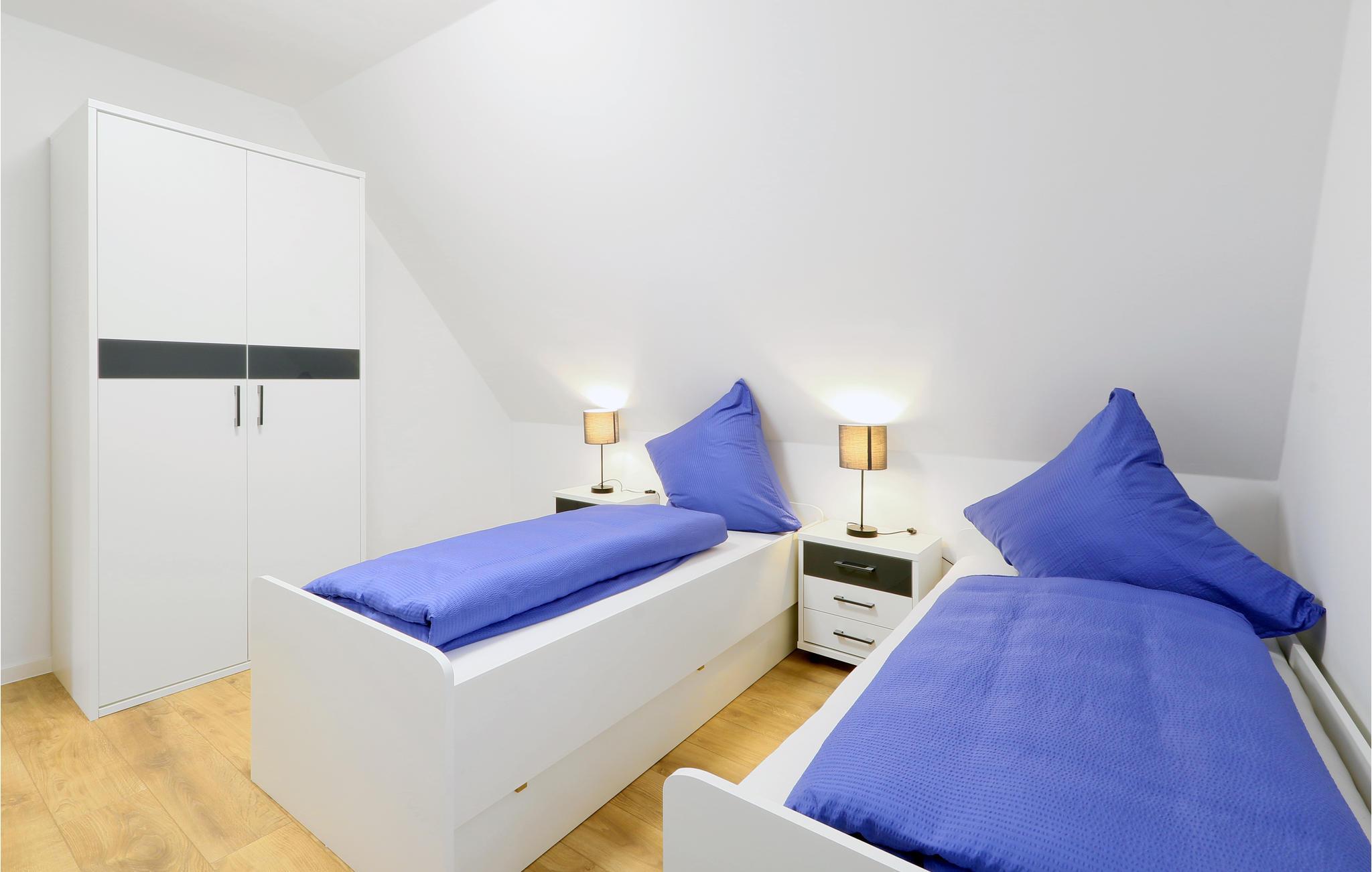 Det veludstyrede halve dobbelthus er fordelt over to etager med en moderne og venlig indretning. Fra det kombinerede stue-/køkkenområde går I ud på terrassen, hvor I kan nyde de mange solrige timer under ferien. En grill til dejlige grillaftener står til jeres rådighed. På kølige dage kan I gøre brug af saunaen og få varmen eller sætte jer foran brændeovnen. I det ene af de to soveværelser findes en dobbeltseng, i det andet findes to enkeltsenge.