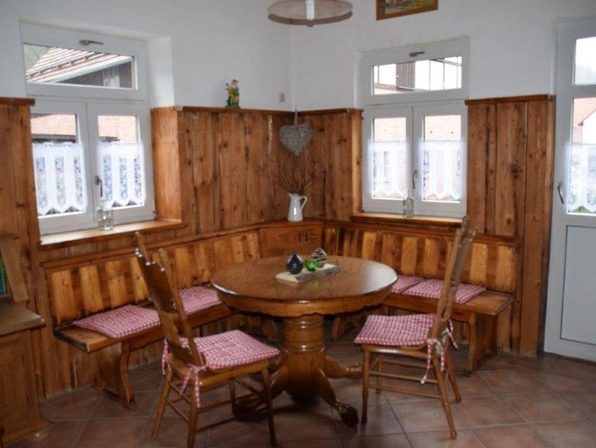 Im Ferienhaus „Zur kleinen Kneipe befindet sich ein Wohn- und Ess-Bereich. Der Pellet-Kaminofen lädt für lauschige Stunden lädt zum Verweilen ein. Der Wohnraum verfügt außerdem über ein Sofa und TV. Ebenfalls im Erdgeschoss des Hauses befindet sich eine voll ausgestattete Küche mit Kühlschrank, Spülmaschine, Elektroherd, Kaffeemaschine, Geschirr, Besteck, Gläser usw. Auf der gleichen Ebene befindet sich ein kleines Bad ausgestattet mit WC, Urinal und Waschtisch. Eines der Schlafzimmer ist ausgestattet mit einem Stockbett 1,0 m x 2,0 m, einem Kleiderschrank und einer Kommode. Im zweiten Schlafzimmer finden Sie ein Doppelbett 2,0 m x 2,0 m sowie eine Sitzecke mit Tisch. Im DG befindet sich das Bad, ausgestattet mit Dusche WC und Waschtisch. Beheizung und Warmwasserversorgung erfolgen mit nachwachsenden Rohstoffen (Hackschnitzel). Im Außenbereich befindet sich eine Terrasse, auf der man verweilen kann. Eine Grillmöglichkeit ist vorhanden.