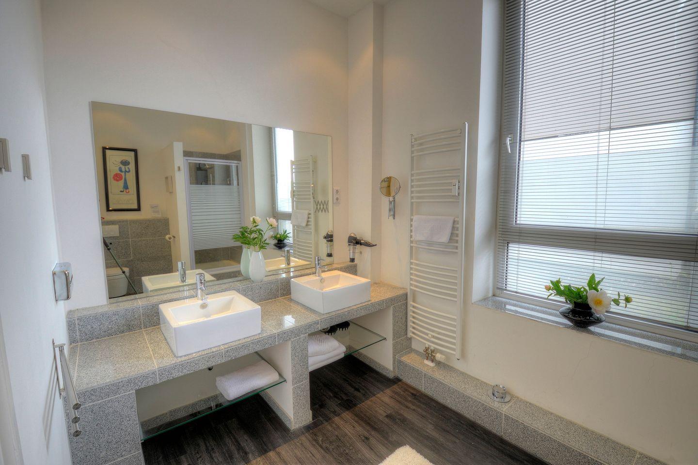 Eines der Bäder bietet Dir zudem ein Doppelwaschbecken, allerdings gibt es insgesamt nur eine Toilette.