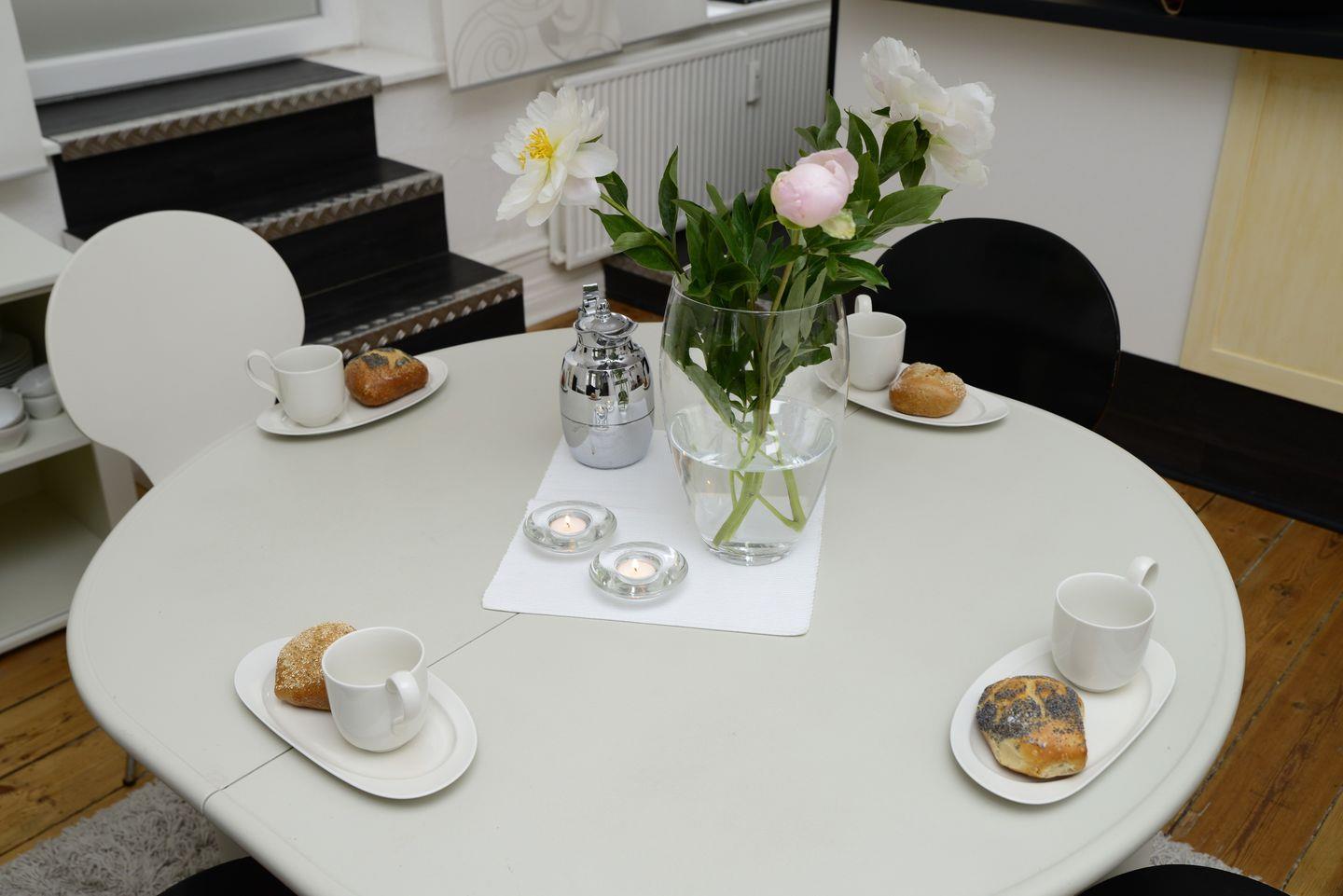 Die Altbauwohnung befindet sich in einem Flensburger Bürgerhaus aus dem 19. Jahrhundert. Die ca. 108m² große Wohnung verfügt über zwei Schlafzimmer und im großen Wohnbereich über ein zusätzliches Schlafsofa. Die Küche und das Wohnzimmer sind offen gestaltet und bietet ein elegantes Ambiente. Aus den großen Fenstern bietet sich ein wunderbarer Blick auf die bekannte Norderstraße mit den legendären hängenden Turnschuhen von Flensburg.