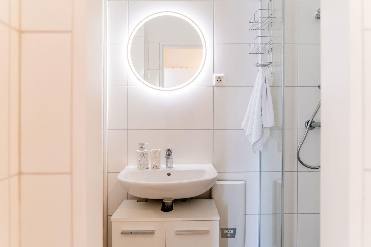 Während das Badezimmer mit Dusche und WC ausgestattet ist. Handtücher und Bettwäsche sind im Preis inbegriffen.