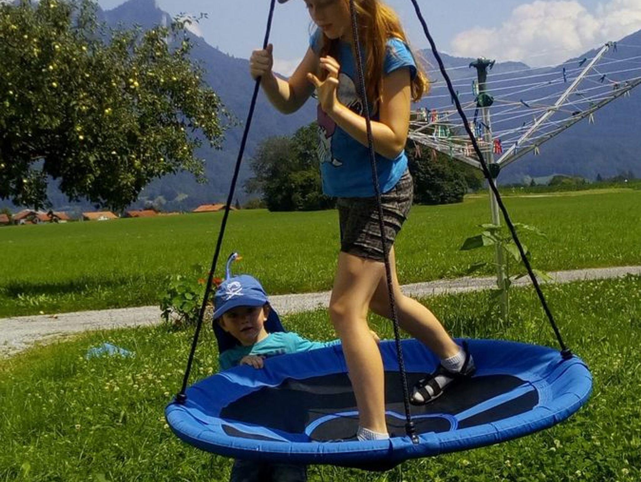 Unsere 2018 fertig gestellten Ferienwohnungen werden Ihnen nicht zu viel versprechen. Sie verleihen Ihnen Wohlfühlatmosphäre vom ersten Tag an. Besonders die Holzbauweise mit sichtbaren Dachstuhl, die bestens ausgestattete Wohnküche mit freiem Blick auf die Berge, die Ruhe auf dem Balkon. An kälteren Tagen die wohlige Wärme der Fußbodenheizung in allen Räumen, mit kostenlosen WLAN. Auf die Kleinen wartet ein Spielhaus mit Rutsche, eine Wippe, Schaukel und der verspielte Hofhund. Natürlich dürfen auch die Kälbchen gestreichelt werden. Grillplatz und Liegewiese vorhanden. Unsere Waschmaschine und Trockner stellen wir Ihnen gerne zur Verfügung. Wir freuen uns auf Ihren Besuch. Kurzübernachtungen auf Anfrage möglich!