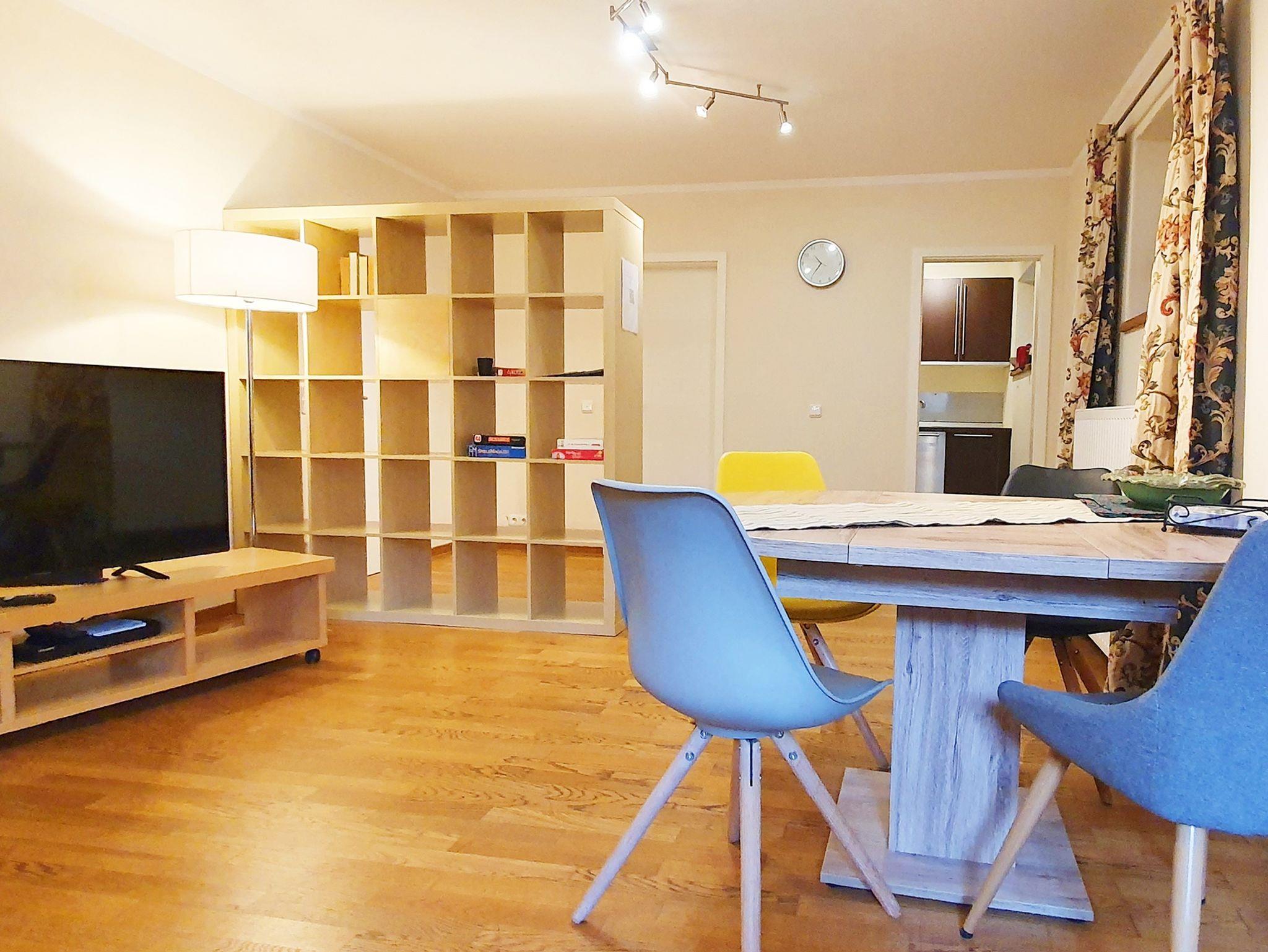 Die gemütliche Ferienwohnung im Souterrain verfügt über eine Küche, ein Schlafzimmer, Bad, Flur mit Garderobe sowie einen Wohn-Essbereich mit Schlafcouch. Ein eigener Zugang ist vorhanden. der Garten kann mitbenutzt werden. Parkplätze sind vor dem Haus vorhanden. Küche: voll ausgestattet mit Spüle, Geschirrspülmaschine, Kühlschrank mit Gefrierfach, Herd mit Cerankochfeld und Backofen, Kaffeeautomat und notwendiges Geschirr und Besteck. Schlafzimmer: Das Schlafzimmer verfügt über ein Boxspringbett. Nachtkästchen mit Nachtischlampen. Wohn-Esszimmer: Das Wohn-Esszimmer ist mit einer ausziehbaren Ledercouch, einem Tisch sowie einem Esstisch(ausziehbar) mit 4 Stühlen, einen Flachbildfernseher mit Satellitenempfang Blue-Ray-Player sowie einem Radio ausgestattet. Badezimmer: Das Badezimmer ist mit einem WC, einem Waschbecken sowie einer bodenebenen Dusche ausgestattet. Sonstiges: Kostenloses WLAN. Im Apartment sind Haustiere erlaubt, Waschmaschine vorhanden, Wäschetrockner kann vom Vermieter mitbenutzt werden. Endreinigung ist im Preis enthalten. Spülmaschinentabs und Spülmittel stehen kostenlos zur Verfügung. Bereitstellung der Bettwäsche, Regelmäßiger Handtuchwechsel, Nichtraucher