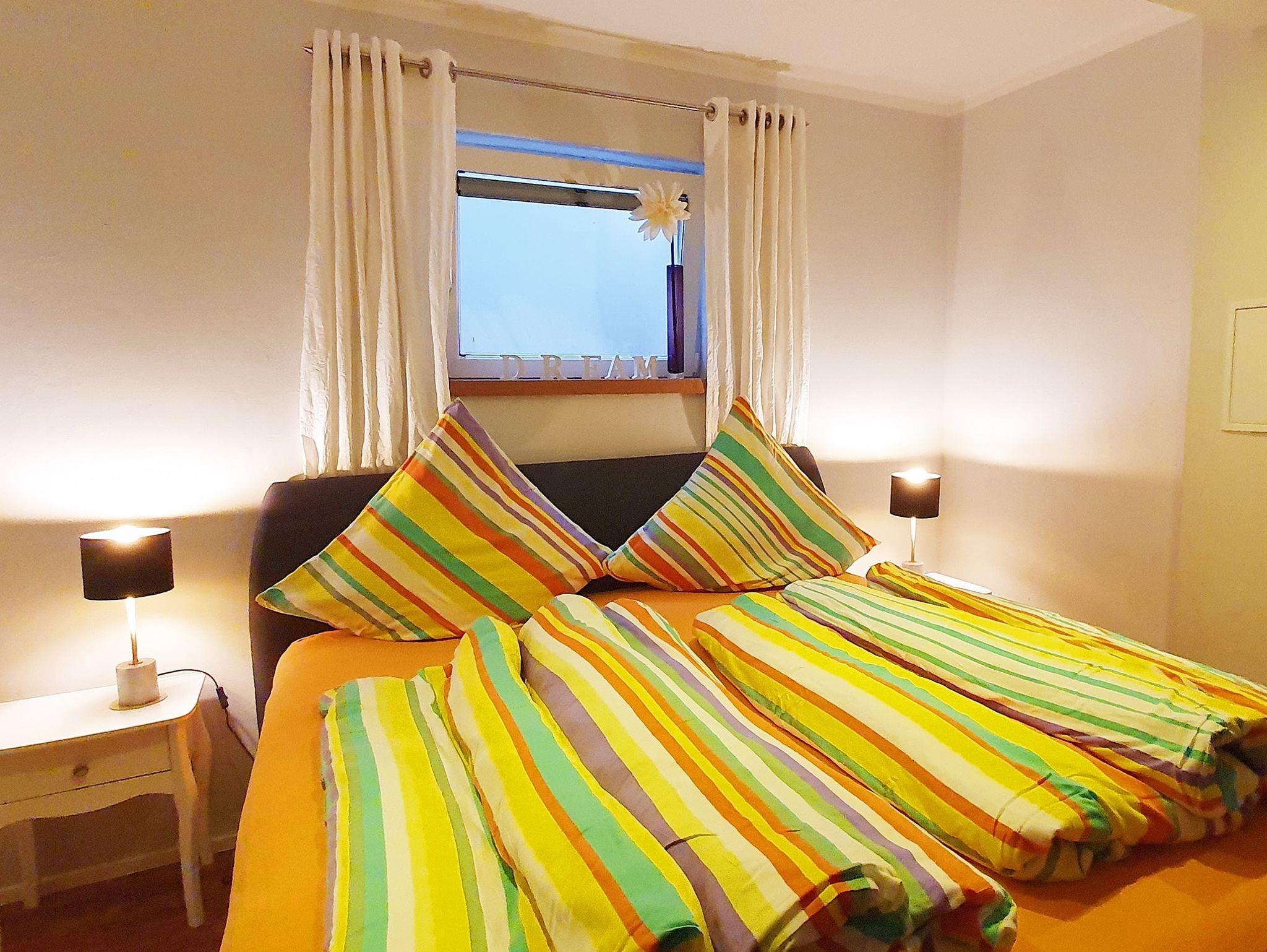 1 Ferienwohnung für 2 - 4 Personen, ca. 60 qm, gemütliche Ferienwohnung im Souterrain verfügt über eine Küche, Schlafzimmer, ein Bad, eine Garderobe sowie einen Wohn-Essbereich mit Schlafcouch, TV mit Satellitenempfang DVD - Player. Mindestaufenthalt 5 Tage. Ein eigener Zugang ist vorhanden. Der Garten kann mitgenutzt werden. Haustiere sind willkommen! Extra Hundedusche vorhanden.