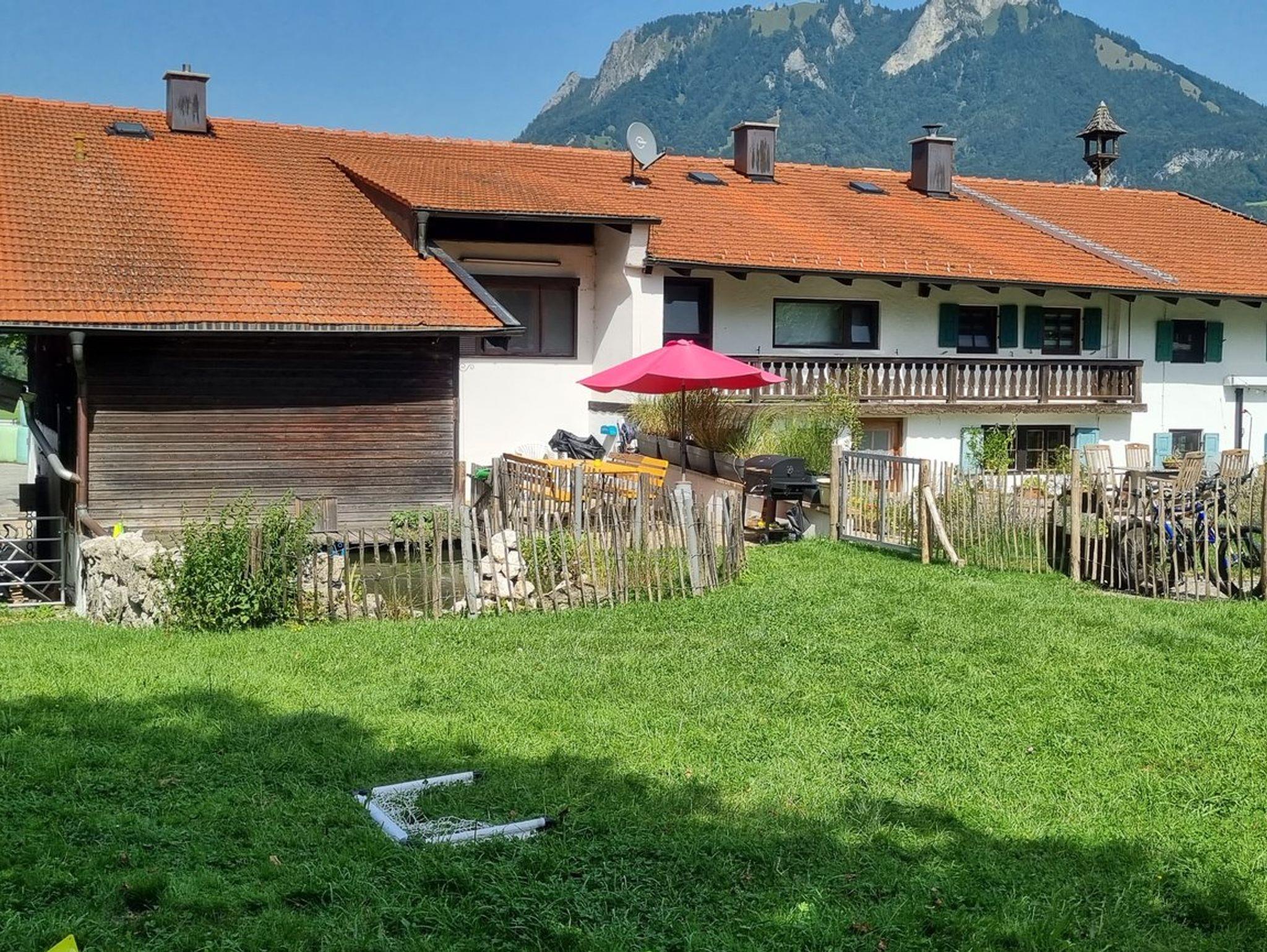 Die Ferienwohnung mit gehobener Ausstattung und separatem Eingang erstreckt sich über 130 qm und befindet sich im OG eines ca. 500 Jahre alten Bauernhauses (Denkmalschutz) in idyllischer Alleinlage (Einödhof) in der Gemeinde Flintsbach Ortsteil Fischbach. Für die ganz kleinen Gäste stehen zwei Kinderbetten (gegen Aufpreis) sowie ein Hochstuhl bereit. Und damit es nicht langweilig wird, haben wir auch eine kleine Spielecke eingerichtet. Auf Wunsch finden in zwei der drei Schlafzimmer noch Zustellbetten für je zwei Personen Platz. So können maximal 10 Personen untergebracht werden. Auf unserem Hof, umgeben von Obstgärten, wohnen Hunde, Katzen, Schafe, Ziegen und Pferde.