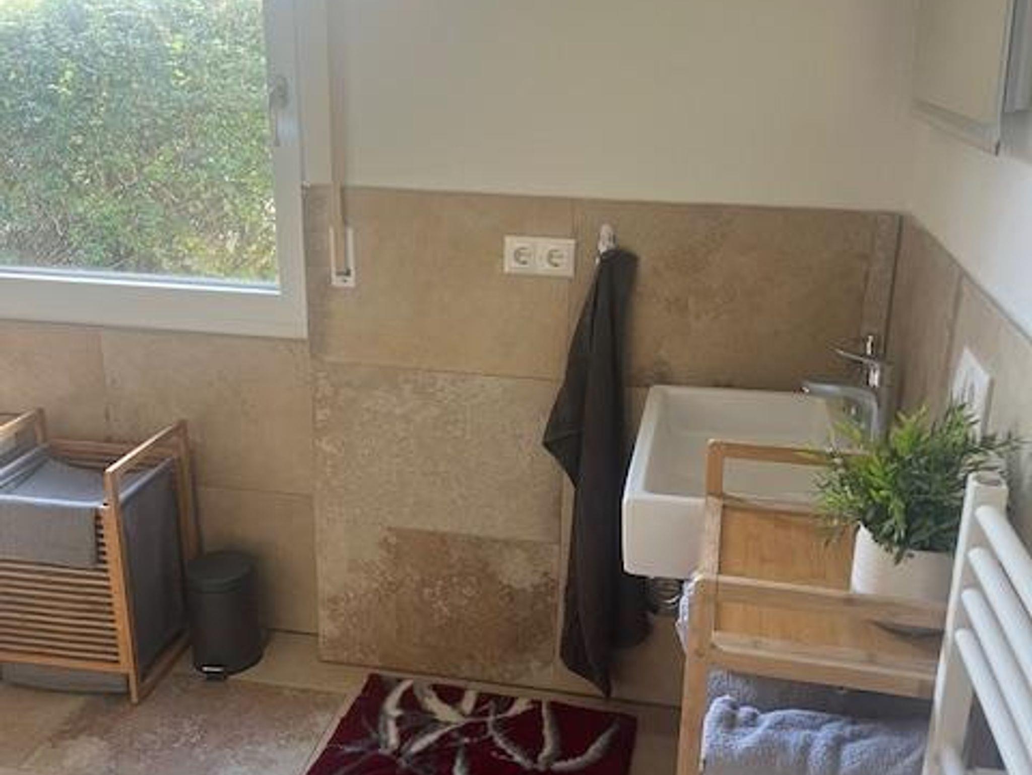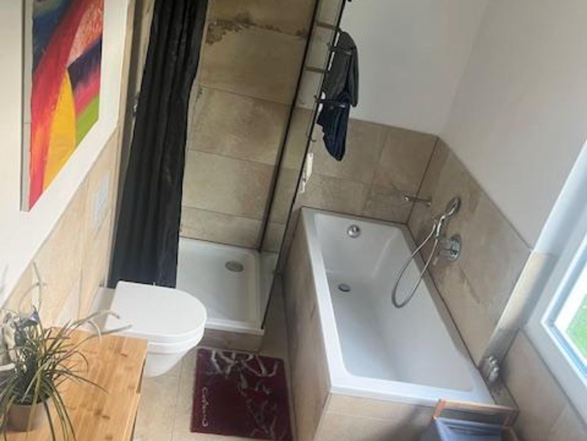 Die Ferienwohnung ist sehr geräumig und liebevoll eingerichtet und erstreckt sich über zwei Stockwerke. Die Ferienwohnung verfügt über ein Bad mit Dusche und Badewanne, ein geräumiges Schlafzimmer mit Boxspringbett, einer sehr gut ausgestatteten Küche und ein Wohn/Esszimmer in dem ggf. zwei weitere einzelne Betten mit guten Matratzen aufgestellt werden können. Darüber hinaus gibt es einen Balkon sowie zwei Terrassen. Der am Haus anliegende Garten darf auch genutzt werden.