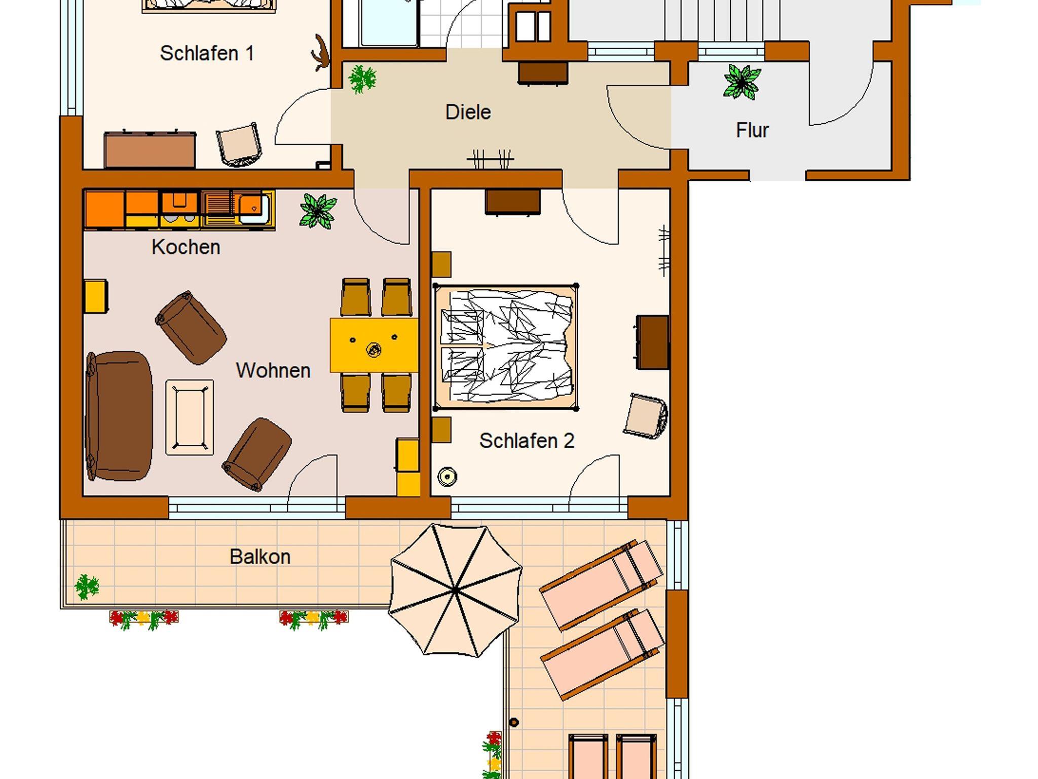 Auf ca. 77 qm einschl. großen Balkon können bis zu 4 Personen den Urlaub direkt am Nationalpark erleben.