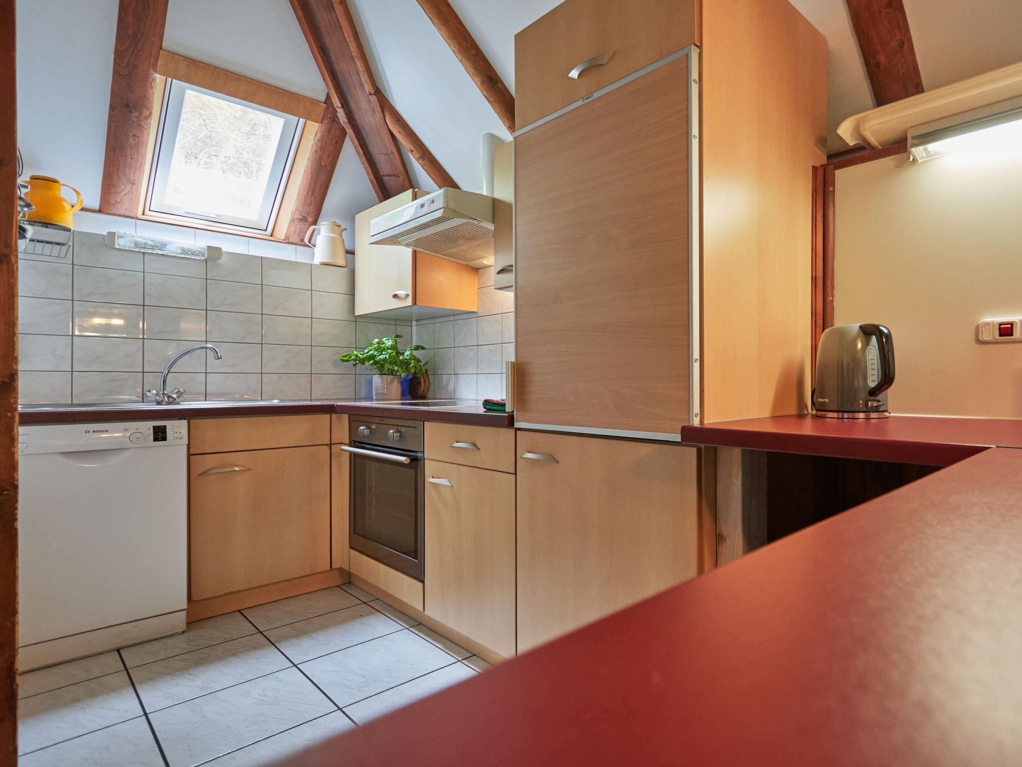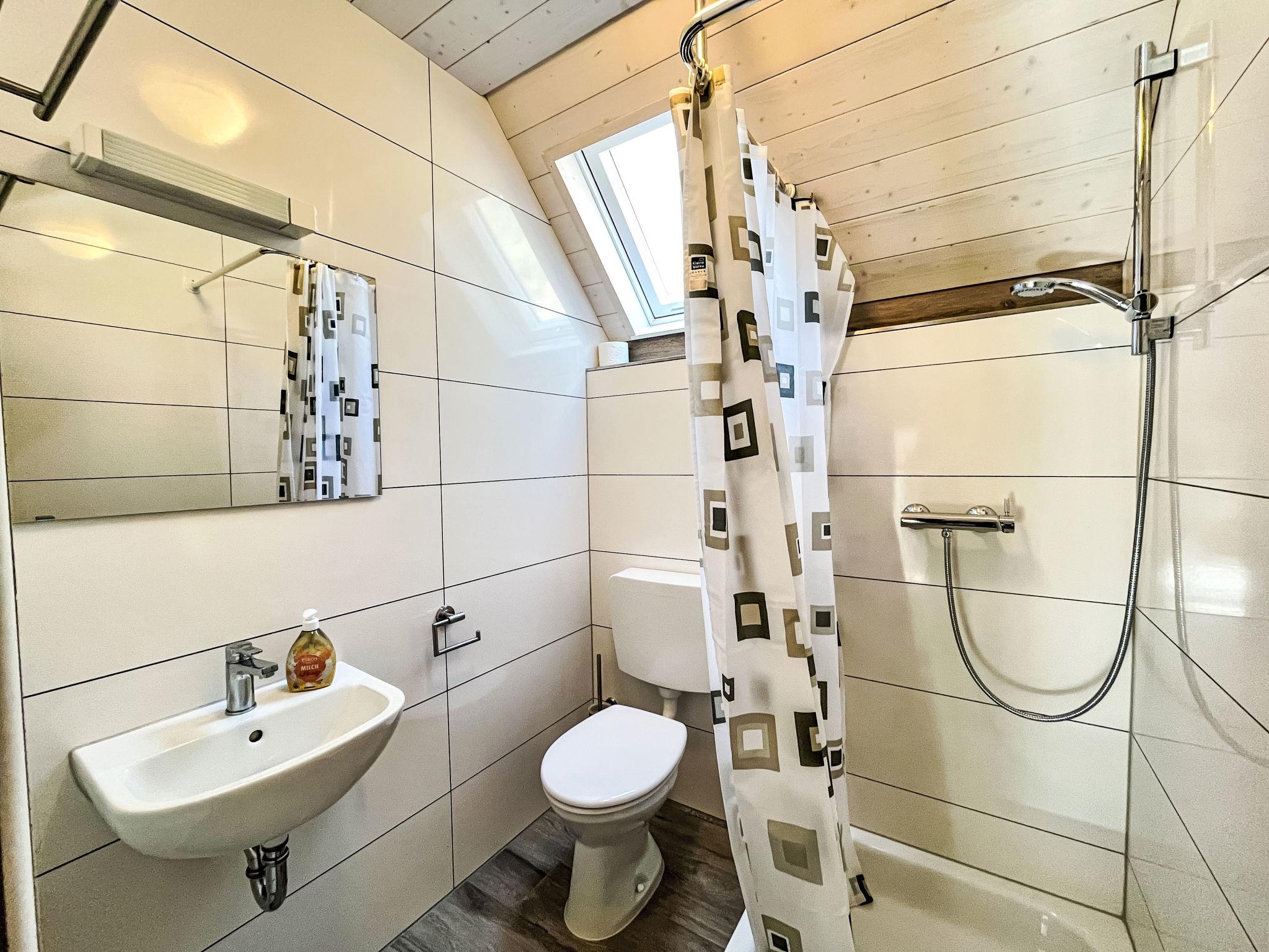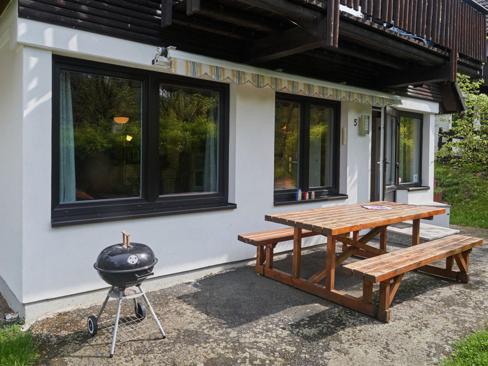 "Sigi", 4-room house 75 m2 on 2 levels, on the ground floor. Modern and wooden furniture furnishings: living/dining room 25 m2 with cable TV (flat screen), hi-fi system, wood-burning stove and air conditioning. Exit to the terrace, to the patio. 1 room 12 m2 with 1 double bed (180 cm, length 200 cm), hand-basin and separate WC. Open kitchen 8 m2 (oven, dishwasher, 4 ceramic glass hob hotplates, kettle, microwave, electric coffee machine). Shower, sep. WC. Upper floor: (spiral staircase), 1 room 12 m2, with sloping ceilings with 1 double bed (180 cm, length 200 cm), hand-basin. Exit to the balcony. 1 room 11 m2, with sloping ceilings with 2 beds (90 cm, length 200 cm). Exit to the balcony. Electric heating. Small balcony 5 m2, south facing position, large terrace 20 m2 partly roofed, patio, lawn 100 m2. Terrace furniture, balcony furniture. View of the forest. Facilities: logs (extra). Internet (WiFi, free). Please note: non-smoking house. Smoke alarm, fire extinguisher. On the ground floor, the rooms are connected by stairs (mezzanine). Bookings accepted for holiday purposes only.