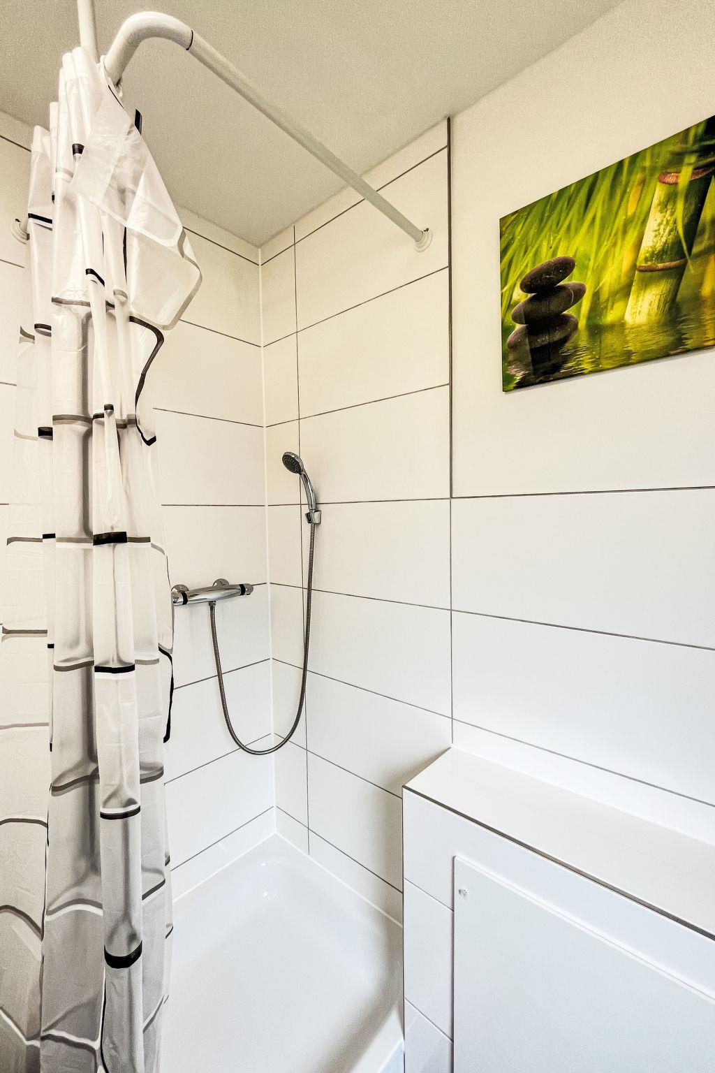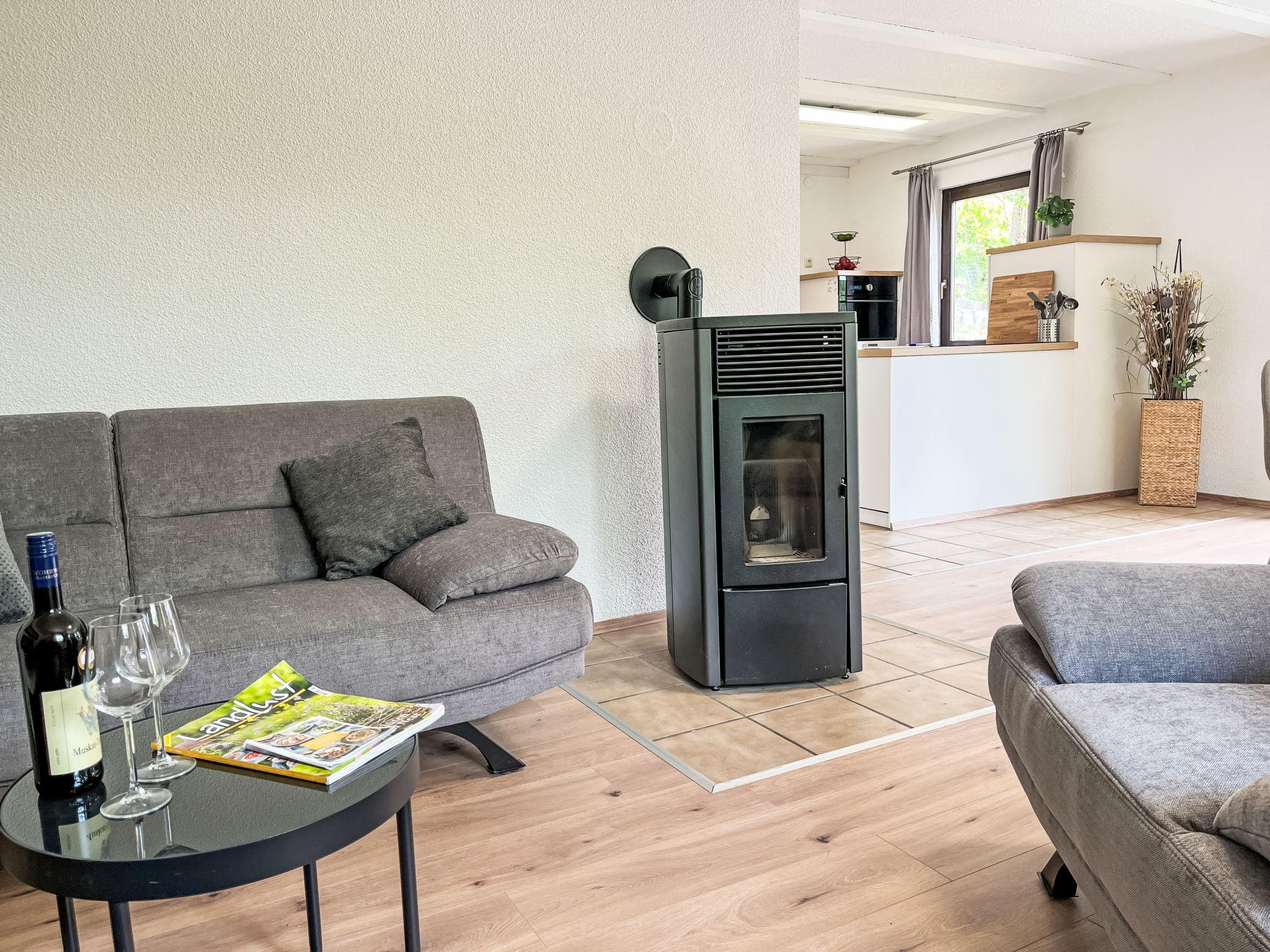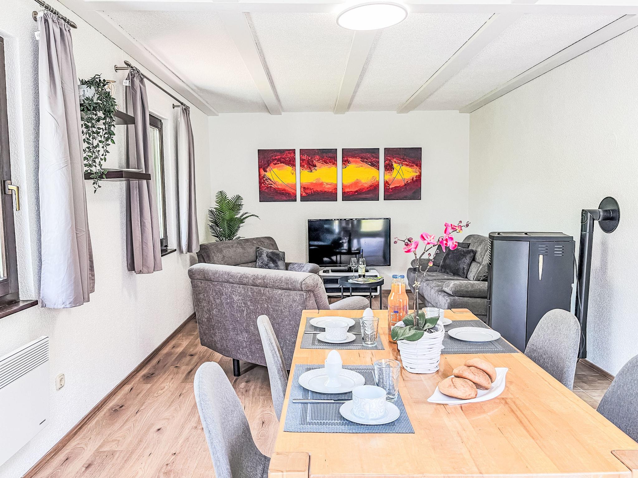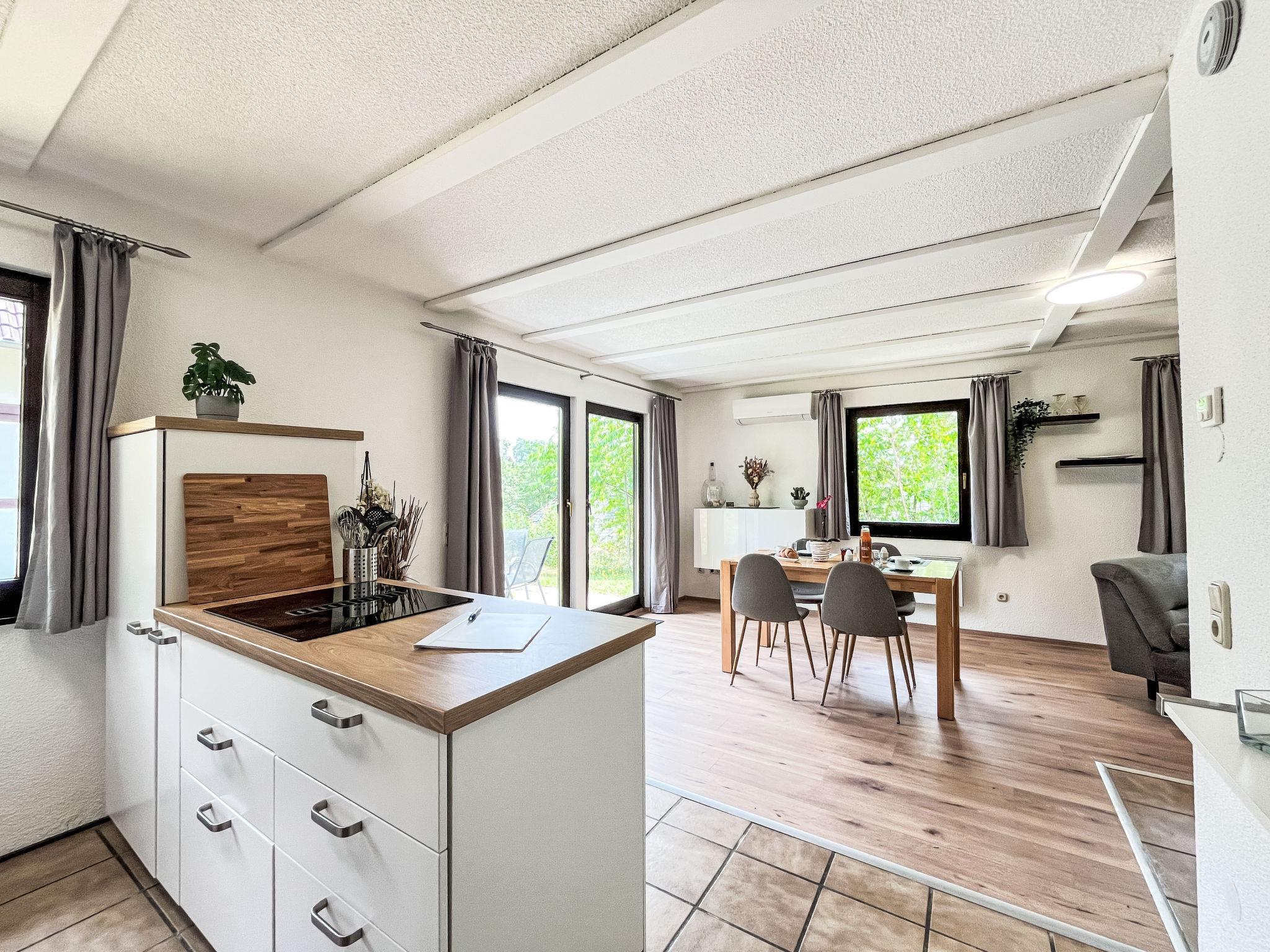 "Dornröschen", 3-room apartment 65 m2, lower ground floor. Fully renovated in 2025, beautiful and cosy furnishings: living/dining room 40 m2 with dining nook and satellite TV (flat screen), wood-burning stove. Exit to the garden, to the terrace. 1 room 10 m2 with 1 double bed (180 cm, length 190 cm). 1 room 10 m2 with 1 bed (90 cm, length 200 cm). Open kitchen (oven, 4 induction hot plates, toaster, kettle, electric coffee machine, combination microwave). Shower/WC. Electric heating. Terrace 30 m2. Terrace furniture. Facilities: washing machine, iron, children's high chair, logs (extra). Internet (WiFi, free). Parking at the house. Please note: non-smokers only. Smoke alarm, fire extinguisher. Netflix (free). Access to the apartment via 20 steps. Apartment will be renovated by April, pictures only example. Bookings accepted for holiday purposes only.