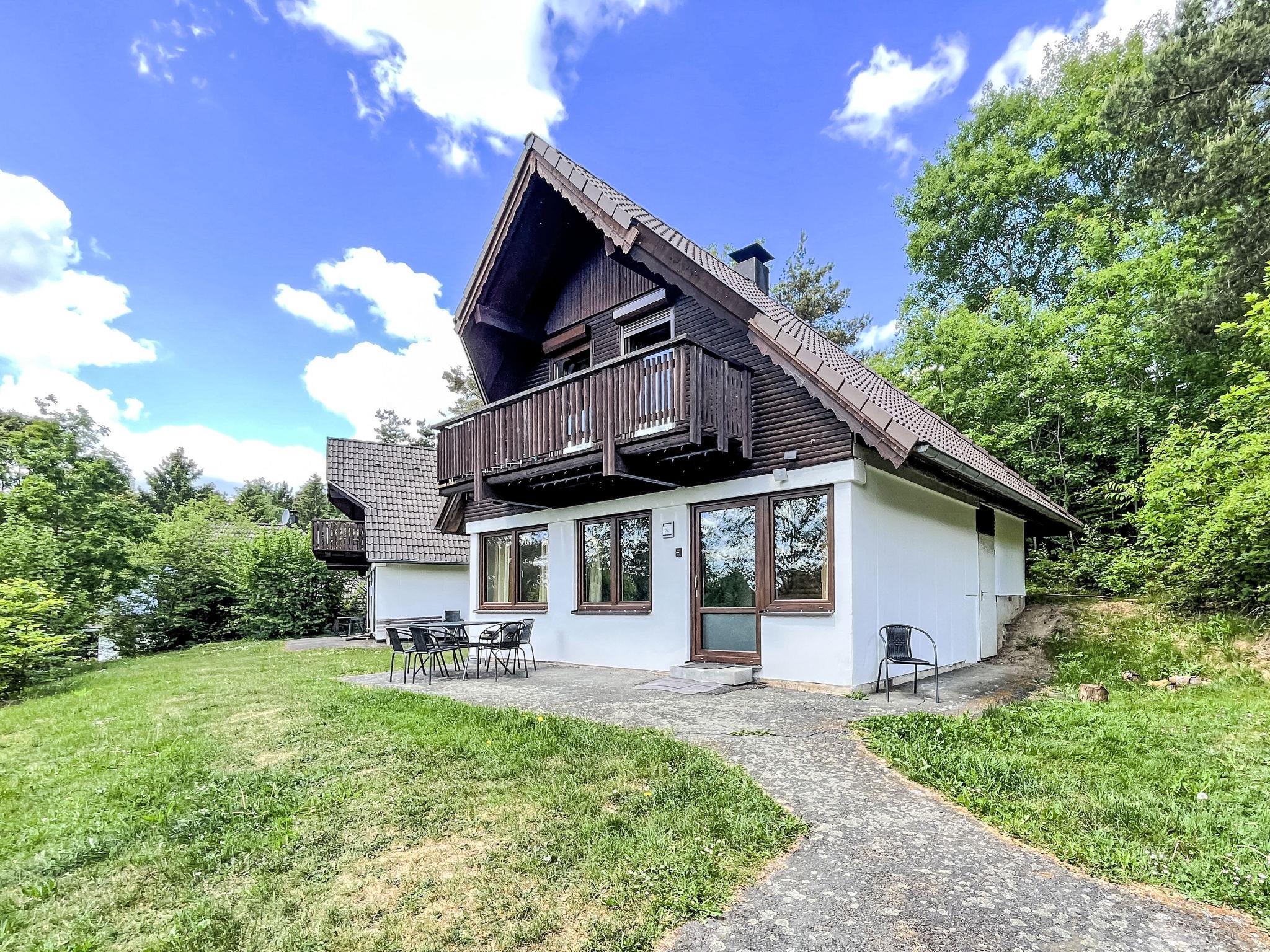 Holiday village "Frankenau", surrounded by trees and meadows. Outside the resort, 2 km from the centre of Frankenau, in the district Nationalpark Kellerwald, on a slope, 28 km from the lake. For shared use: natural state property, pond. In the complex: restaurant with TV, kiosk, sun terrace. Bread roll service. Grocery 8 km, restaurant 2 km, bakery 2 km, bicycle rental 15 km, bus stop 400 m, railway station "Frankenberg" 15 km, outdoor swimming pool 6 km, indoor swimming pool 15 km, thermal baths "Bad Wildungen-Reinhardshausen" 20 km, bathing lake 12 km. Golf course (18 hole) 25 km, tennis, indoor tennis centre 400 m, walking paths from the house 100 m, cycle lane 500 m, gondola lift 27 km, fishing possibilities 700 m. Nearby attractions: KellerwaldUhr 500 m, Schloss Waldeck 27 km. Well-known ski regions can easily be reached: Winterberg 45 km, Willingen 50 km. Well-known lakes can easily be reached: Edersee - Herzhausen 13 km. Hiking paths: Nationalpark Kellerwald 500 m. Please note: suitable for families. Neighbourhood highly sensitive to noise. Quietness and good behaviour expected. Some of the holiday homes can be reached via steps. At the park entrance there is a bistro/café with a sun terrace, Sunday breakfast buffet, children's cinema, table football (limited opening times outside of the season). There is also the option of using a washing machine and dryer for a fee.