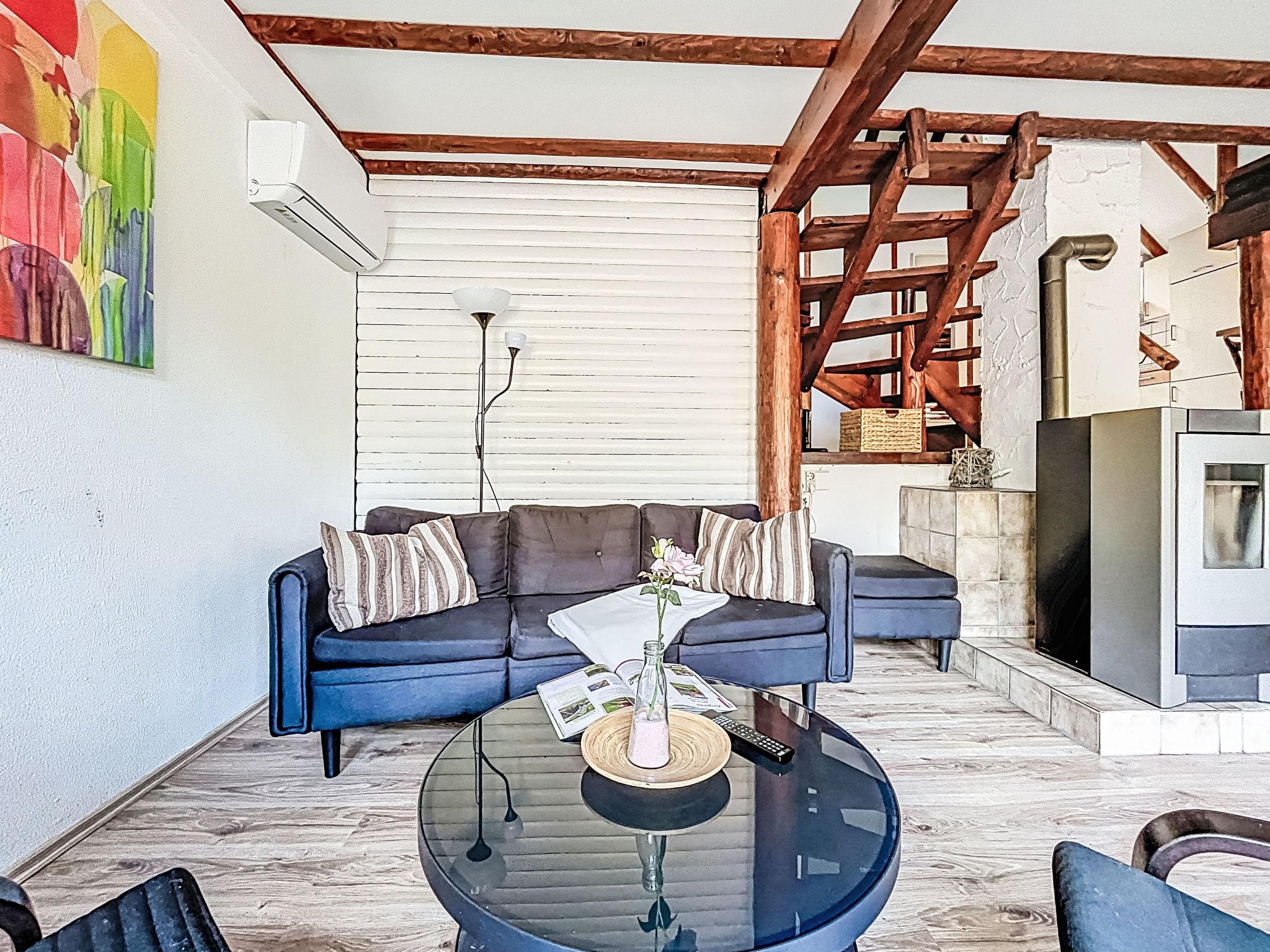 "Rumpelstilzchen", 4-room house 75 m2 on 3 levels. Cosy and wooden furniture furnishings: open living/dining room with dining nook, TV and digital TV (flat screen), radio and wood-burning stove. Exit to the terrace. Upper floor: 1 double bedroom with rooflight with separate WC. With sloping ceilings, open kitchen (oven, dishwasher, 4 ceramic glass hob hotplates, microwave, electric coffee machine). Shower/WC. 2nd upper floor: 1 double bedroom with sloping ceilings. Exit to the balcony. 1 room with sloping ceilings with 2 beds (80 cm, length 200 cm). Exit to the balcony. Electric heating. Balcony, terrace, lawn 100 m2. Terrace furniture. Facilities: washing machine, children's high chair, baby cot, logs (extra). Internet (WiFi, free). Parking at the house. Please note: maximum 3 small pets/ dogs allowed. Smoke alarm, fire extinguisher. When there are less than the maximum number of guests staying at the property, not all of the bedrooms will be available for use.
