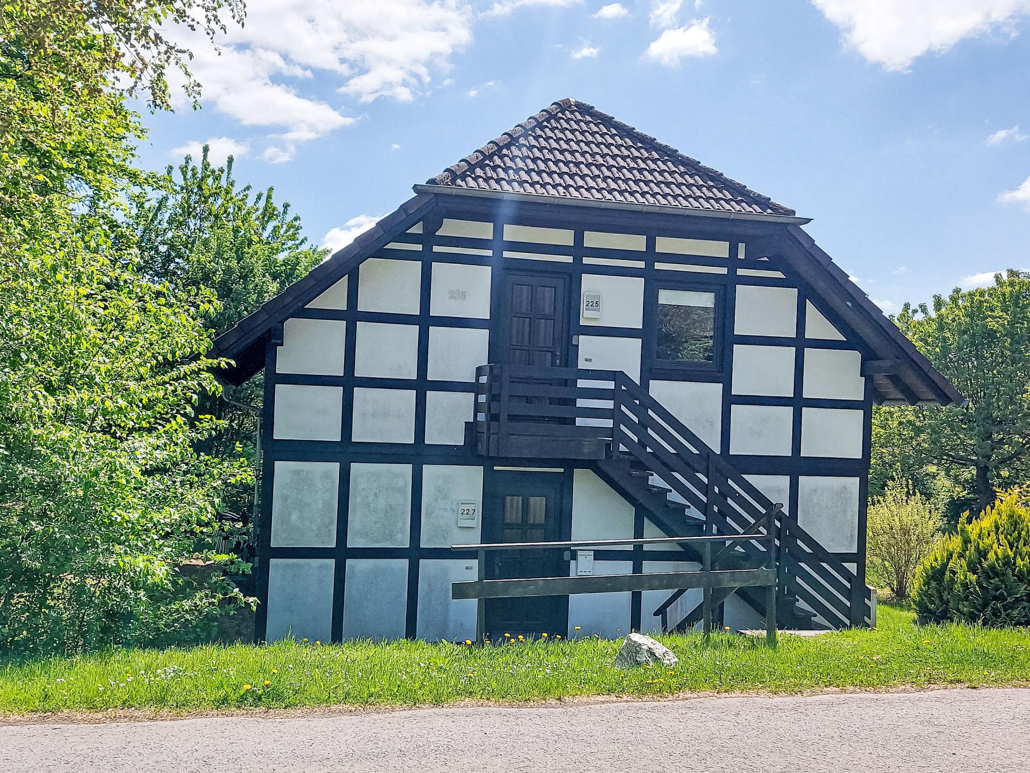 Holiday village "Frankenau", surrounded by trees and meadows. Outside the resort, 2 km from the centre of Frankenau, in the district Nationalpark Kellerwald, on a slope, 28 km from the lake. For shared use: natural state property, pond. In the complex: restaurant with TV, kiosk, sun terrace. Bread roll service. Grocery 8 km, restaurant 2 km, bakery 2 km, bicycle rental 15 km, bus stop 400 m, railway station "Frankenberg" 15 km, outdoor swimming pool 6 km, indoor swimming pool 15 km, thermal baths "Bad Wildungen-Reinhardshausen" 20 km, bathing lake 12 km. Golf course (18 hole) 25 km, tennis, indoor tennis centre 400 m, walking paths from the house 100 m, cycle lane 500 m, gondola lift 27 km, fishing possibilities 700 m. Nearby attractions: KellerwaldUhr 500 m, Schloss Waldeck 27 km. Well-known ski regions can easily be reached: Winterberg 45 km, Willingen 50 km. Well-known lakes can easily be reached: Edersee - Herzhausen 13 km. Hiking paths: Nationalpark Kellerwald 500 m. Please note: suitable for families. Neighbourhood highly sensitive to noise. Quietness and good behaviour expected. Some of the holiday homes can be reached via steps. At the park entrance there is a bistro/café with a sun terrace, Sunday breakfast buffet, children's cinema, table football (limited opening times outside of the season). There is also the option of using a washing machine and dryer for a fee.