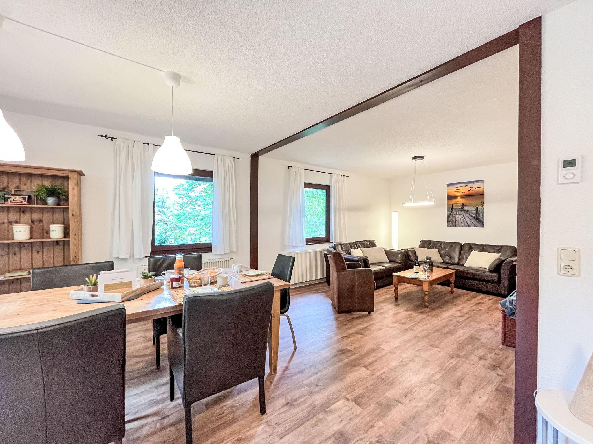 "Sternberg 225/227", 6-room house 172 m2 on 2 levels. Modern and cosy furnishings: living/dining room with Scandinavian wood stove, satellite TV and radio. Exit to the terrace. 1 room with 1 double bed. 1 room with 2 beds. Open kitchen (oven, dishwasher, 4 ceramic glass hob hotplates, toaster, kettle, microwave, freezer, electric coffee machine). Shower/WC. Upper floor: living/dining room with Scandinavian wood stove and satellite TV. Exit to the balcony. 1 room with 1 double bed. 1 room with 2 beds. Open kitchen (oven, dishwasher, 4 ceramic glass hob hotplates, toaster, kettle, microwave, freezer, electric coffee machine). Shower/WC. Electric heating. Large balcony, large terrace. Terrace furniture, balcony furniture. Facilities: washing machine, children's high chair, baby cot. Internet (WiFi, free). Please note: non-smoking house. Maximum 2 pets/ dogs allowed. Smoke alarm, fire extinguisher. No internal connecting door between the separated properties.