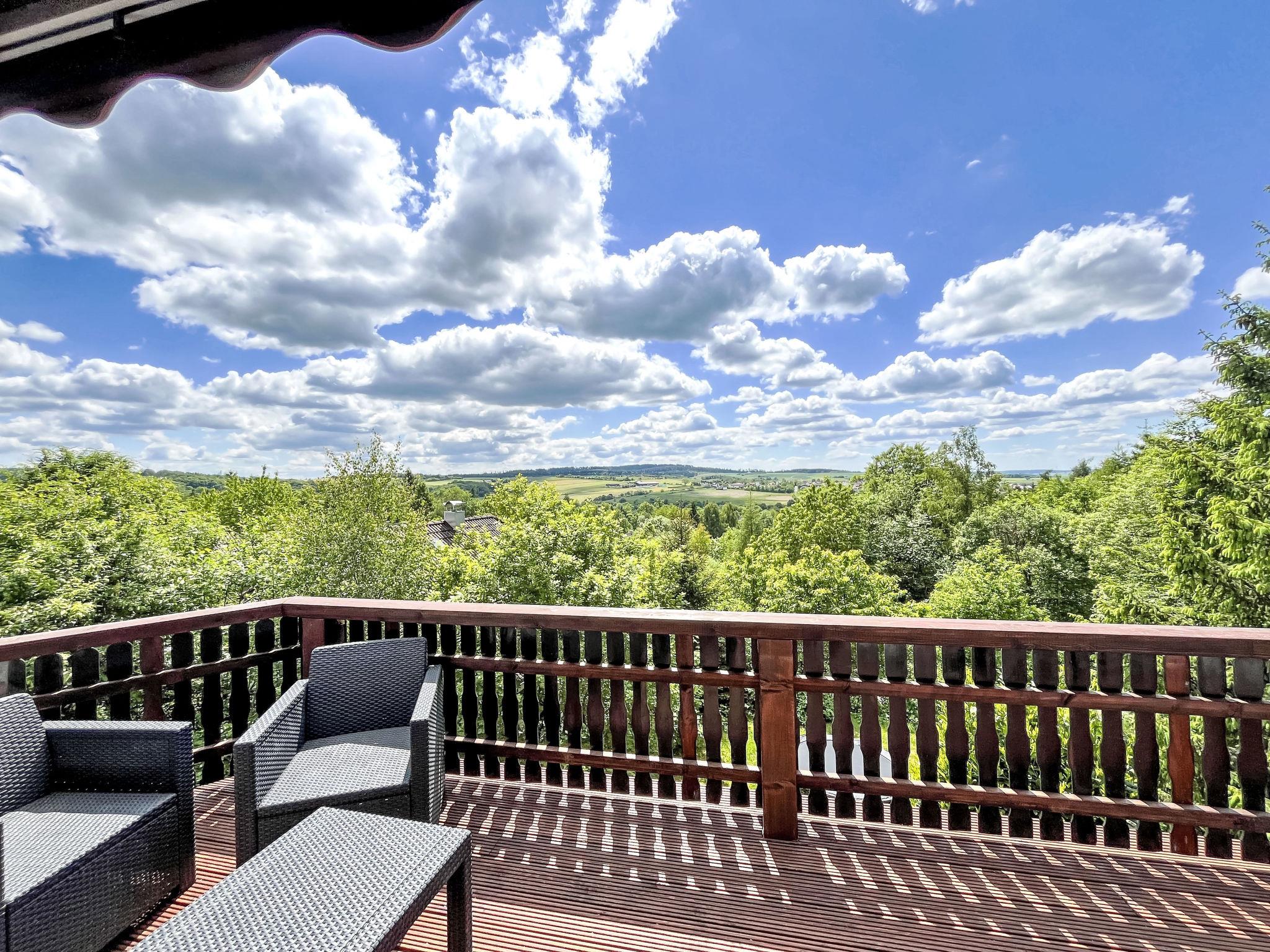 "Hänsel & Gretel im Kellerwald", 6-room house 140 m2 on 2 levels. Spacious and bright, beautiful furnishings: living/dining room with Scandinavian wood stove, dining table, satellite TV and flat screen. Exit to the garden. 1 double bedroom. 1 room with 2 beds. Open kitchen (4 hot plates, oven, dishwasher, toaster, kettle, microwave, freezer, electric coffee machine). Shower/WC. Upper floor: living/dining room with Scandinavian wood stove, dining table and satellite TV (flat screen), radio. Exit to the balcony. 1 room with sloping ceilings with 1 double bed. 1 room with sloping ceilings with 2 beds. Open kitchen (oven, dishwasher, 4 ceramic glass hob hotplates, toaster, kettle, microwave, electric coffee machine). Shower/WC. Electric heating. Large terrace, lawn. Terrace furniture. Facilities: washing machine, baby cot, logs (extra). Internet (WiFi, free). Parking at the house. Please note: non-smokers only. Maximum 1 small pet/ dog allowed. Smoke alarm. No internal connecting door between the separated properties. PLEASE NOTE:This property is a combination of the two separate apartments DE3558.200.31 + DE3558.200.32. Bookings accepted for holiday purposes only.