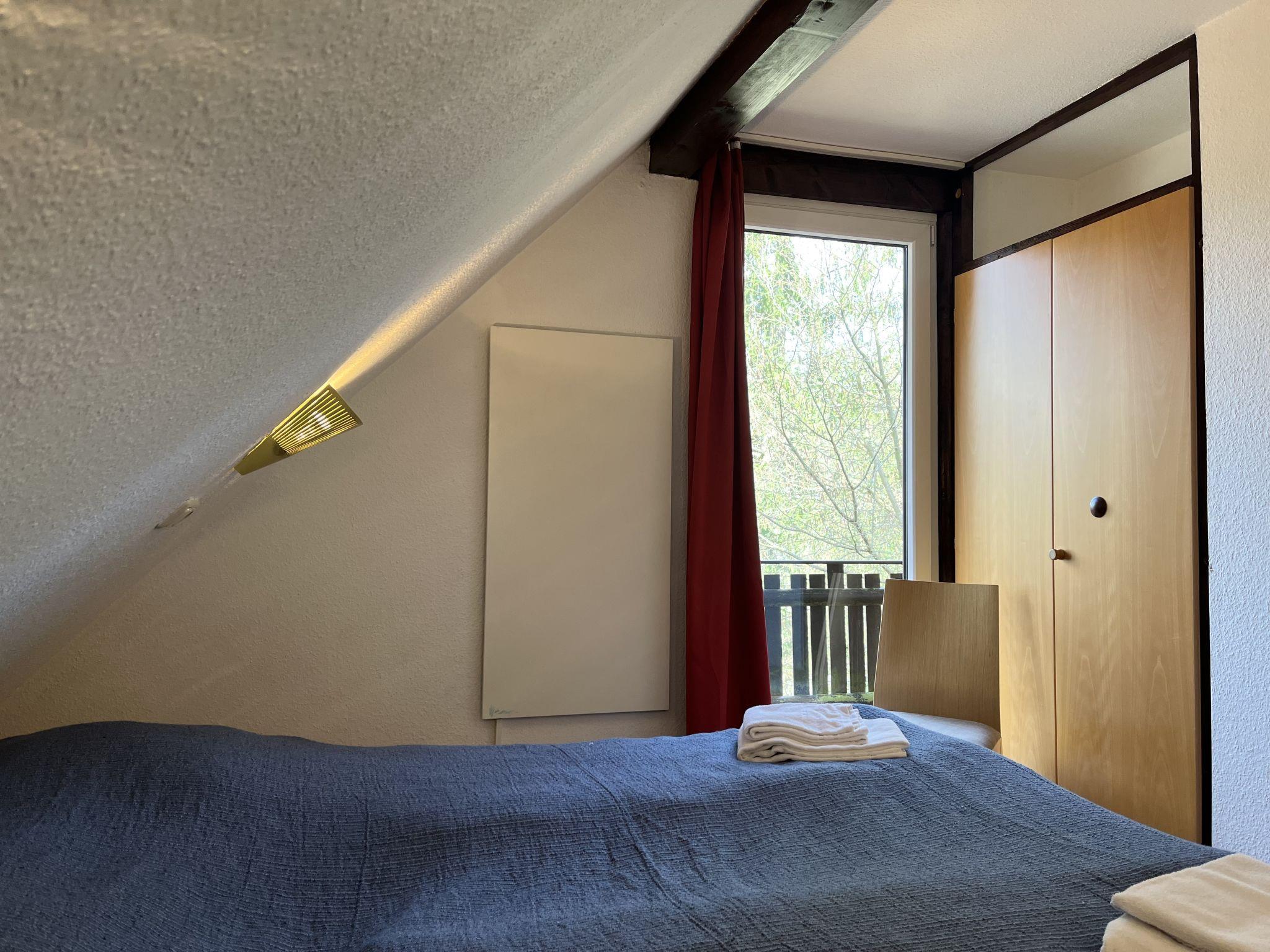 "Sorgenfrei", 4-room house 75 m2 on 2 levels, on the ground floor. Modern and wooden furniture furnishings: living/dining room 25 m2 with cable TV (flat screen), hi-fi system and wood-burning stove. Exit to the terrace, to the patio. 1 room 12 m2 with 1 double bed (180 cm, length 200 cm), hand-basin and separate WC. Open kitchen 8 m2 (oven, dishwasher, 4 ceramic glass hob hotplates, microwave, electric coffee machine, Capsules for coffee machine (Senseo)). Shower/WC. Upper floor: (spiral staircase), 1 room 12 m2, with sloping ceilings with 1 double bed (180 cm, length 200 cm). Exit to the balcony. 1 room 11 m2, with sloping ceilings with 2 beds (90 cm, length 200 cm). Exit to the balcony. Electric heating. Small balcony 5 m2, south facing position, large terrace 30 m2 partly roofed, patio, lawn 100 m2. Terrace furniture, balcony furniture. Facilities: washing machine, children's high chair, hair dryer, logs (extra). Internet (WiFi, free). Please note: non-smoking house. Maximum 2 pets/ dogs allowed. Smoke alarm, fire extinguisher. Heating is provided by a cost-effective air/heat pump. On the ground floor, the rooms are connected by stairs (mezzanine).