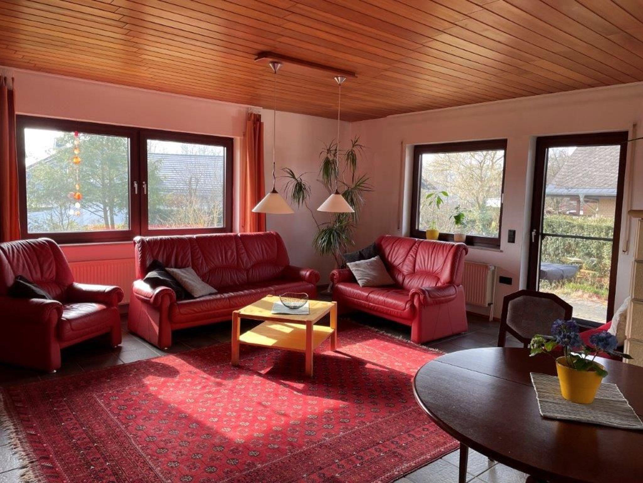 Freundliche, helle Ferienwohnung mit 3 Schlafräumen. Davon zwei mit französischen Betten 160 x 200 cm und 140 x 200 cm. Im dritten Schlafzimmer befinden sich zwei Einzelbetten (90 x 200 cm). Im Badezimmer befindet sich eine Badewanne mit Duschmöglichkeit. Aus dem großen Wohnzimmer gibt es einen Zugang zur Terrasse. Die Küche ist gut ausgestattet und es gibt eine Essgruppe.