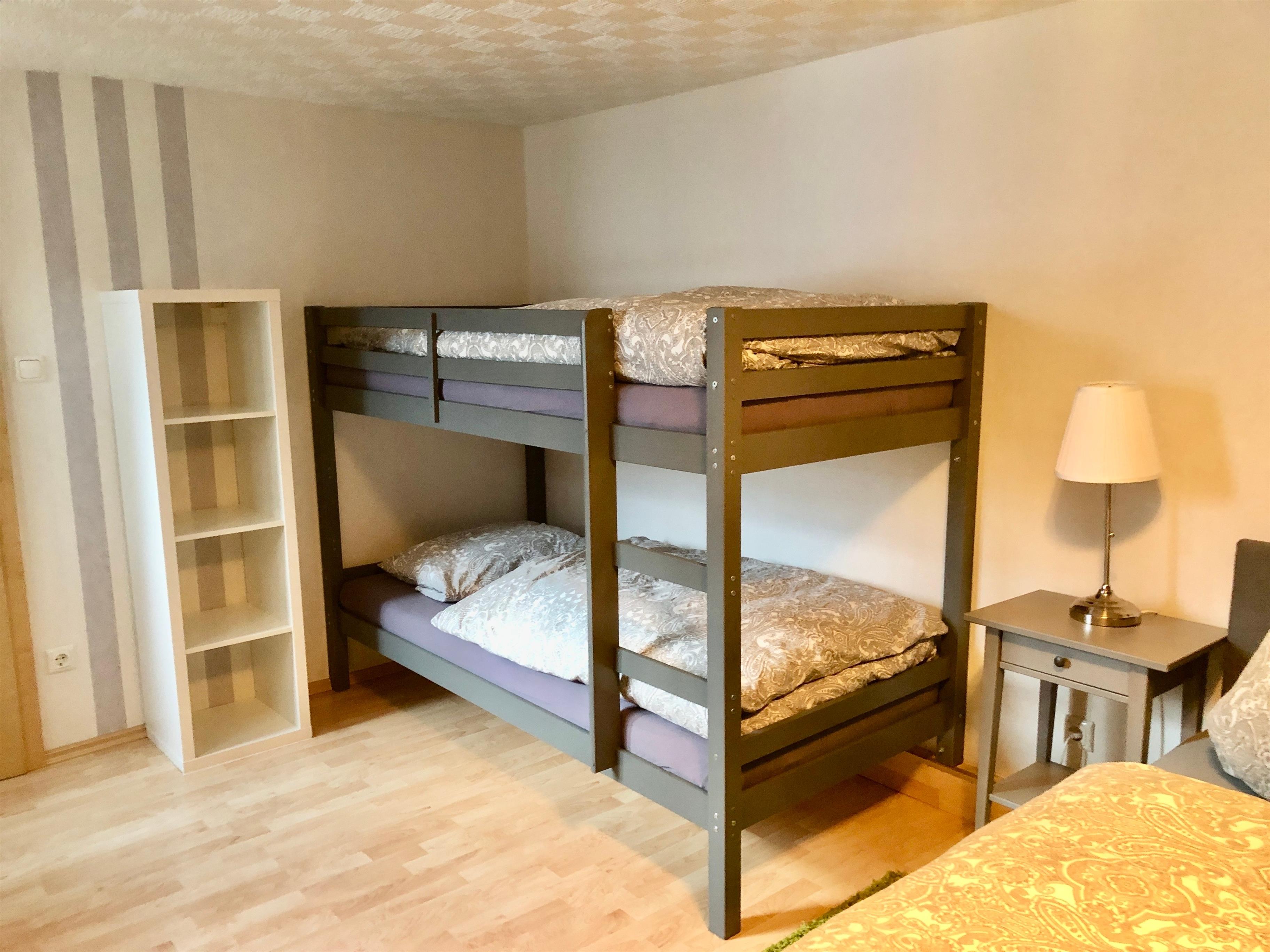 Die Ferienwohnung hat ein Wohnzimmer, eine komplett ausgestattete Küche, großes Badezimmer mit Dusche und Wanne, separates WC, 1 Schlafzimmer mit Doppelbett und Etagenbett für bis zu 4 Personen, 1 Schlafzimmer mit Doppelbett, Nichtraucherwohnung