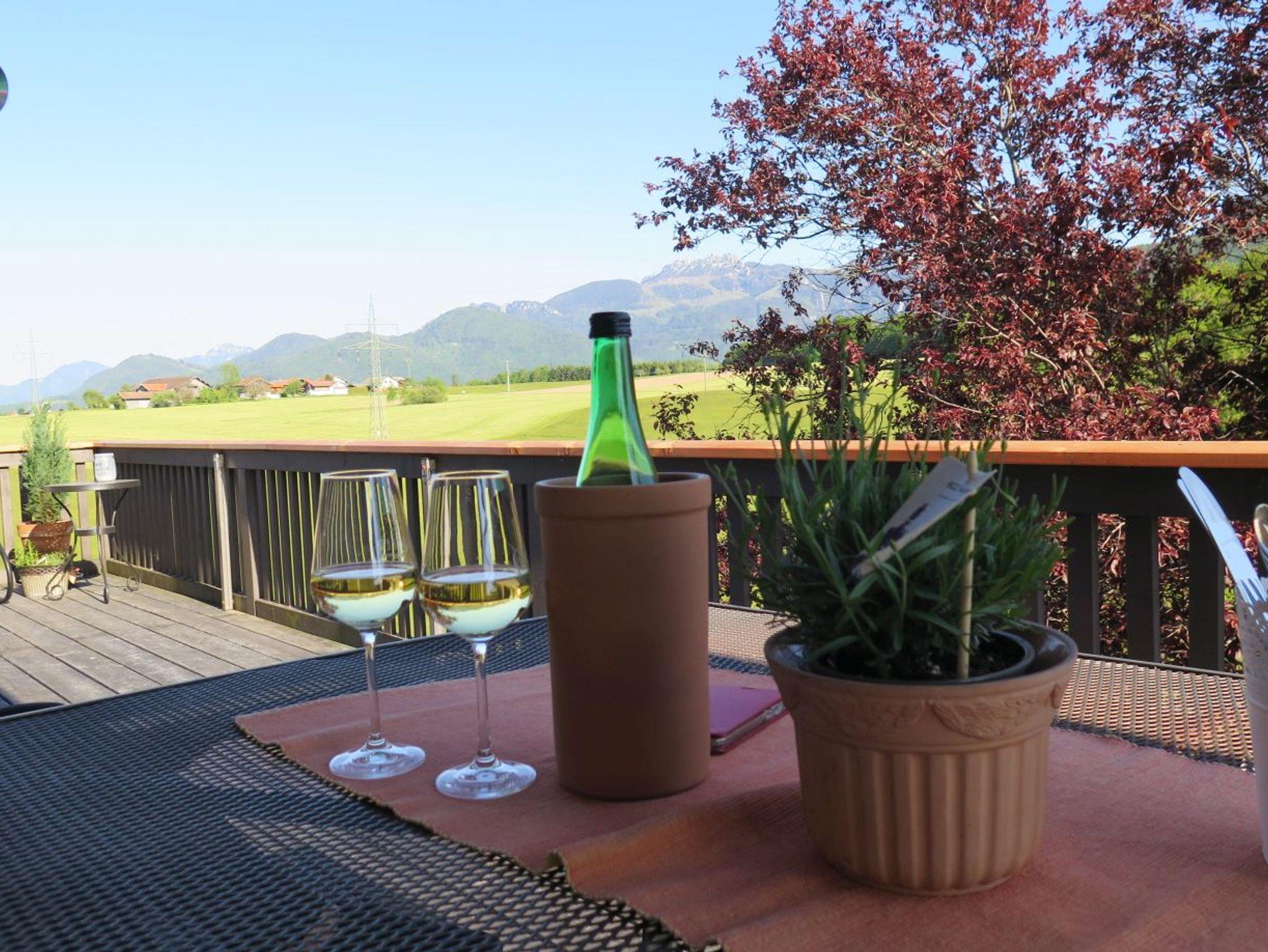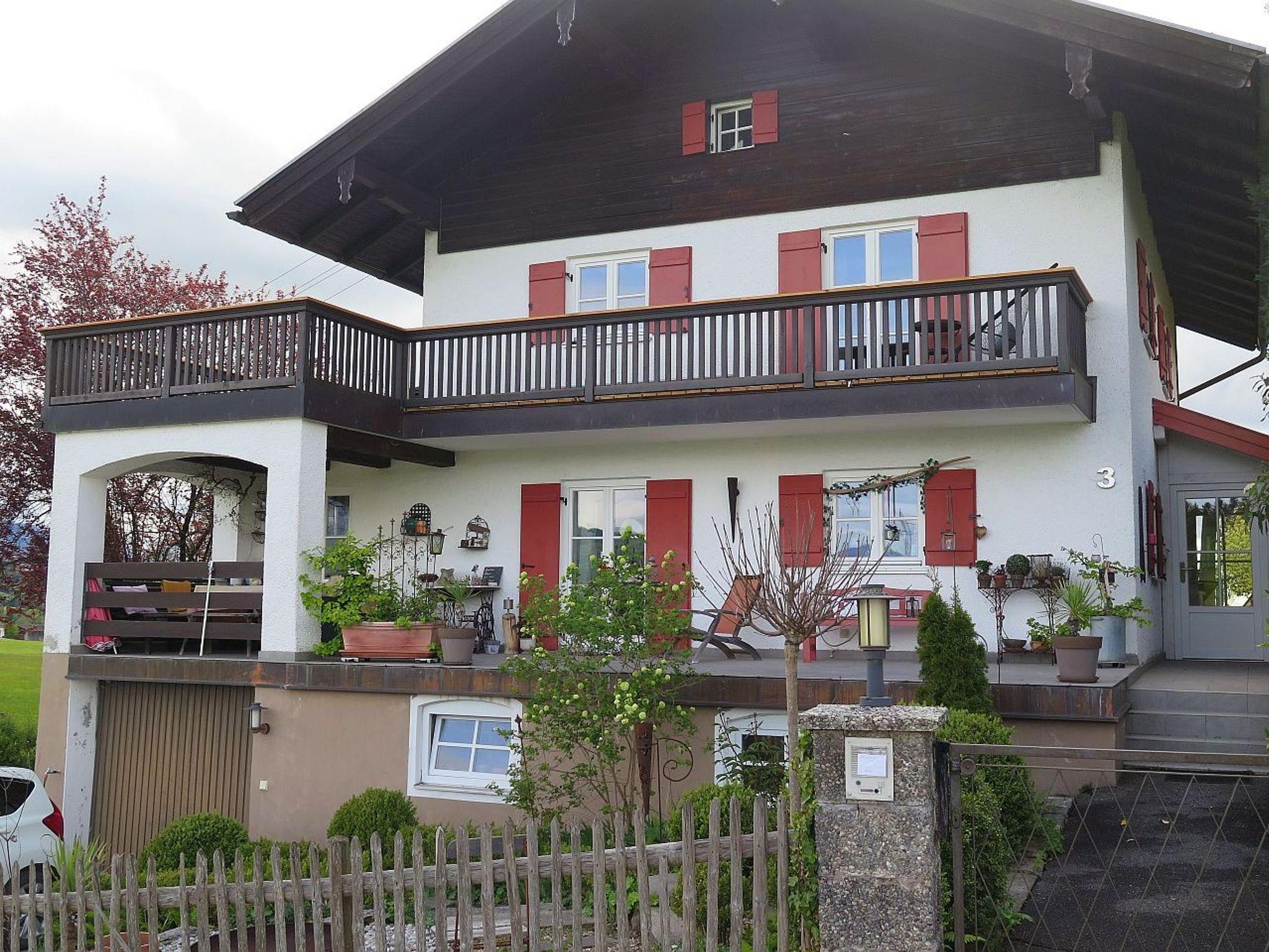 Neue Ferienwohnung, 65 qm, im Obergeschoss eines Einfamilienhauses mit großem Ost- und Südbalkon mit rundum schönster Aussicht, ruhige, sonnige Hanglage im Ortsteil Stockach, nur zehn Gehminuten von Frasdorf entfernt. Genießen Sie den freien Blick auf die ganze Chiemgauer Bergkette. Die Ferienwohnung ist ein idealer Ausgangspunkt für Ausflüge. Wandern Sie auf die Berge direkt vor der Haustüre oder fahren Sie mit einer der nahen Bergbahnen auf Kampenwand, Hochries oder Wendelstein. Herrliche Aussichten auf das Voralpenland und auf viele Berggipfel bis zum Großglockner sind bei gutem Wetter garantiert. Der nahe Chiemsee mit Schloss Herrenchiemsee und der idyllischen Fraueninsel, aber auch München, Salzburg, Rosenheim, Kufstein und Berchtesgaden mit Königsee laden zum Erkunden ein und sind von Frasdorf aus bestens erreichbar. Zahlreiche sportliche Aktivitäten und kulturelle Angebote wie Baden, Kajakfahren, Surfen, Segeln, Golf, Paragliding, Klettern (Hochseilgarten), Minigolf, sowie Museen, Konzerte, Dorf- und Seefeste bietet die nahe Region.