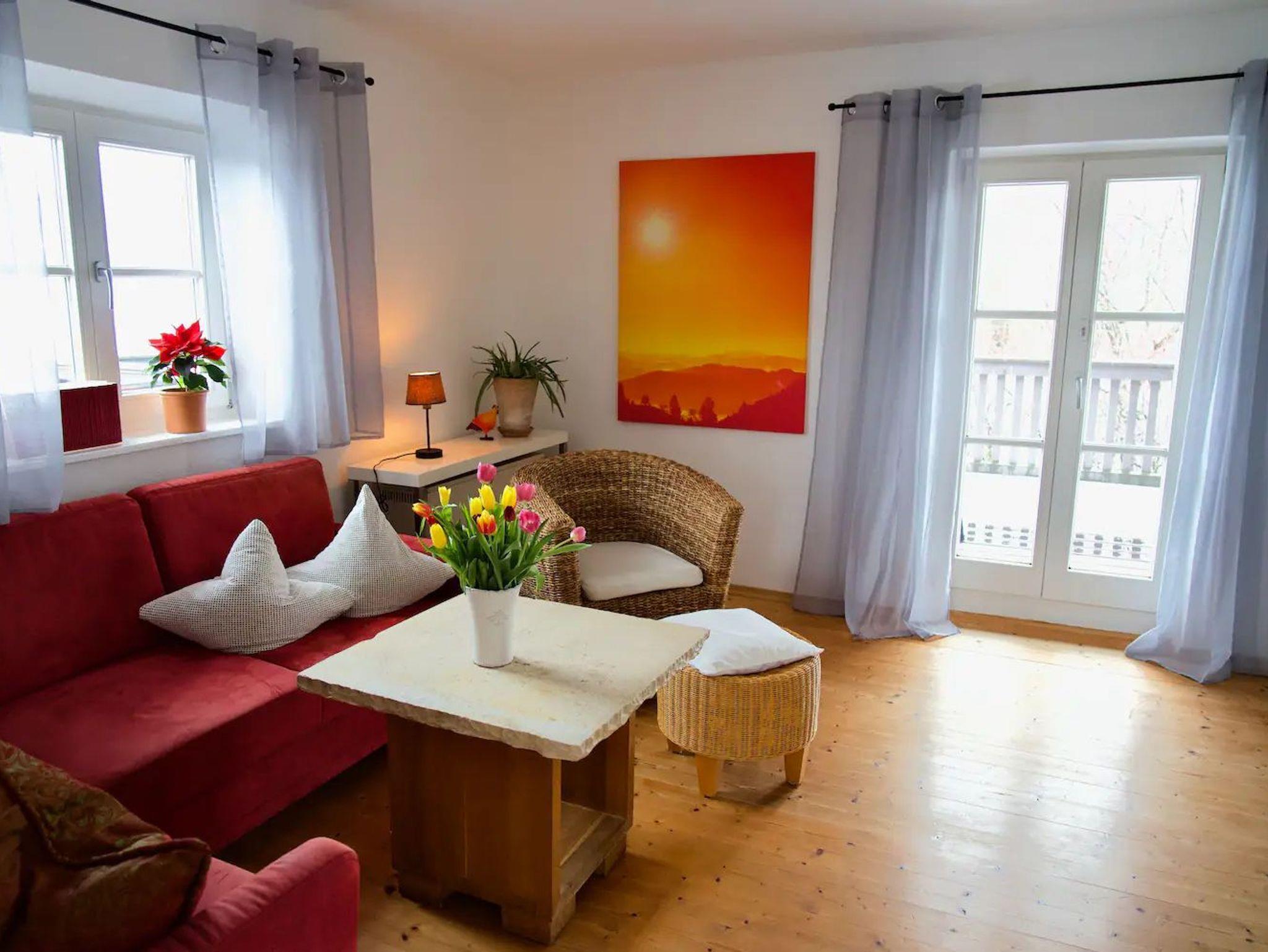 Neu renovierte Ferienwohnung mit 65 m² für 2 Personen in ruhiger, schönster freier Sonnenlage. Ein großzügiger Balkon mit 50qm bietet einen wunderbaren Bergblick und lädt zum Erholen und Entspannen ein. Die Ferienwohnung verfügt über ein gemütliches Wohnzimmer mit Flachbild-TV, ein Schlafzimmer mit großem Doppelbett, eine gut ausgestattete Küche mit Essplatz, Bad mit Badewanne und WC. Die Wohnung ist mit Holzböden ausgestattet. Handtücher, Bettwäsche und kostenloses WLAN inklusive.