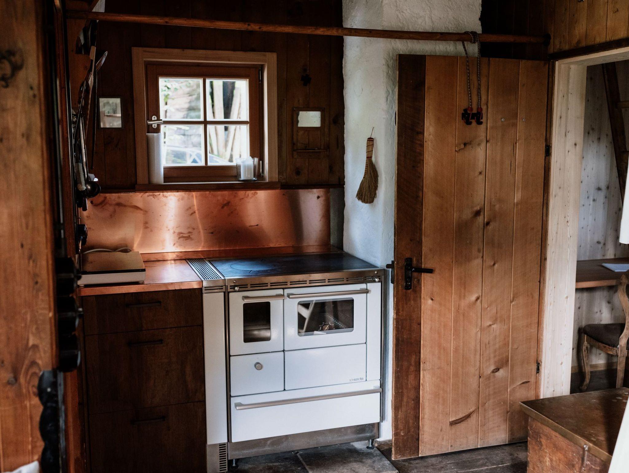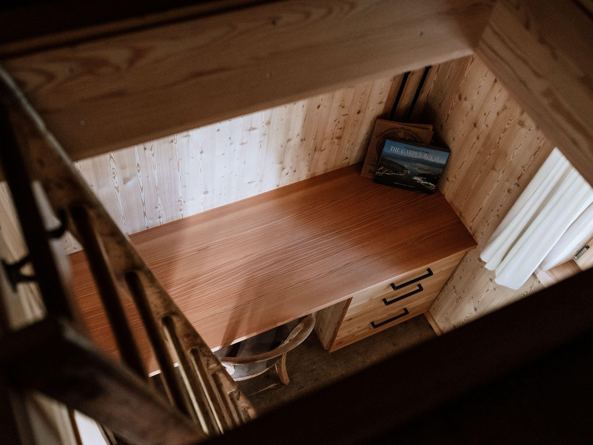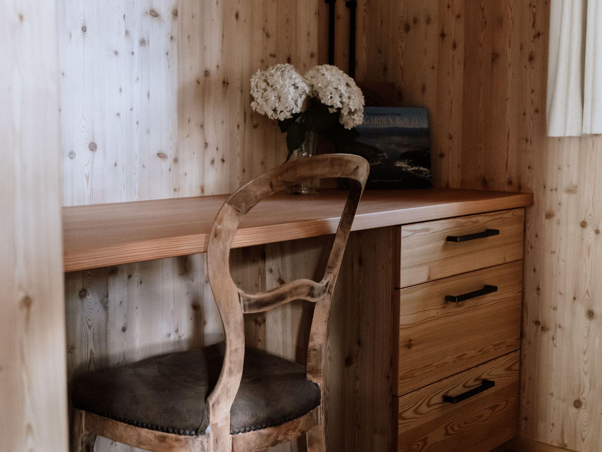 2022 renovierte Hütte, gut ausgestattete Wohnküche, Induktionskochfeld, Kühlschrank, Bad mit Dusche und Föhn, Büro mit W-LAN, 2 Schlafzimmer mit Doppelbett über Leiter zugänglich, Garten, Sonnenterrasse, Sonnenliegen, Sonnenschirm und Grill. Die Hütte wird nur mit dem Holzofen beheizt.