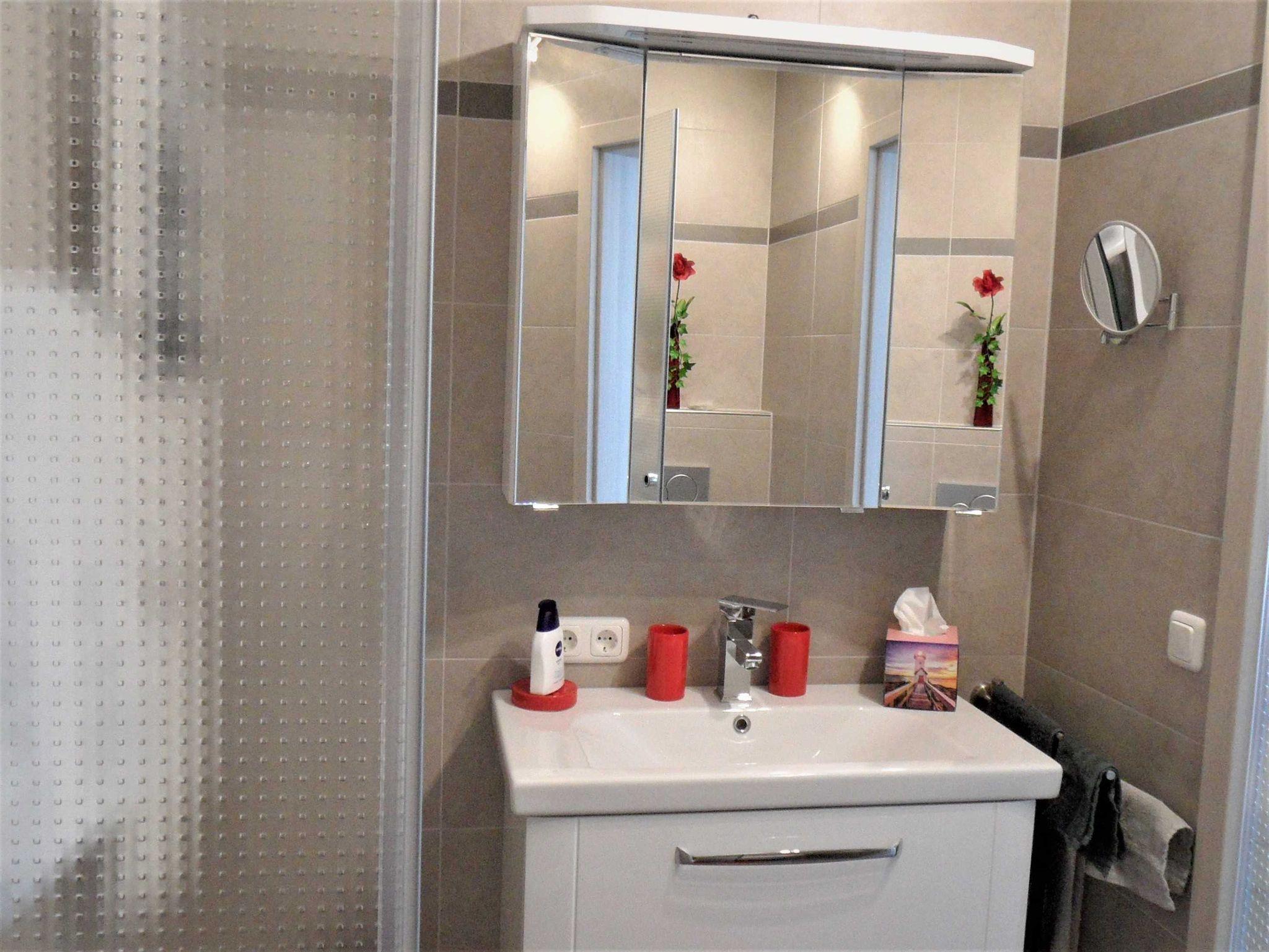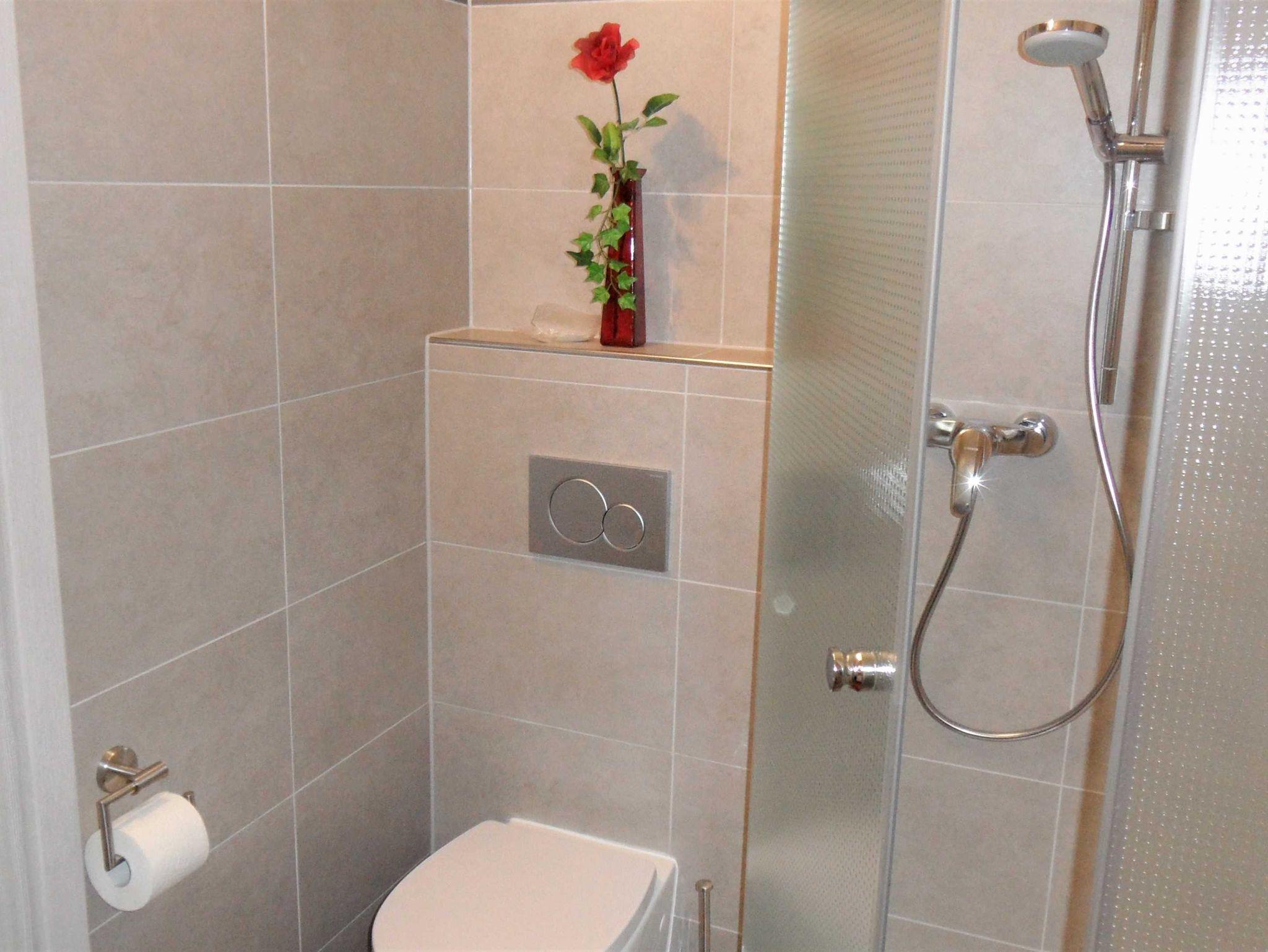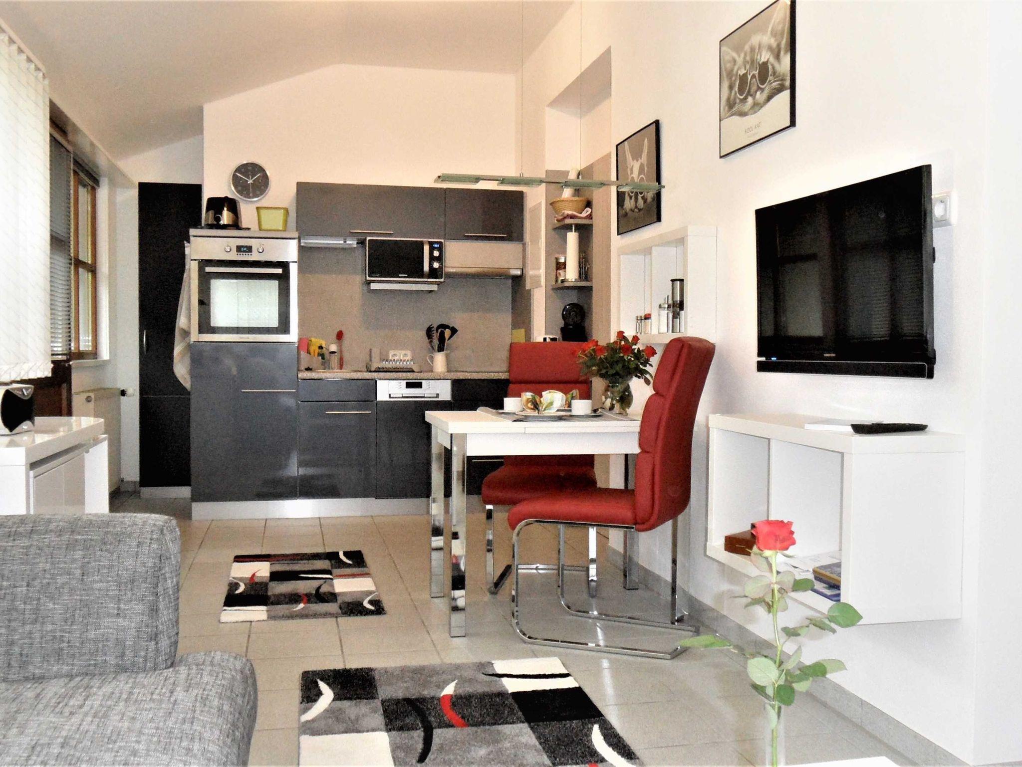 ebenerdige,komfortable, moderne Ferienwohnung mit Küchenzeile, Bad, kombiniertem Wohn/Schlafbereich ( Boxspringbett) und überdachter Terrasse; eigener PKW-Stellplatz vor separatem Ferienwohnungseingang; abschließbare Fahrradgarage mit E-Bike Ladestation; E-Tankstelle ( Wallbox); kostenlos bereitgestellte Bettwäsche und Handtücher