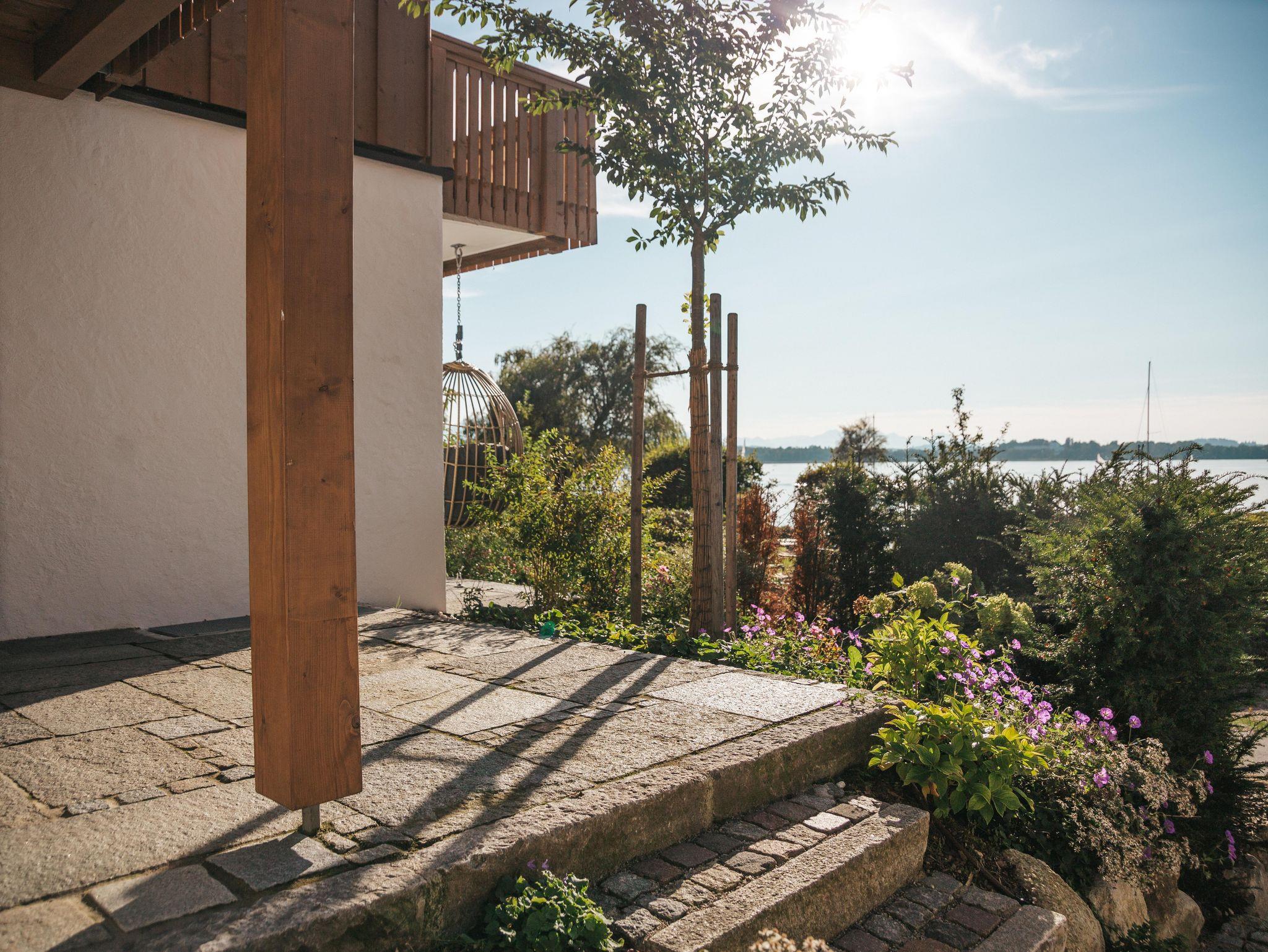 Das malerische Haus auf der Fraueninsel im Chiemsee hat von allen Suiten einen wunderschönen Blick auf den See in Richtung Sonnenuntergang mit der Herreninsel und der dahinter liegenden Bergkette. Die Gäste der 4 Suiten des HOIXL Gütls haben Zugang zu dem direkt vor dem Gütl liegenden privaten Seegrundstück mit eigenem Steg, Badeleiter und Liegen sowie zu der exklusiven Gemeinschaftsauna im Bootshaus.