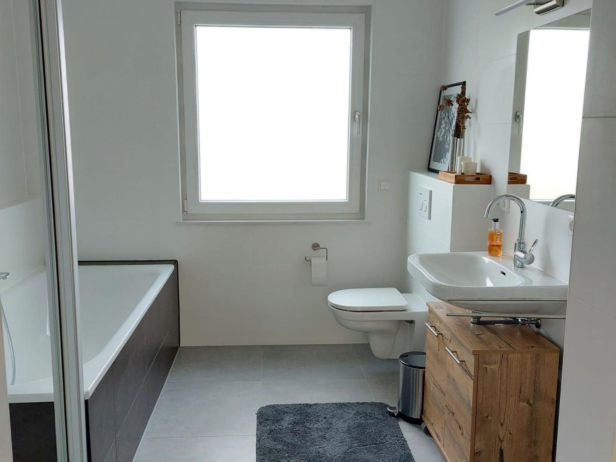 Die hellen Badezimmer bestechen durch eine moderne Ausstattung mit Dusche und/oder Badewanne. Praktisch ist auch der integrierte Hauswirtschaftsraum mit Waschmaschine, Staubsauger, etc. . Bettwäsche und Handtücher stellen wir Ihnen zur Verfügung.