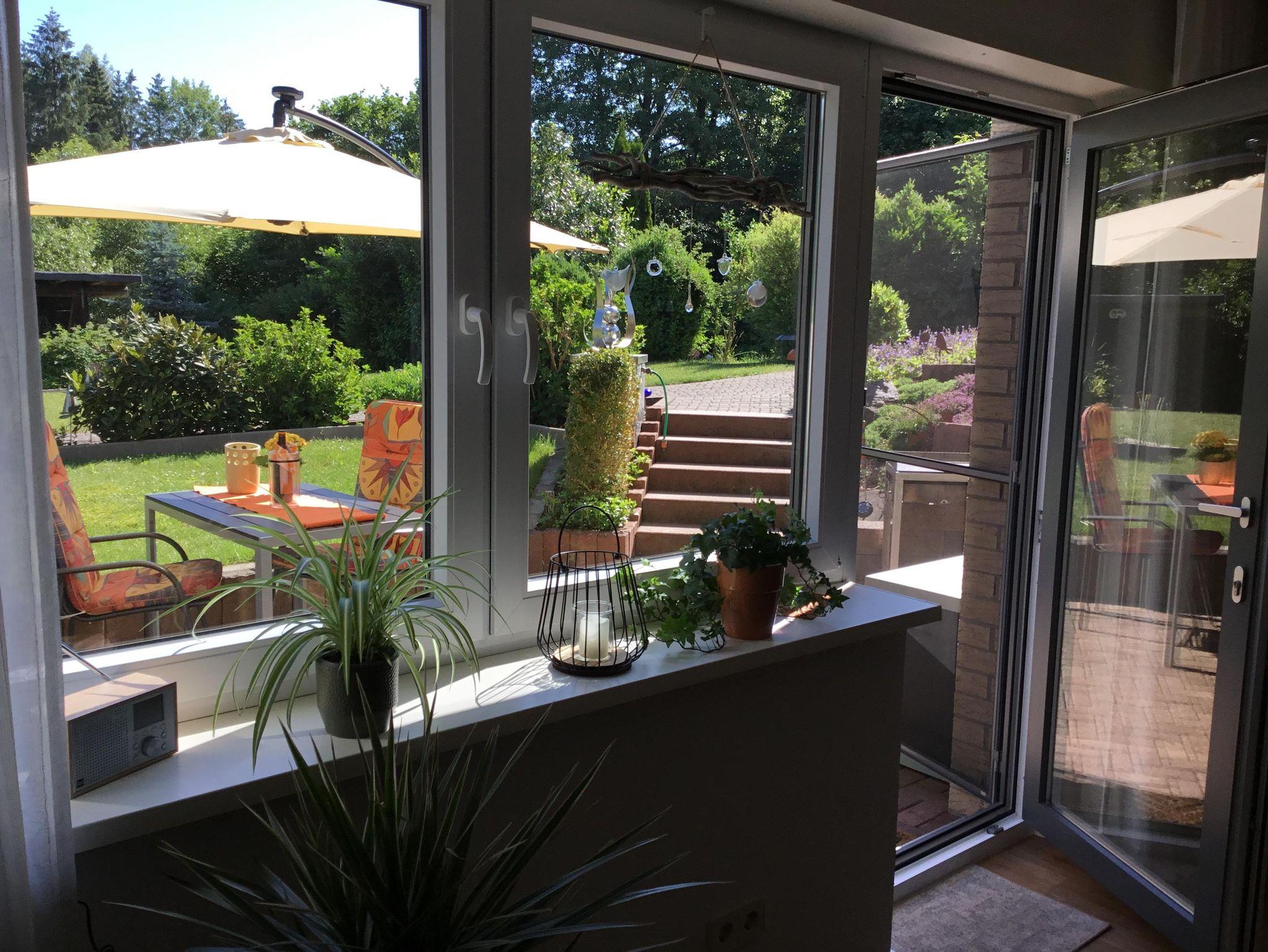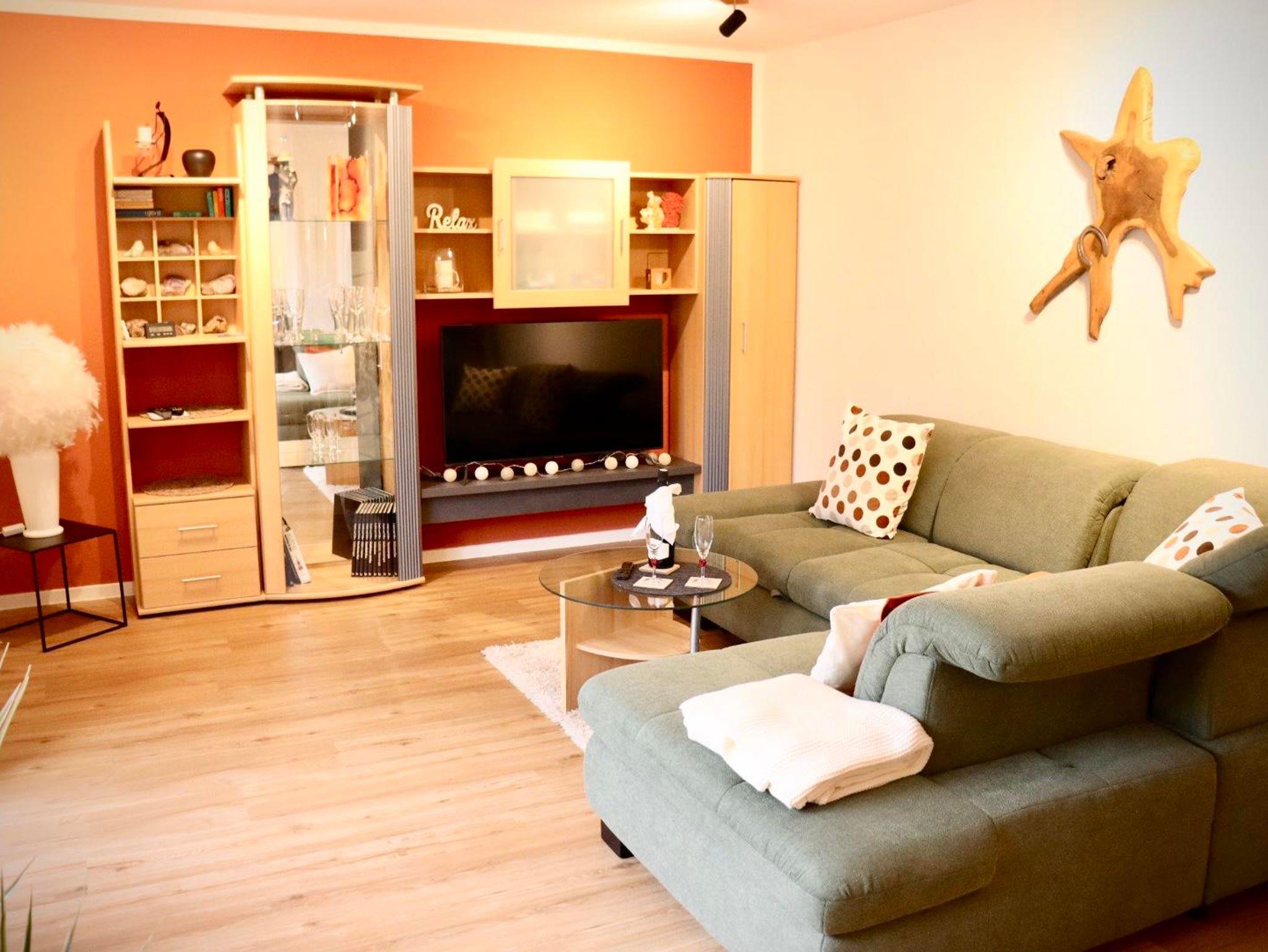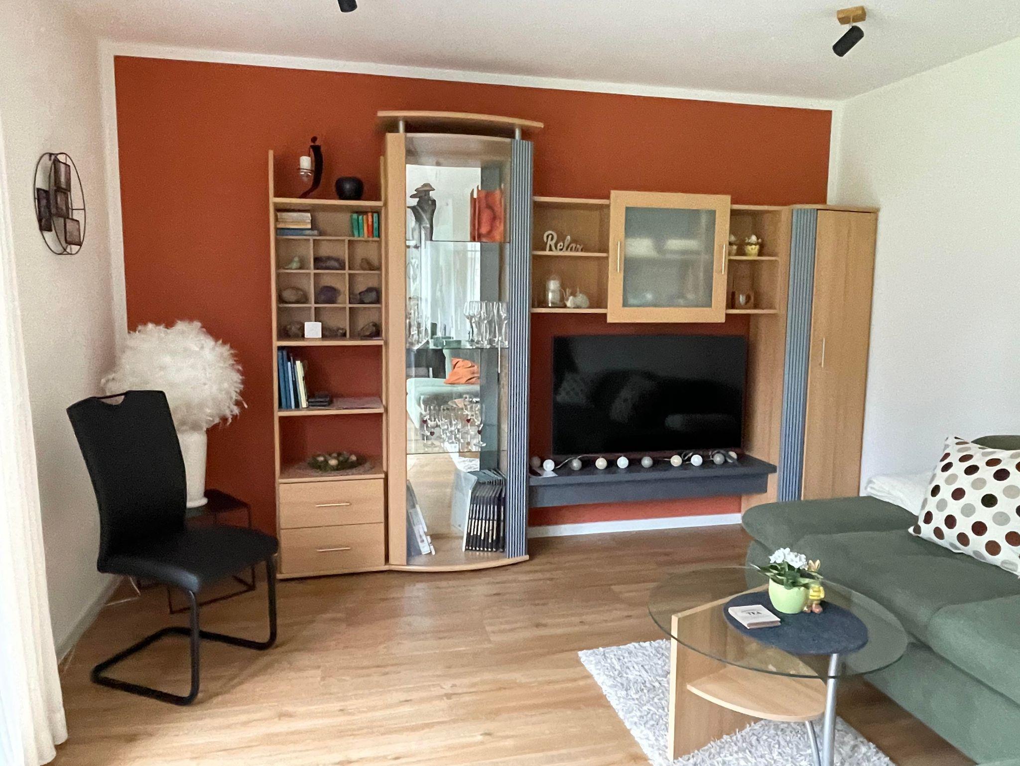 Die Nichtraucher Ferienwohnung bietet auf 68 Quadratmetern Platz für bis zu 2 Personen. Die helle und moderne Ferienwohnung besteht aus einem großen Wohnraum mit offener Küche und Essplatz. Der Wohnzimmerteil ist ausgestattet mit einer großen und gemütlichen Couch, die schnell zum Schlafpatz für eine weitere Person auszuziehen ist. Zusätzliche Decke, Kissen, Bezüge je nach Belegung vorhanden. Eine Schrankwand einhält neben einem Smart-TV eine umfangreiche Büchersammlung und Spiele. Der Essbereich ist mit einem ausziehbaren Tisch und entsprechender Anzahl von Stühlen ausgestattet. Ein Kinderhochstuhl ist zustellbar. In der L-förmigen Küchenzeile sind alle erforderlichen Elektrogeräte zum Kochen und Backen vorhanden: Cerankochfeld, Backofen, Dunstabzugshaube, Spülmaschine, Kühlschrank mit Gefrierfach. Kaffee kann mit einer Filter- oder Padmaschine bereitet werden. Wasserkocher, Toaster, Mikrowelle mit Grillfunktion vervollständigen die Ausstattung. Geschirr, Besteck, Gläser, Töpfe und sonstige Küchenutensilien sind in ausreichender Menge vorhanden. Basisgewürze, Essig, Öl. Ausziehbarer Mülleimer mit Mülltrennung, Spülmittel, Spülmaschinentabs, Spülbürste, Spüllappen, Geschirrtücher usw. sind ebenso wie Handfeger und kabelloser Staubsauger vorhanden. Für die Reinigung zwischendurch steht ein Wischmop-Set bereit. Im Schlafzimmer lädt ein gemütliches Doppelbett 1,80m mit durchgehender Matratze und Topper zum erholsamen Schlaf ein. Duo-Bettdecken, die sich der Jahreszeit anpassen lassen, je zwei Kopfkissen 80/80 bzw. 40/40cm. Betten sind bezogen, Wolldecken und waschbare Vorleger vorh. Beidseits des Bettes gibt es eine Ablage mit Leselampe. Der Schiebetüren-Schrank ist 1,80m breit und ist mit Kleider- und Hosenbügeln ebenso mit zwei Bademänteln bestückt. Ein Schranktresor ist zur Aufbewahrung von Wertgegenständen eingebaut. Kofferablage, Kleiderständer, Ganzkörperspiegel vervollständigen die Ausstattung. An der Wand gegenüber dem Bett ist ein weiteres Smart-TV angebracht. Im Flur befindet sich eine Garderobe mit Schuhabstellwanne, Schuhlöffel, Spiegel und Sitz-möglichkeit. Das Bad ist ausgestattet mit Toilette, flacher Dusche, die eine Glasabtrennung hat, ein Waschtisch mit Schubladen, beleuchteter Spiegel, kleine Wandschränke für Utensilien, Kosmetikeimer, Fön, Vergrößerungsspiegel. Hand- und Duschtücher liegen bereit. Für die Wäsche zwischendurch stehen Waschmaschine und Wäschetrockner zur Verfügung. Waschmittel, Flüssigseife, Toilettenpapier incl. Alle Räume haben neue Fenster mit Rollläden und sind mit einem pflegeleichten Holz-Designbelag auf Fußbodenheizung versehen. Die Wände sind verputzt und hell gestrichen. Gardinen und stimmungsvolle Beleuchtung sorgen für behagliches Ambiente. Die Terrasse ist ca. 12qm groß und ist mit Tisch und Gartenstühlen bestückt. In einer Box sind Textilauflagen untergebracht. Auf der Rasenfläche sind Liegestühle aufgestellt. Ein Edelstahlgrill und Buchenholz stehen für einen Grillabend bereit. Ein Carport neben dem Haus ist für die Nutzer der Ferienwohnung reserviert. Fahrräder können in einem von außen begehbaren Abstellraum sicher untergestellt werden. Der Zugang ist beleuchtet.
