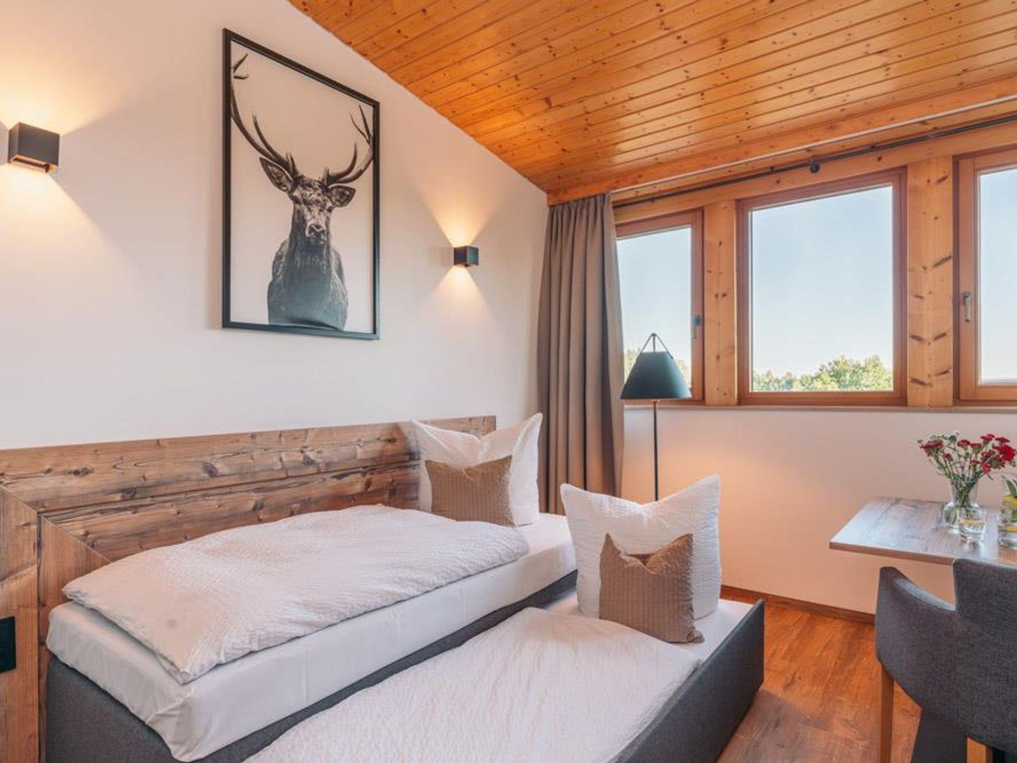 Unsere Familienzimmer im modernen Landhausstil bieten Ihnen einen herrlichen Blick ins Stockerbachtal auf unser wunderschönes Grüntal.