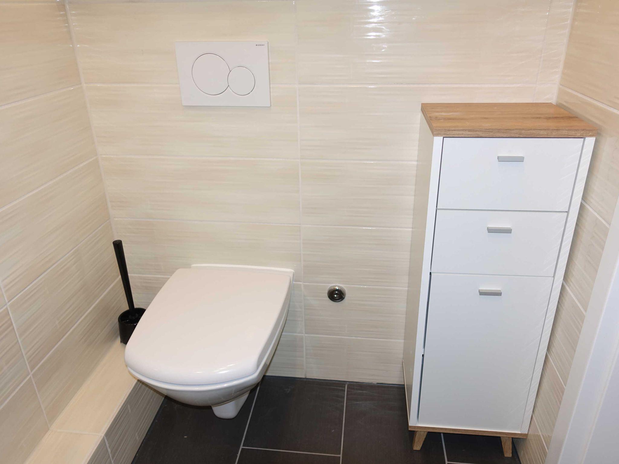 Das kleine aber gemütliche Badezimmer verfügt über Dusche, WC und Waschbecken, Toilettenpapier und ein Handtuchset stehen Ihnen selbstverständlich kostenlos zur Verfügung.