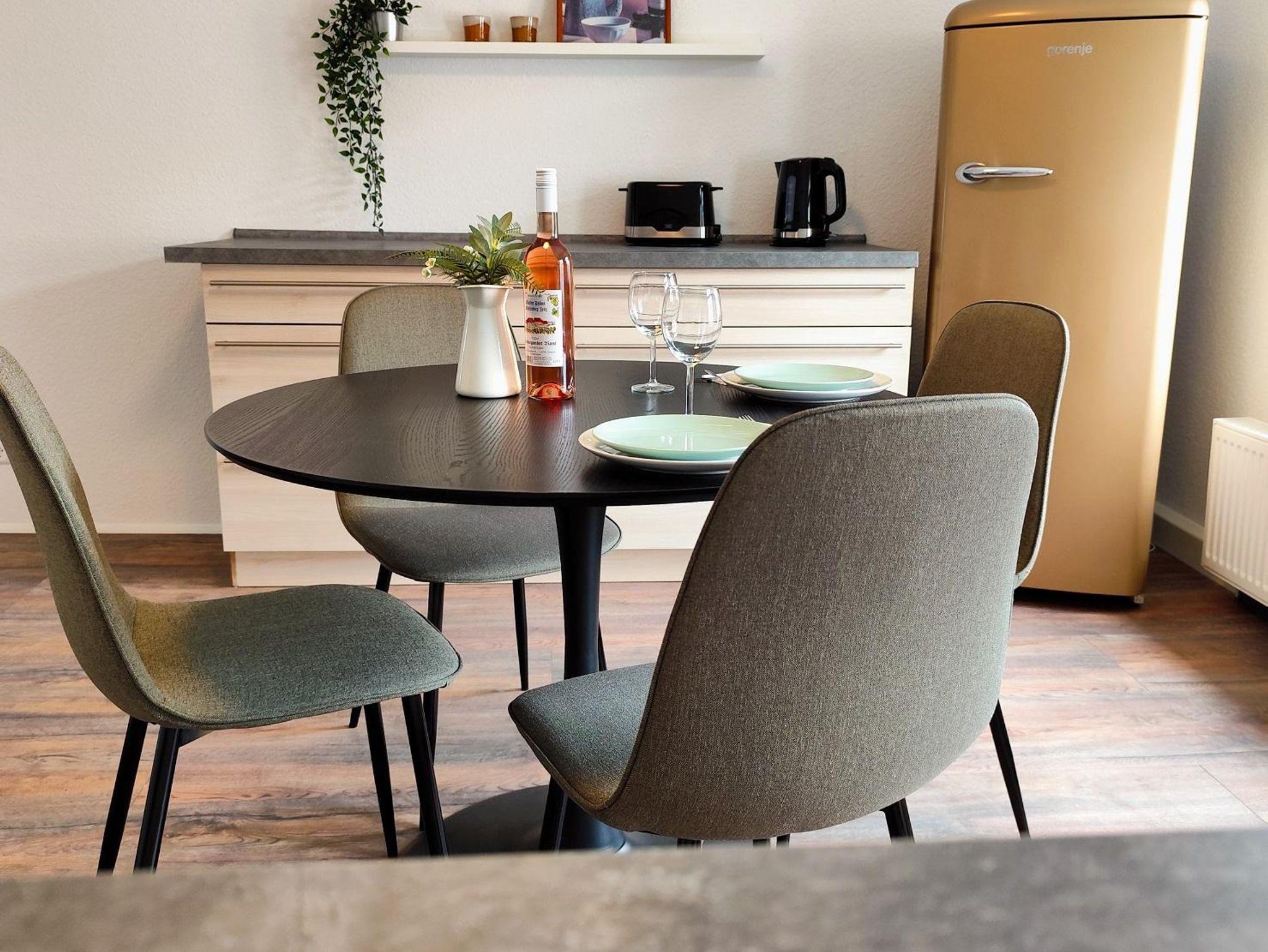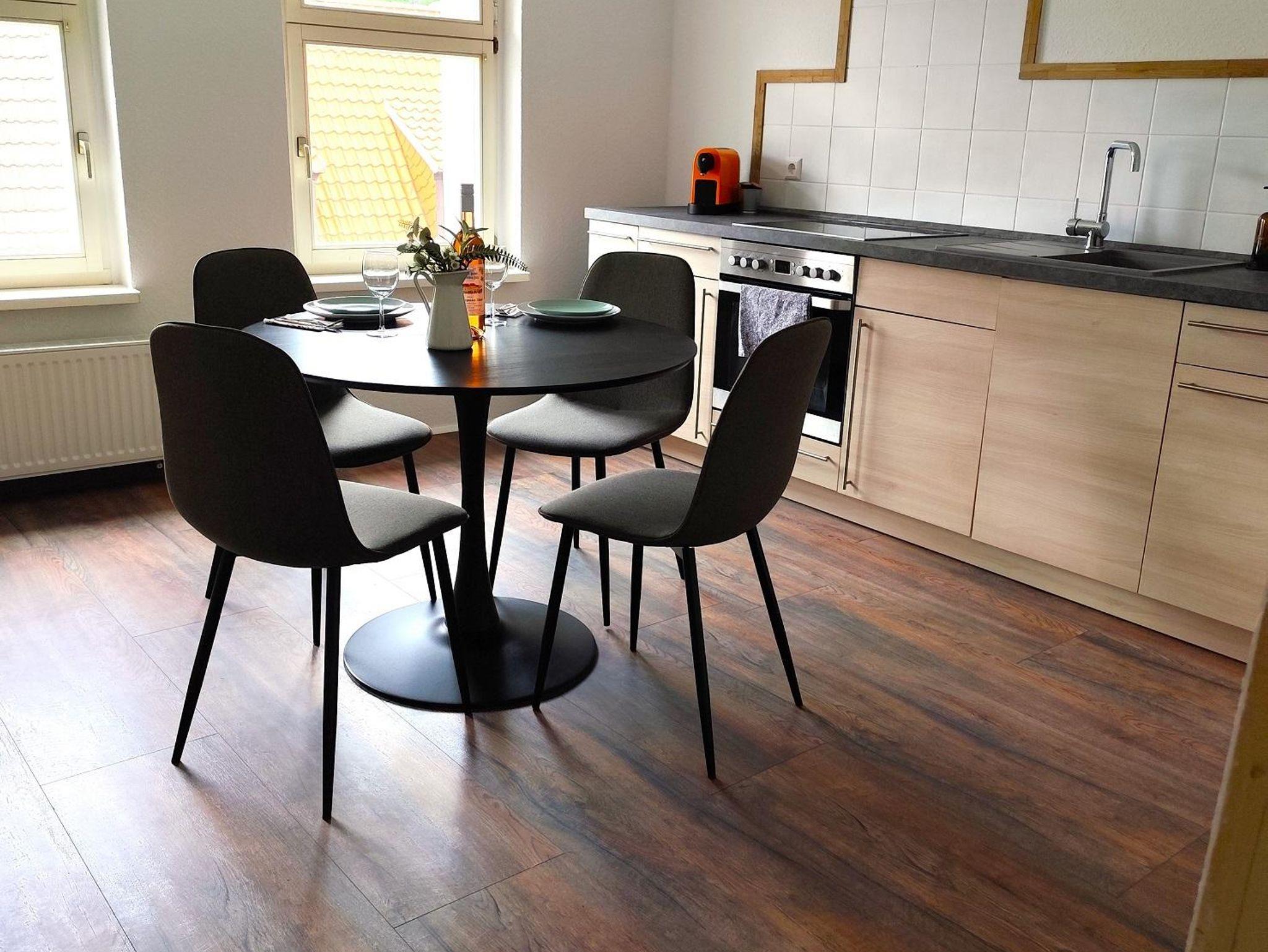 Die einladende und voll ausgestattete Küche ist das Herzstück der Wohnung. Hier erwartet Sie nicht nur modernste Ausstattung, sondern auch ausreichend Platz, um köstliche Mahlzeiten zuzubereiten. Der große Esstisch lädt dazu ein, gemeinsame Momente zu genießen, sei es beim Frühstück vor einem Tag voller Unternehmungen oder beim Abendessen nach einer Erkundungstour durch die malerische Umgebung.