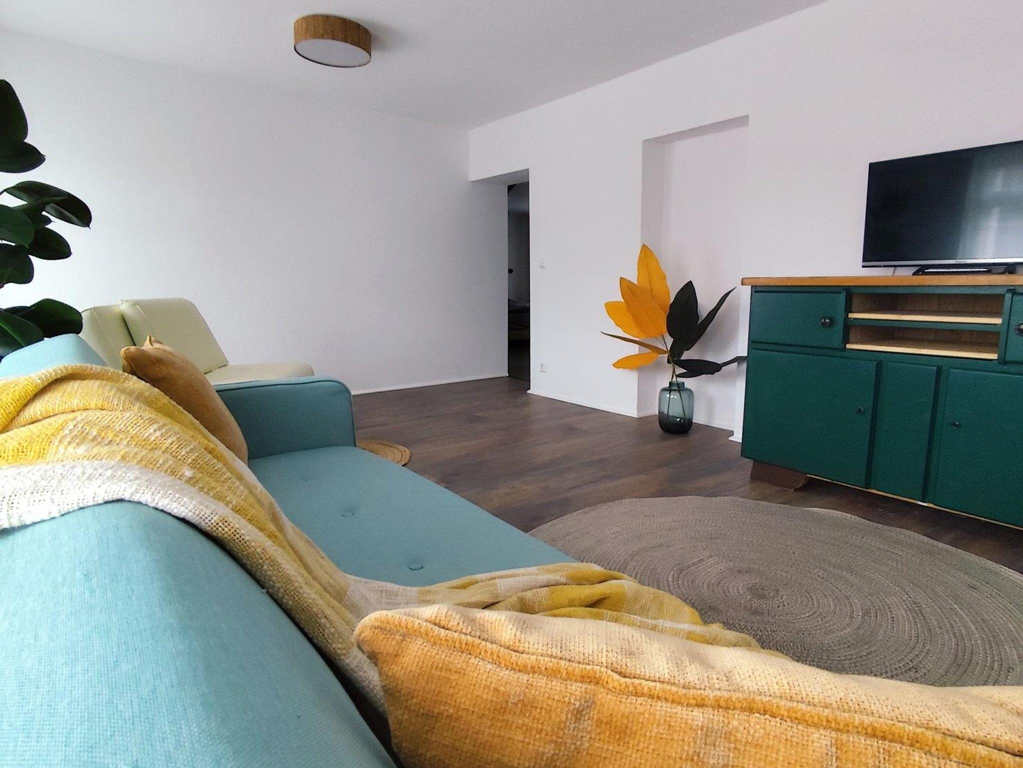 Im Wohnzimmer erwartet Sie eine behagliche Schlafcouch und ein Schlafsessel, die zusätzlichen Platz für Gäste bieten. Entspannen Sie sich hier bei einem gemütlichen Fernsehabend oder genießen Sie einfach die wohlige Atmosphäre dieses Raumes.