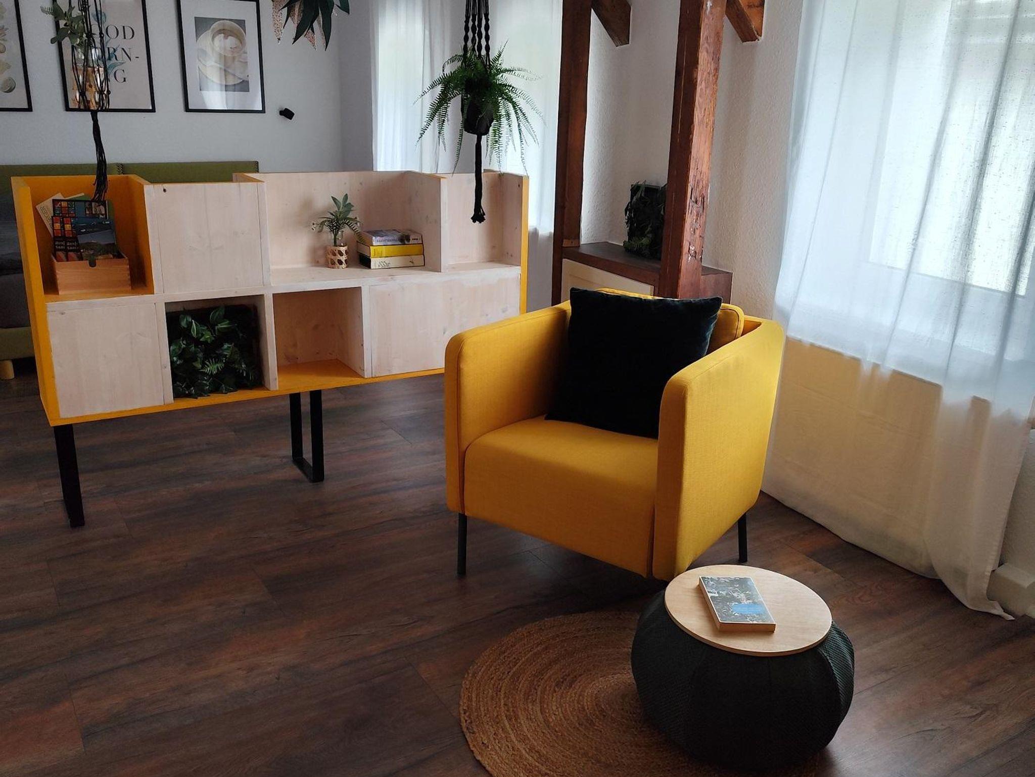 Direkt im Eingangsbereich haben wir für Sie eine gemütliche Leseecke eingerichtet. Hier können Sie erstmal ankommen, die Ruhe genießen, ein Buch lesen und vielleicht, ganz mit der Region verbunden, ein Gläschen Weißwein trinken.