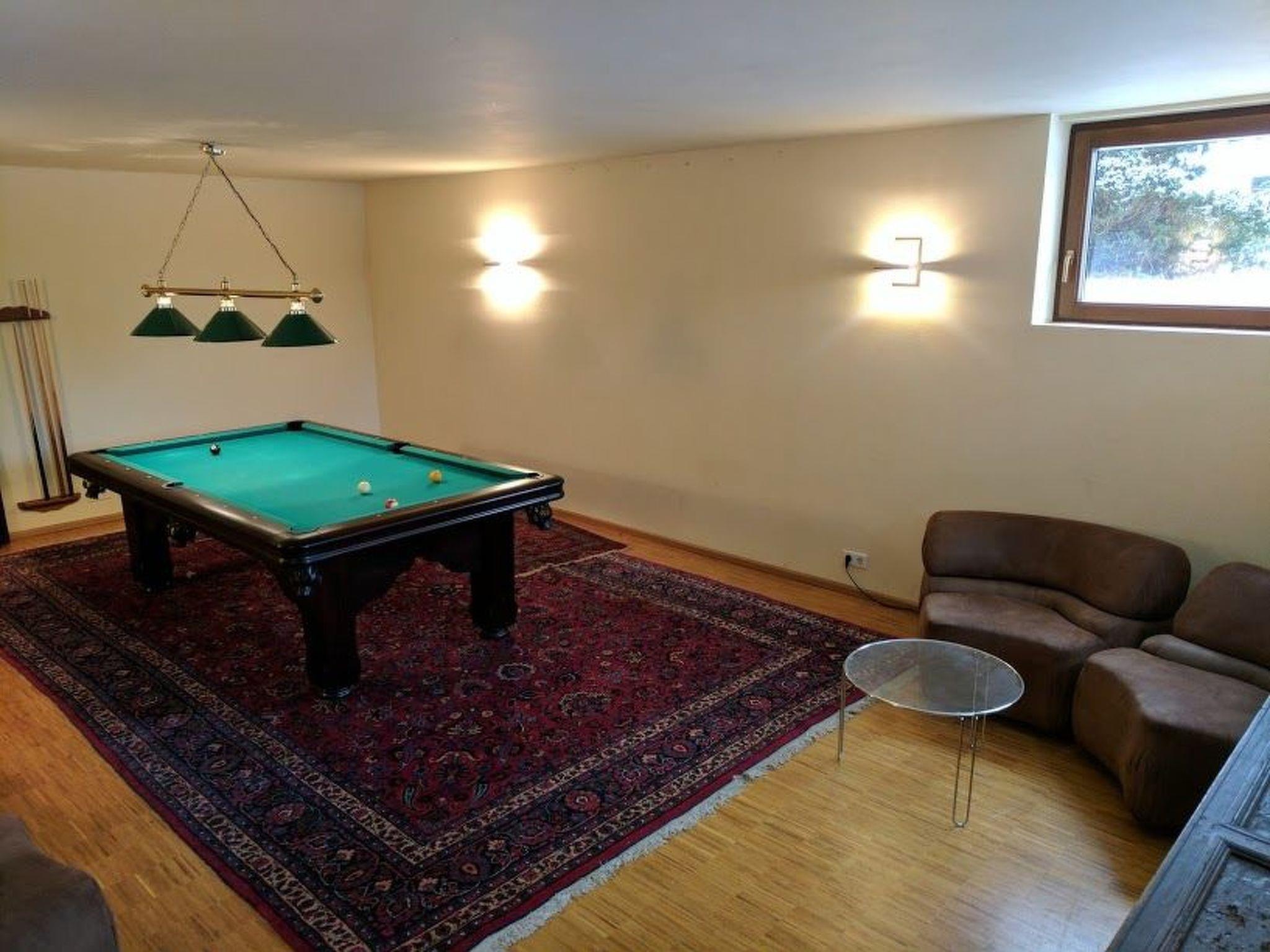 The property provides several bedrooms and beds, two bathrooms, a spacious and fully-equipped kitchen, an extensive living room with a fireplace, a room with a pool table, a sauna. The interor is of a high standard. There is also a self-contained apartment in the basement, which is included in the rental on agreement. It has a bedroom with a double bed and a single bed, a kitchen, a bathroom and its own entrance, with a connecting door to the main apartment.
