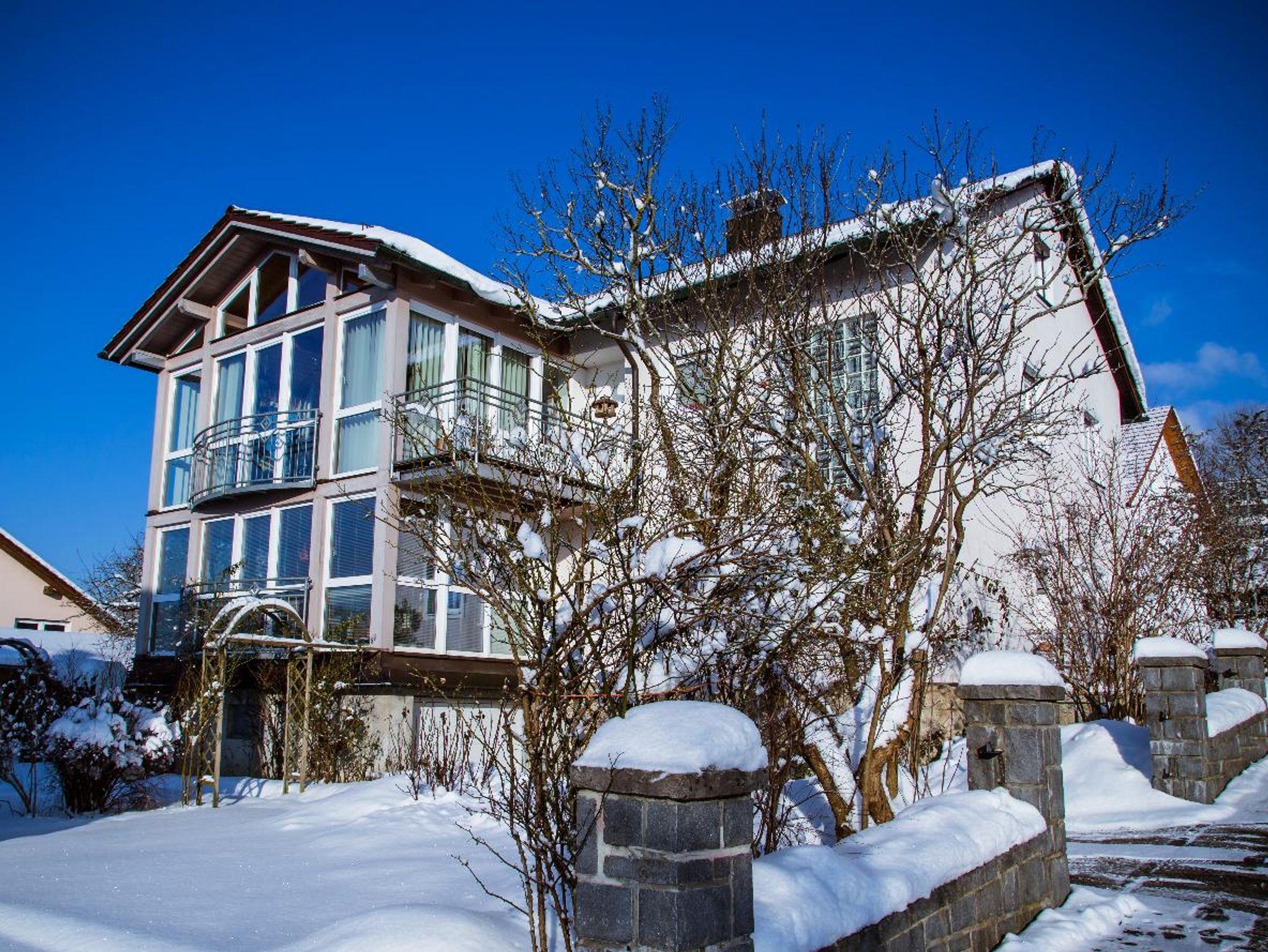 Gemütliche Ferienwohnung mit schönem Wintergarten, der zum Verweilen einlädt, mit Blick in den Blumengarten. Die komplett ausgestattete Küche mit Geschirrspüler, Kühlschrank mit Gefrierfach, Herd, Backoffen, Microwelle, Wasserkocher, Eierkocher, Toaster und Kaffeemaschine lässt keine Wünsche offen. Die Ferienwohnung verfügt über 1 Doppelzimmer mit Bett 2 x 2 m, ein Doppelzimmer mit Boxspringbett und ein Einzelzimmer mit 1,40 m Boxspringbett. Die Bettwäsche ist inclusive. Das geräumige Badezimmer mit grossem Spiegel, Badewanne und Dusche rundet das Gesamtbild ab. Zur Reinigung Ihrer Kleidung stehen eine Waschmaschine und Trockner zur Verfügung. Vor allem im Sommer können Sie entspannte Grillabende in unserem Garten verbringen. Bitte beachten Sie, dass keine Haustiere erlaubt sind. Das WLAN und den Parkplatz vor dem Haus können Sie kostenfrei nutzen.