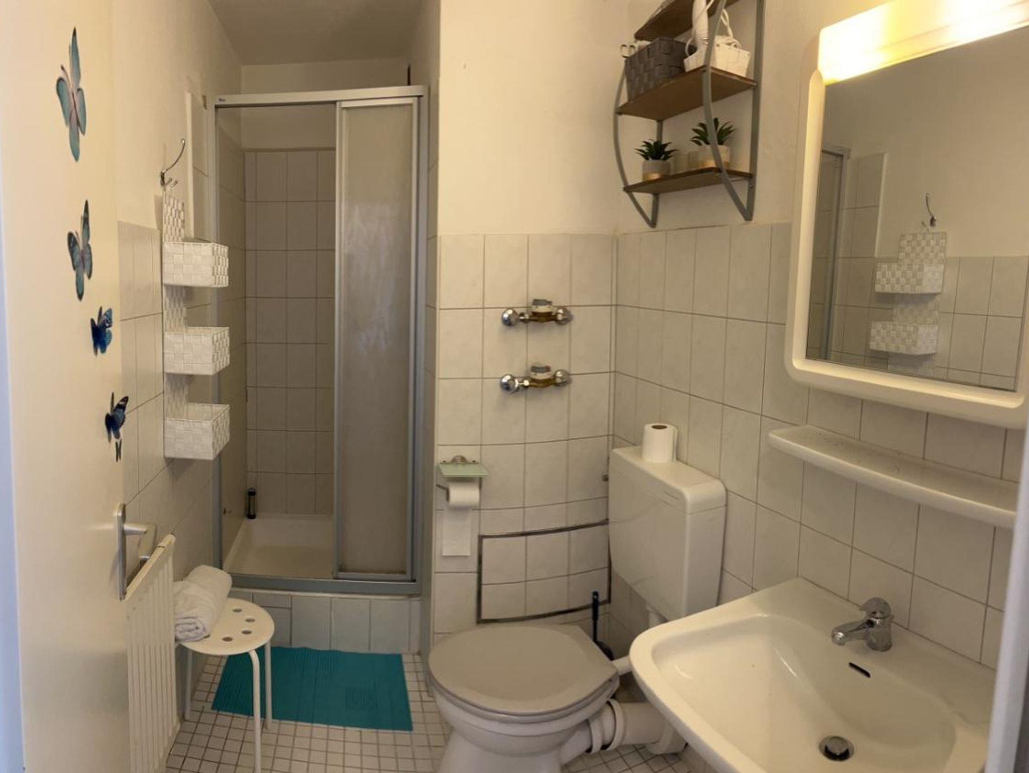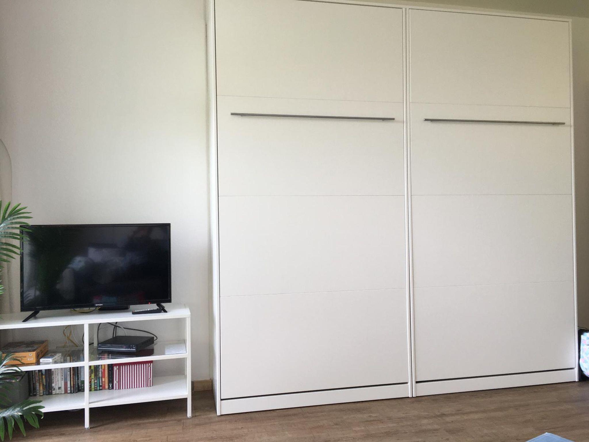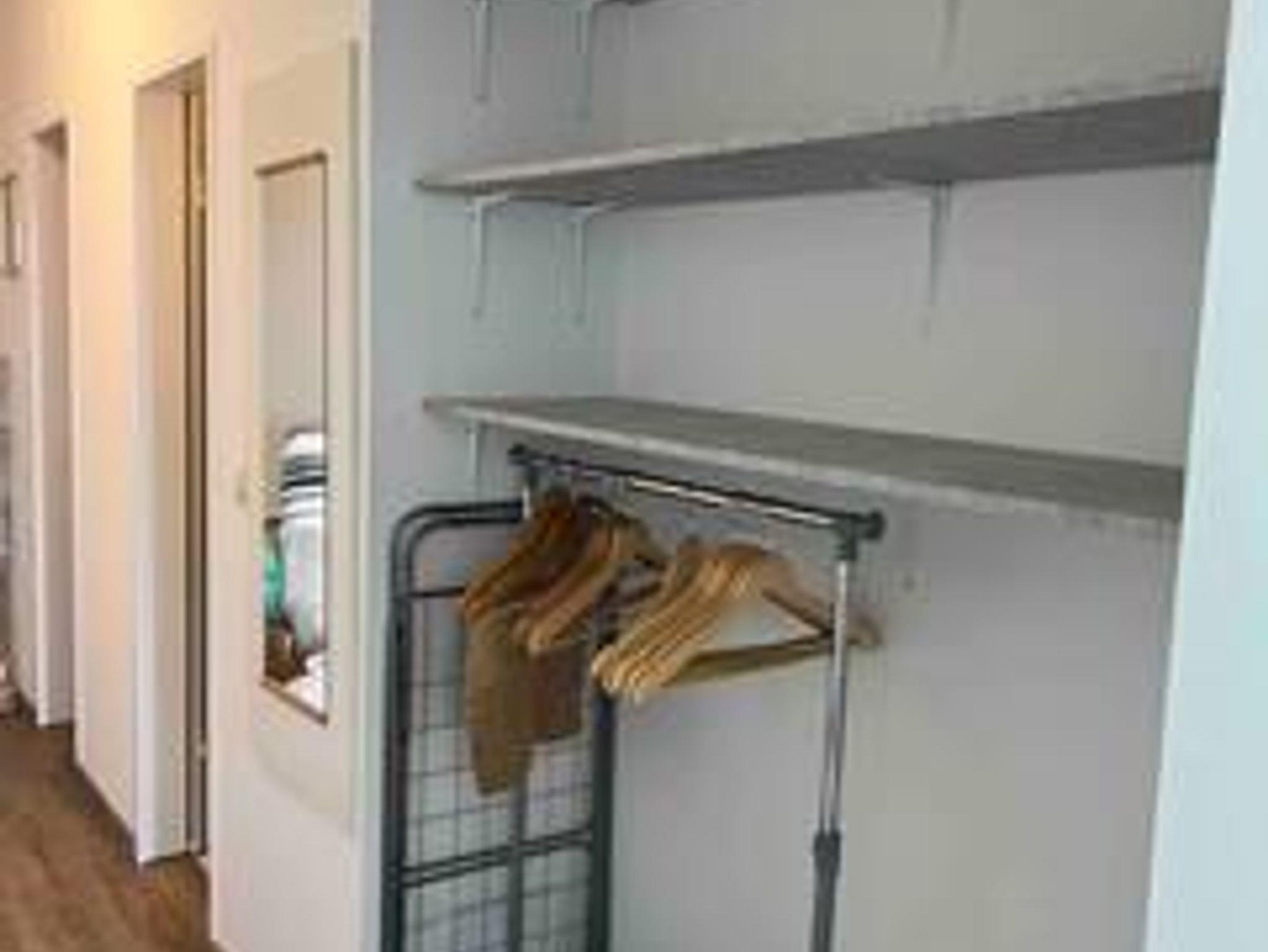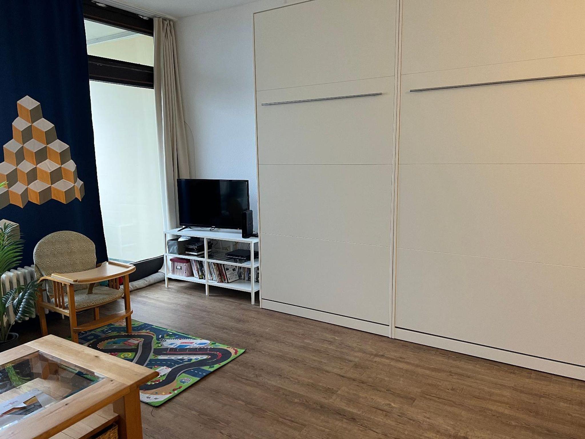 Im gleichen Gebäude finden Sie auch die etwas kleinere und günstigere Wohnung F123 mir 47qm, welche ein Stockbett im separaten Raum (ohne Fenster) und im Wohn-Schlafzimmer zwei Ausklapp-Schrank-Betten und ein Schlafsofa hat. Gerne können Sie auch eine Langzeitmiete mit Rabatt hierfür anfragen.