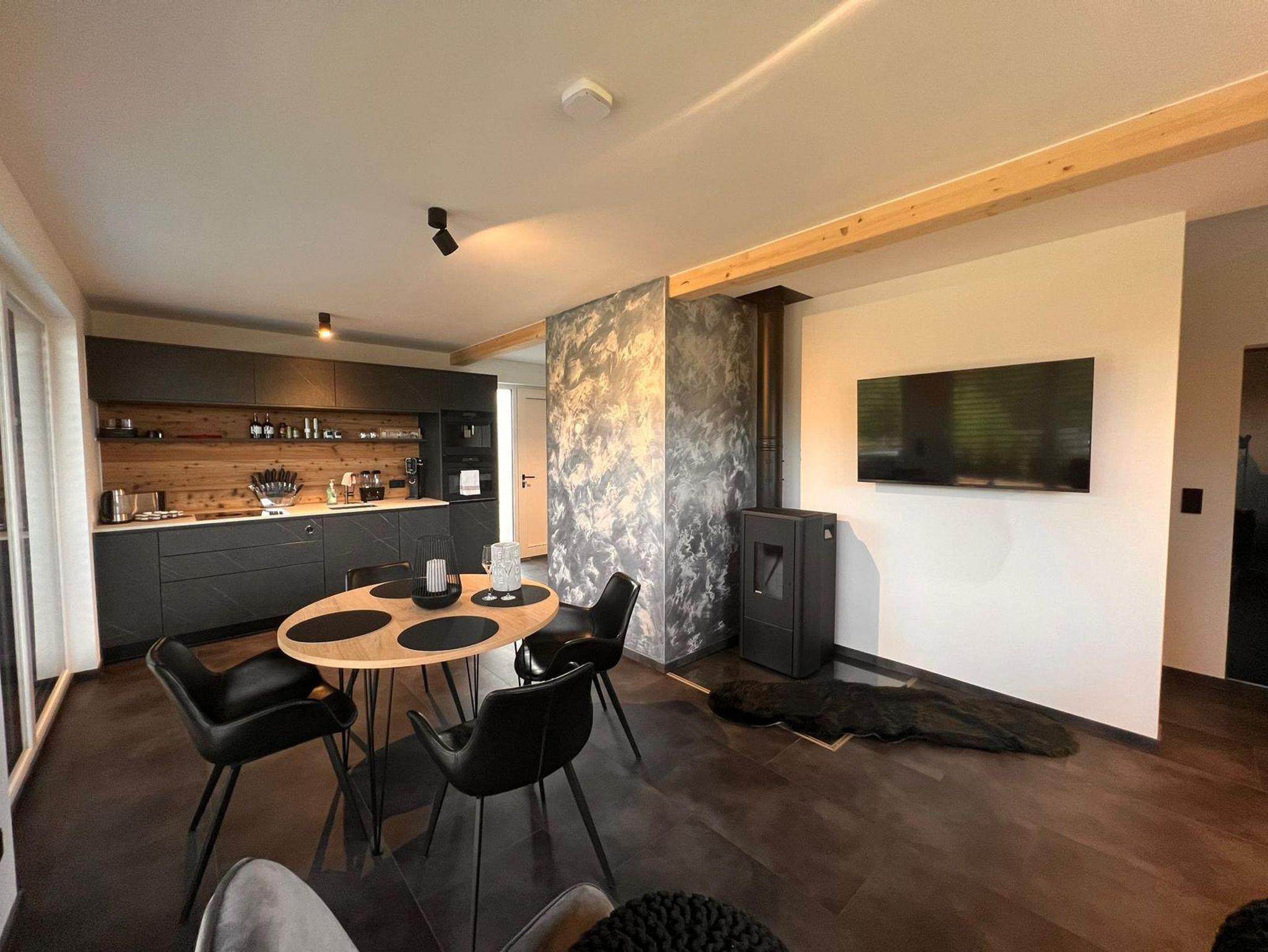 vorhanden. Ein Kaffeevollautomat, Weinkühlschrank, Wasserkocher, Toaster,