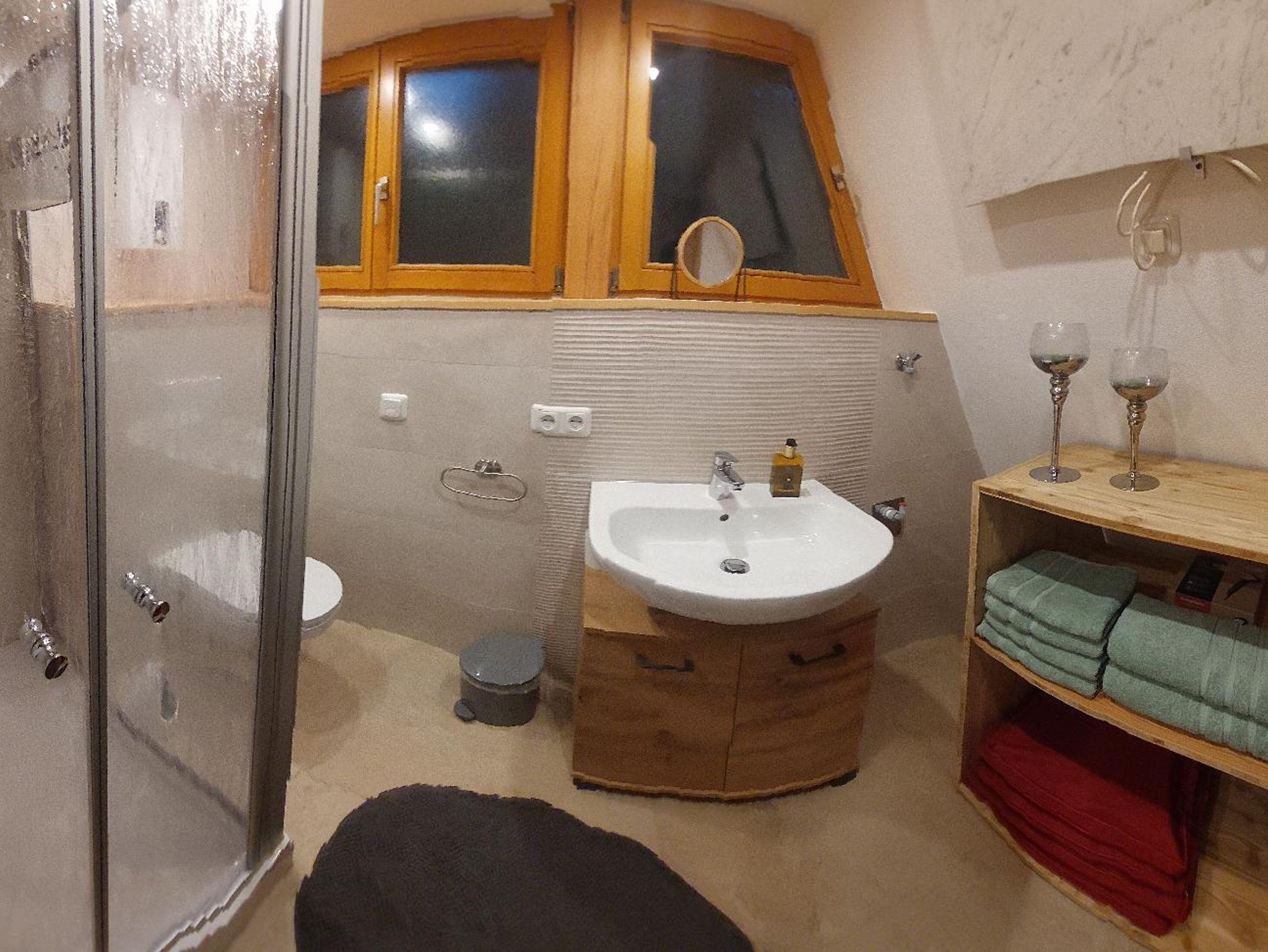 Das Badezimmer ist mit Dusche, WC und Föhn ausgestattet. Staubsauger und Wischer stehen zur Verfügung. Ein kostenloser Parkplatz befindet sich direkt auf dem Grundstück.