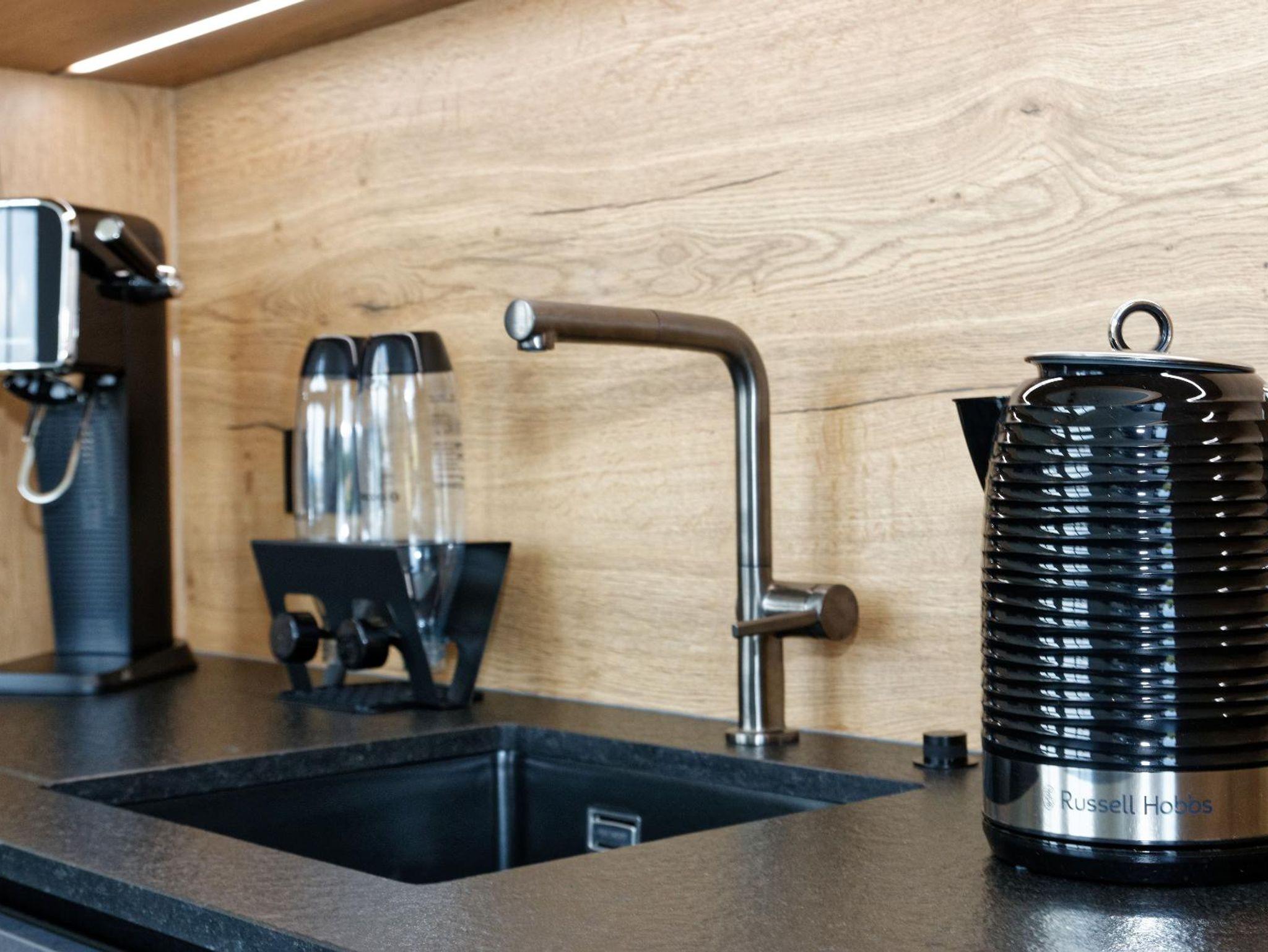 Backofen, Microwelle und Sodastream stehen ebenfalls für Sie bereit.