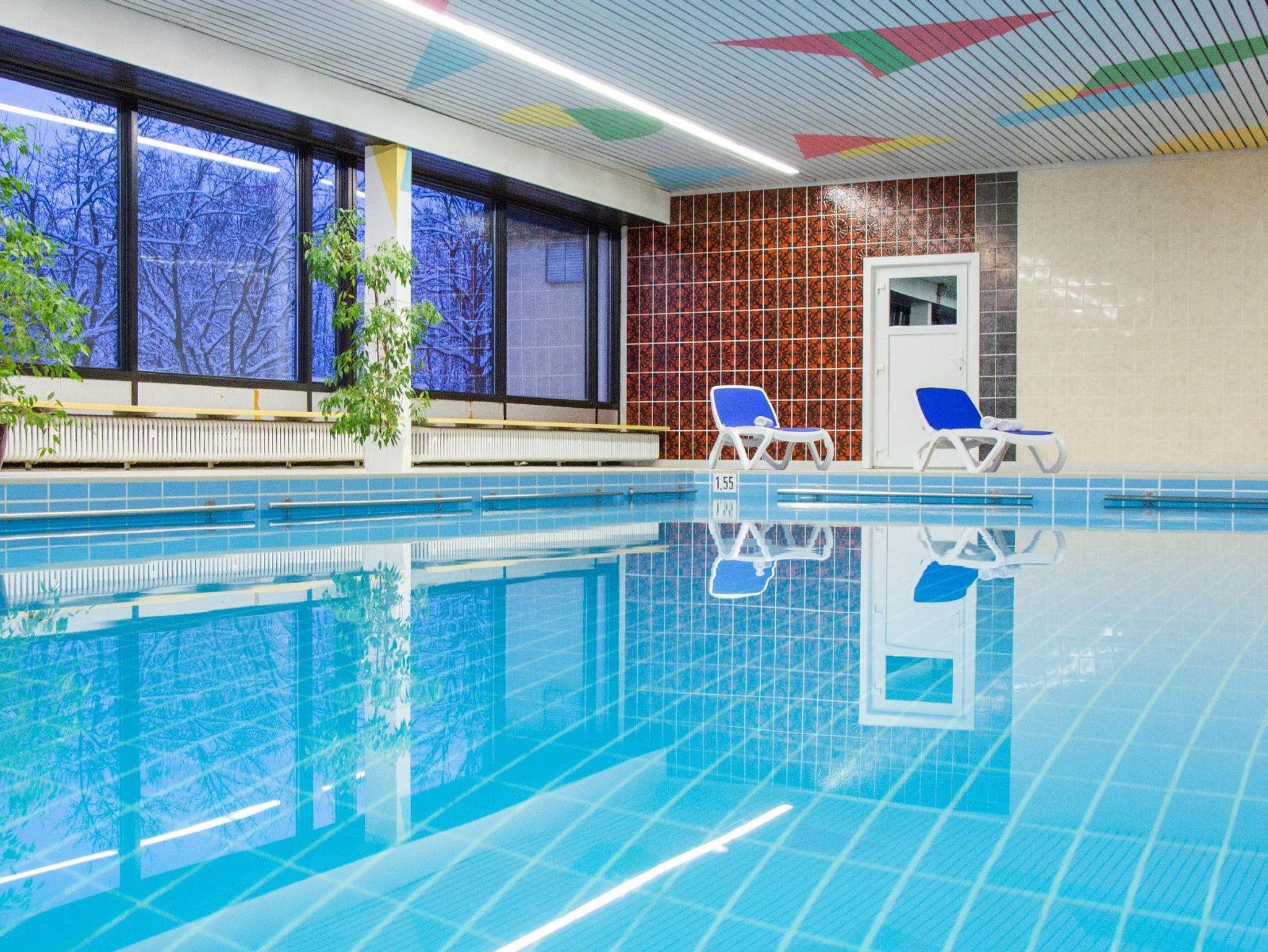 Der Innenpool und die Sauna sind vom Appartement im Block K einfach und zu Fuß nach ca. 220 m erreichbar.