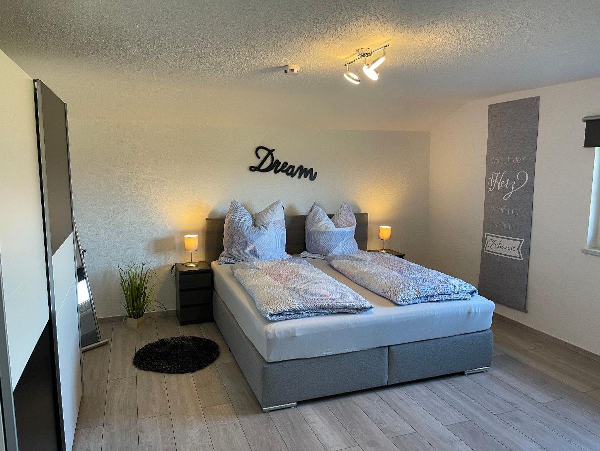 - Zimmer 2 mit Doppel-Boxspringbett, Fernseher (SMART-TV) und Kleiderschrank